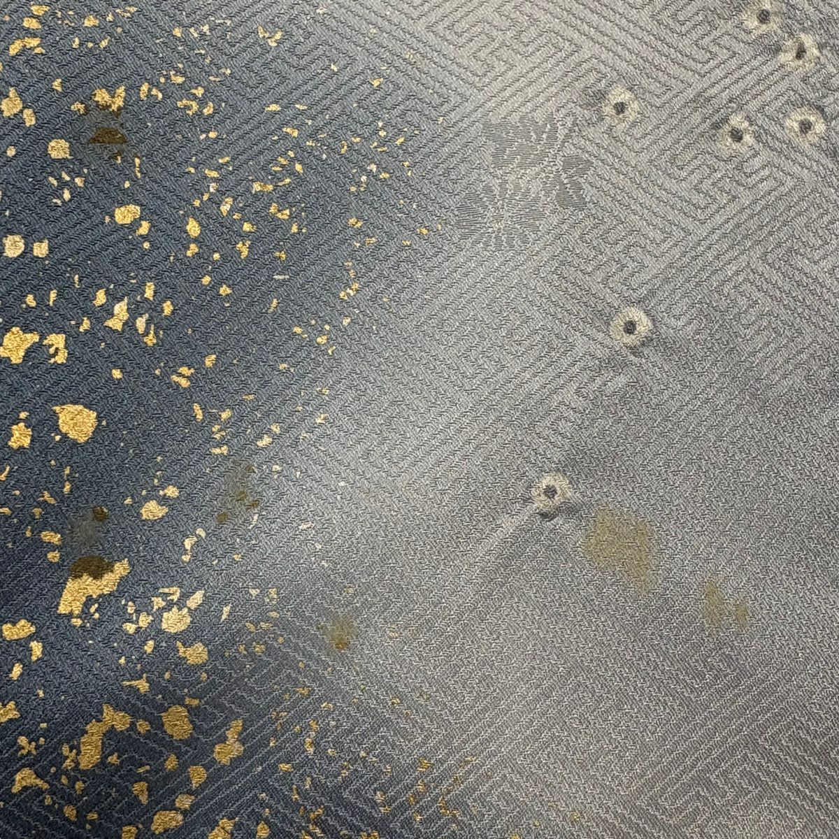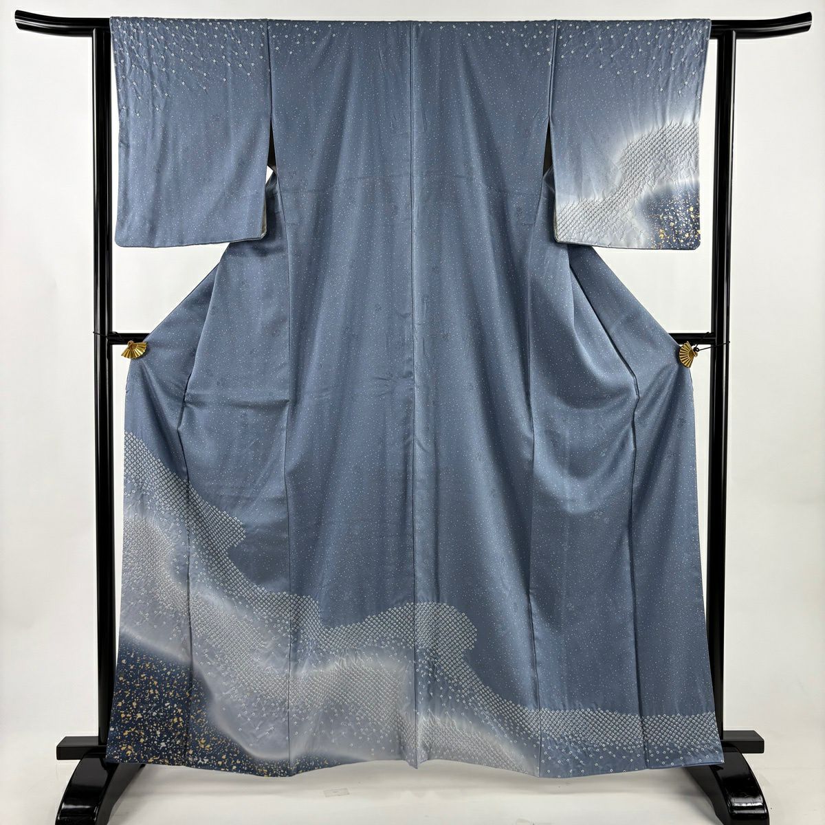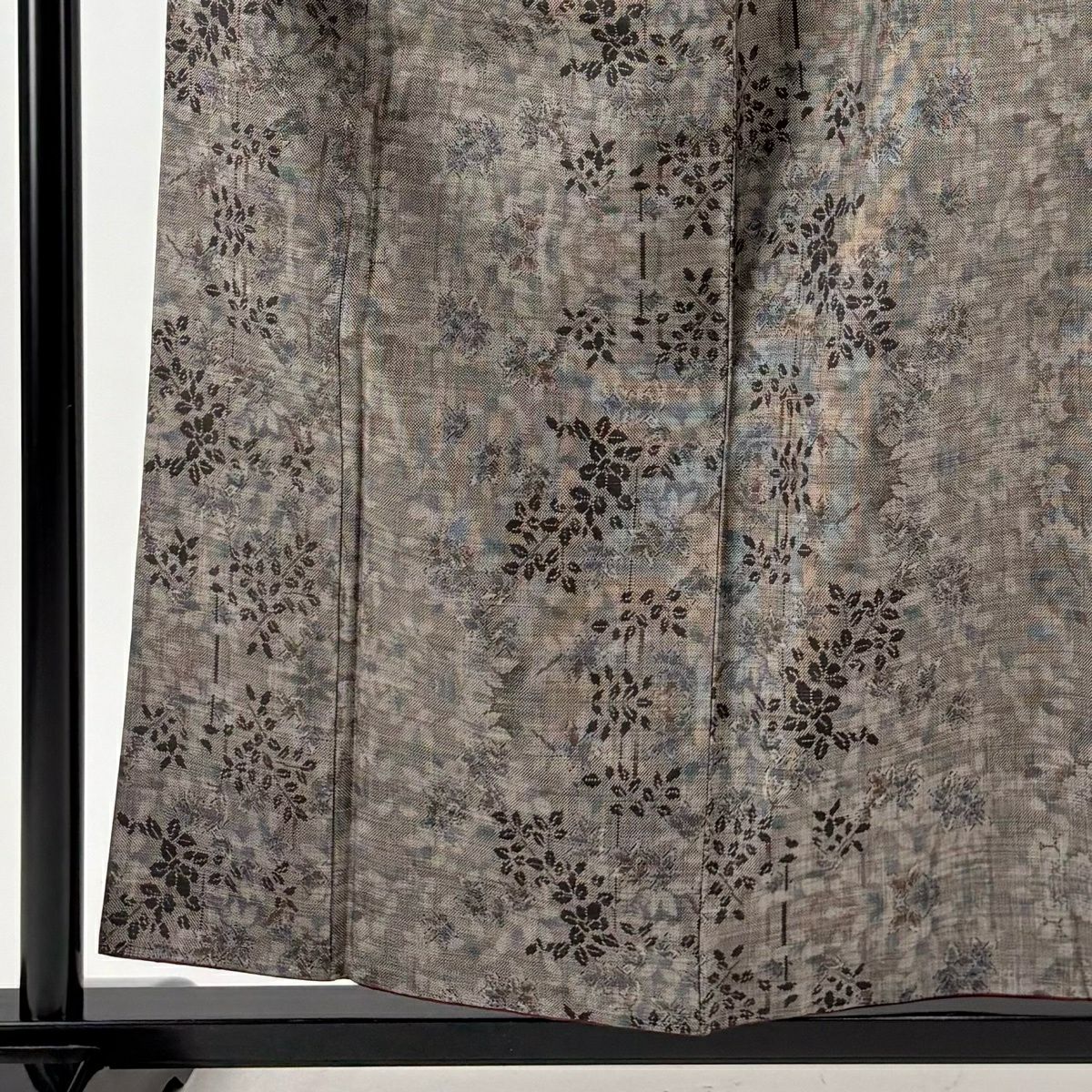 付下げ 身丈163cm 裄丈65.5cm M 袷 枝花 地紋 金彩 青灰色 正絹 秀品
