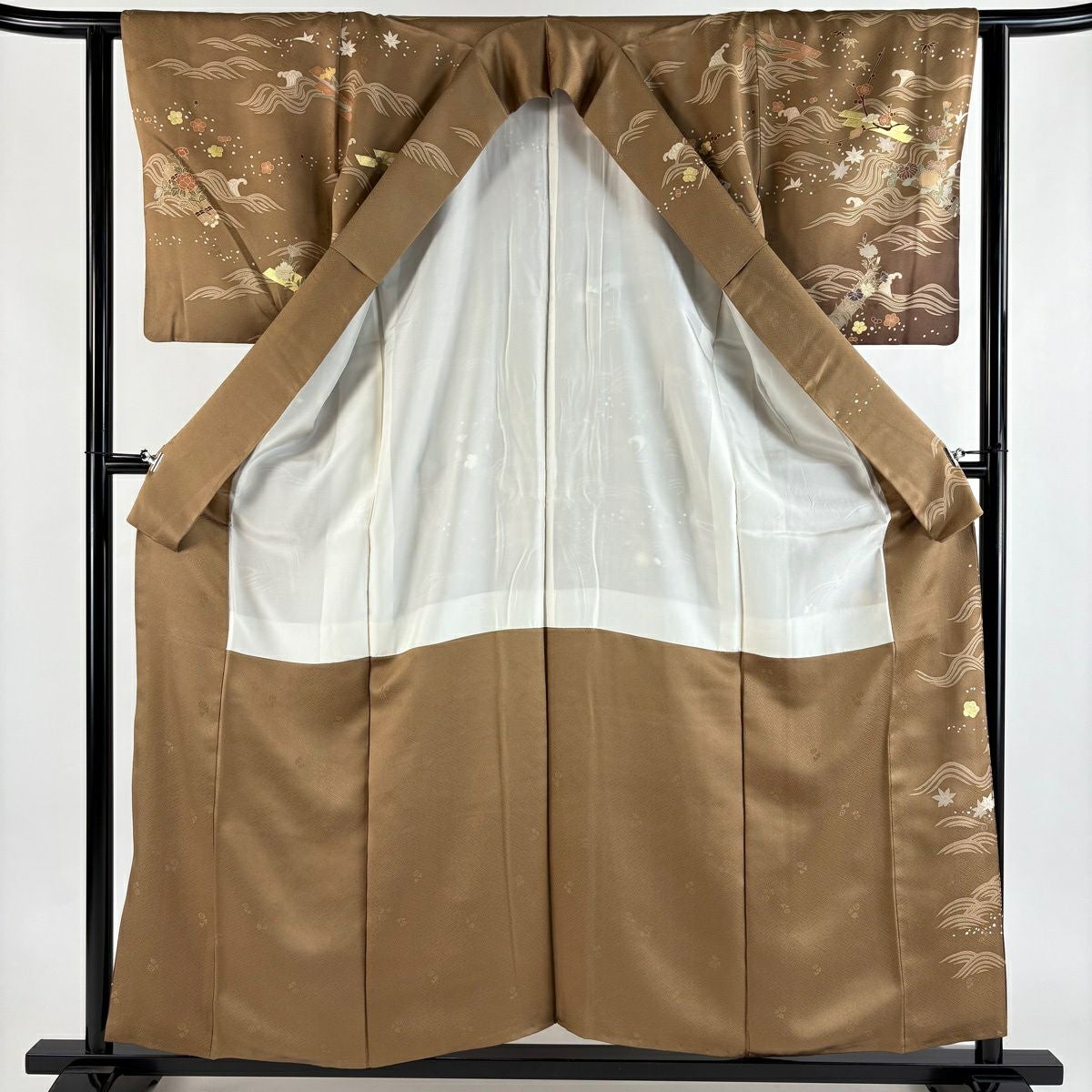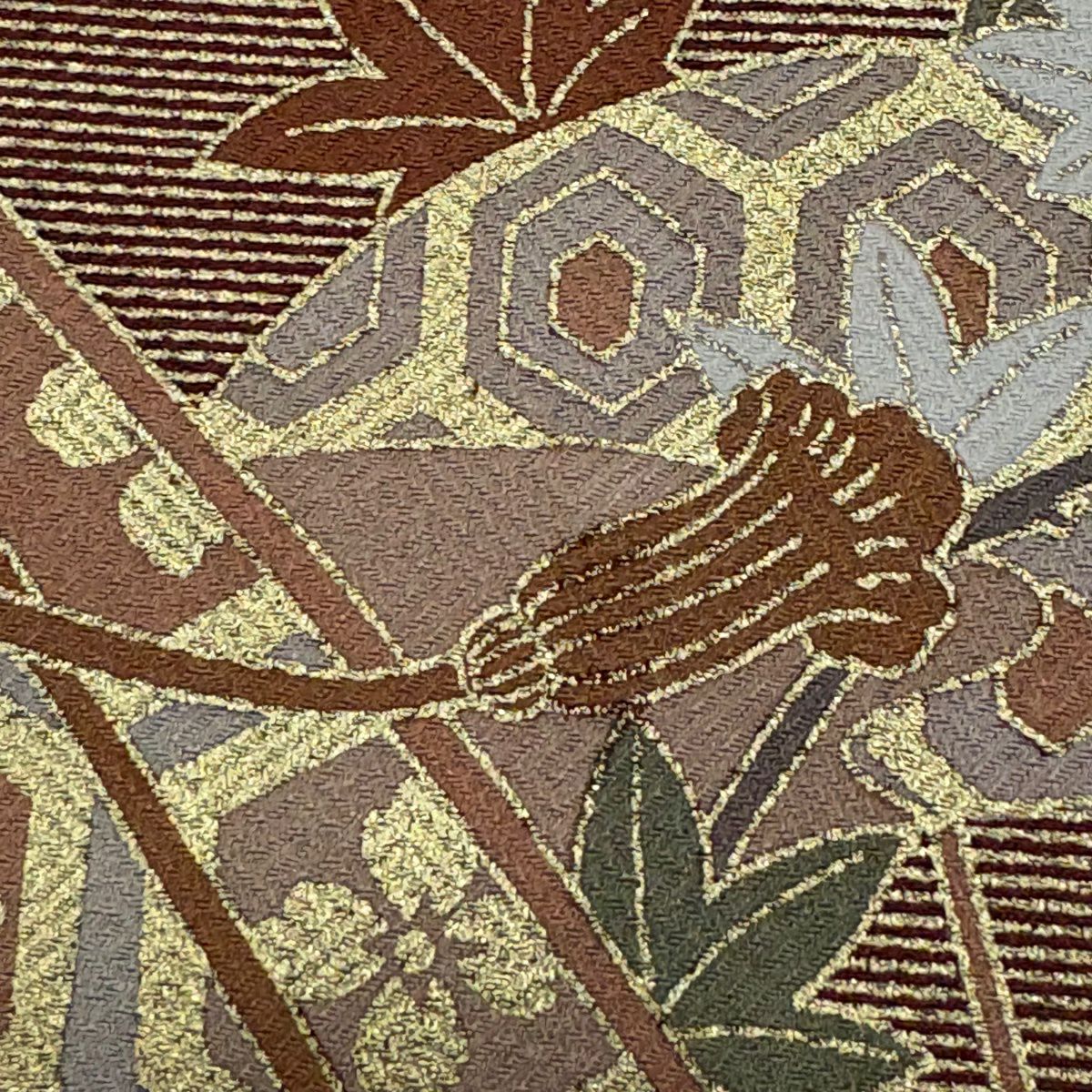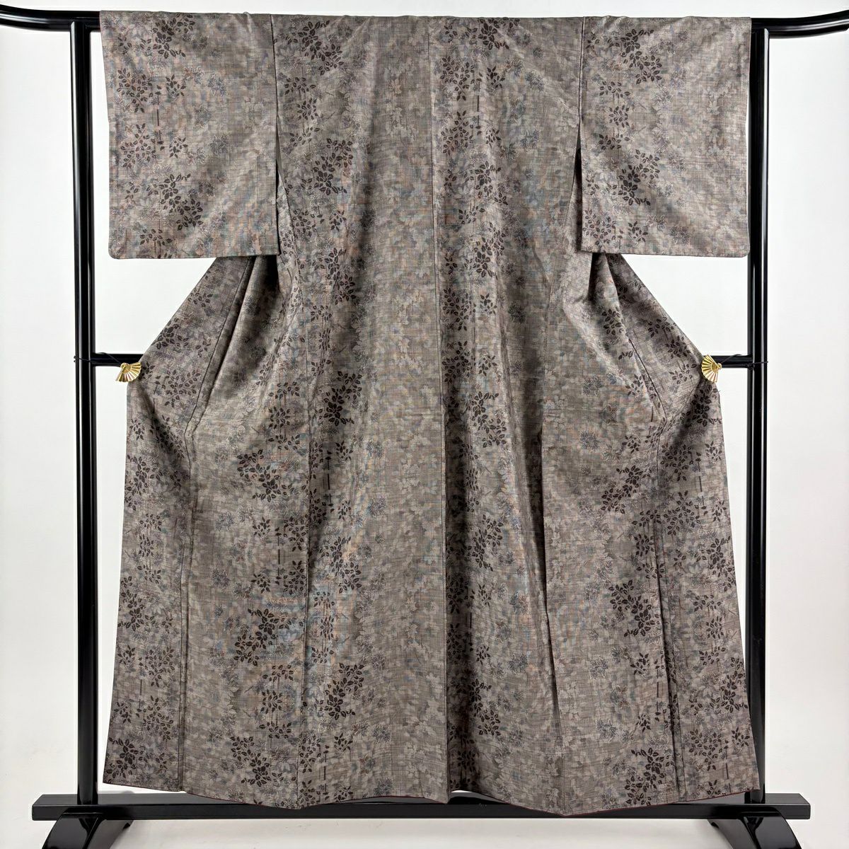 訪問着 身丈160cm 裄丈65cm M 袷 草花 霞 箔 金銀彩 焦茶色 正絹 秀品