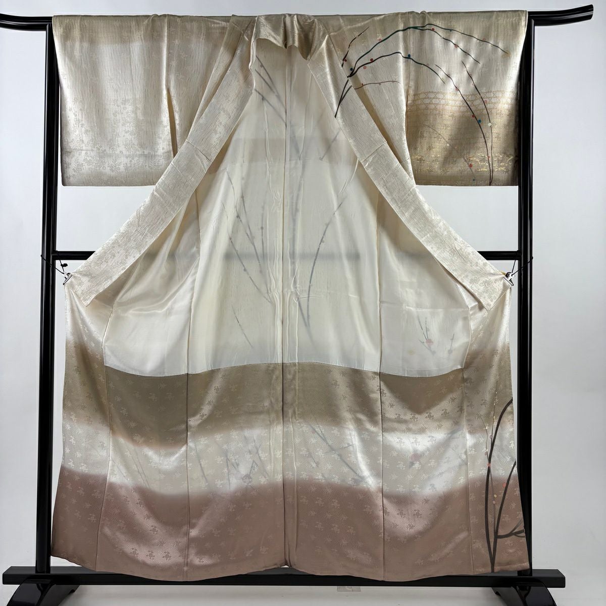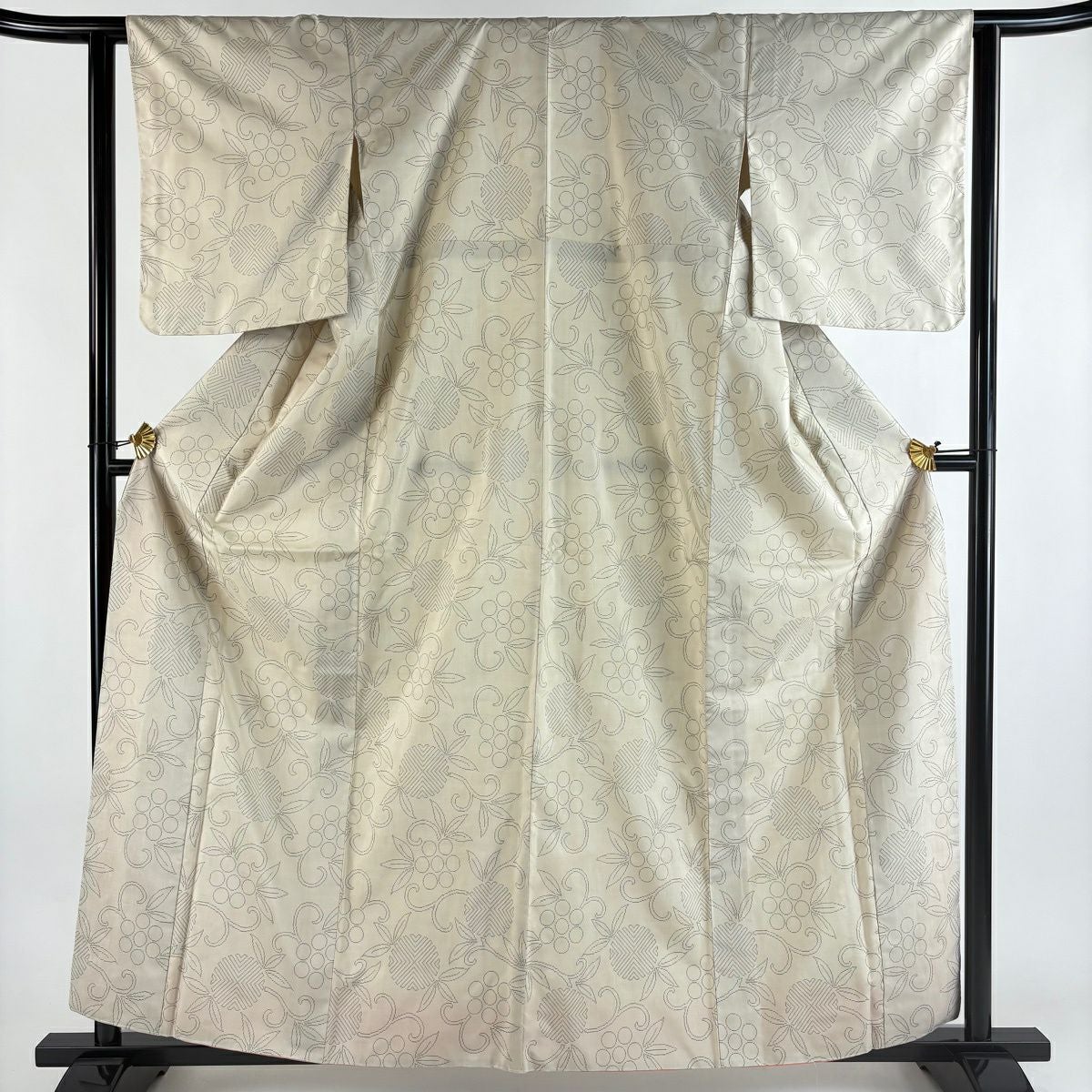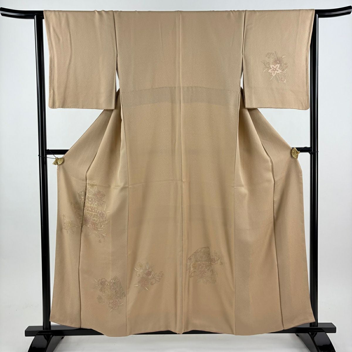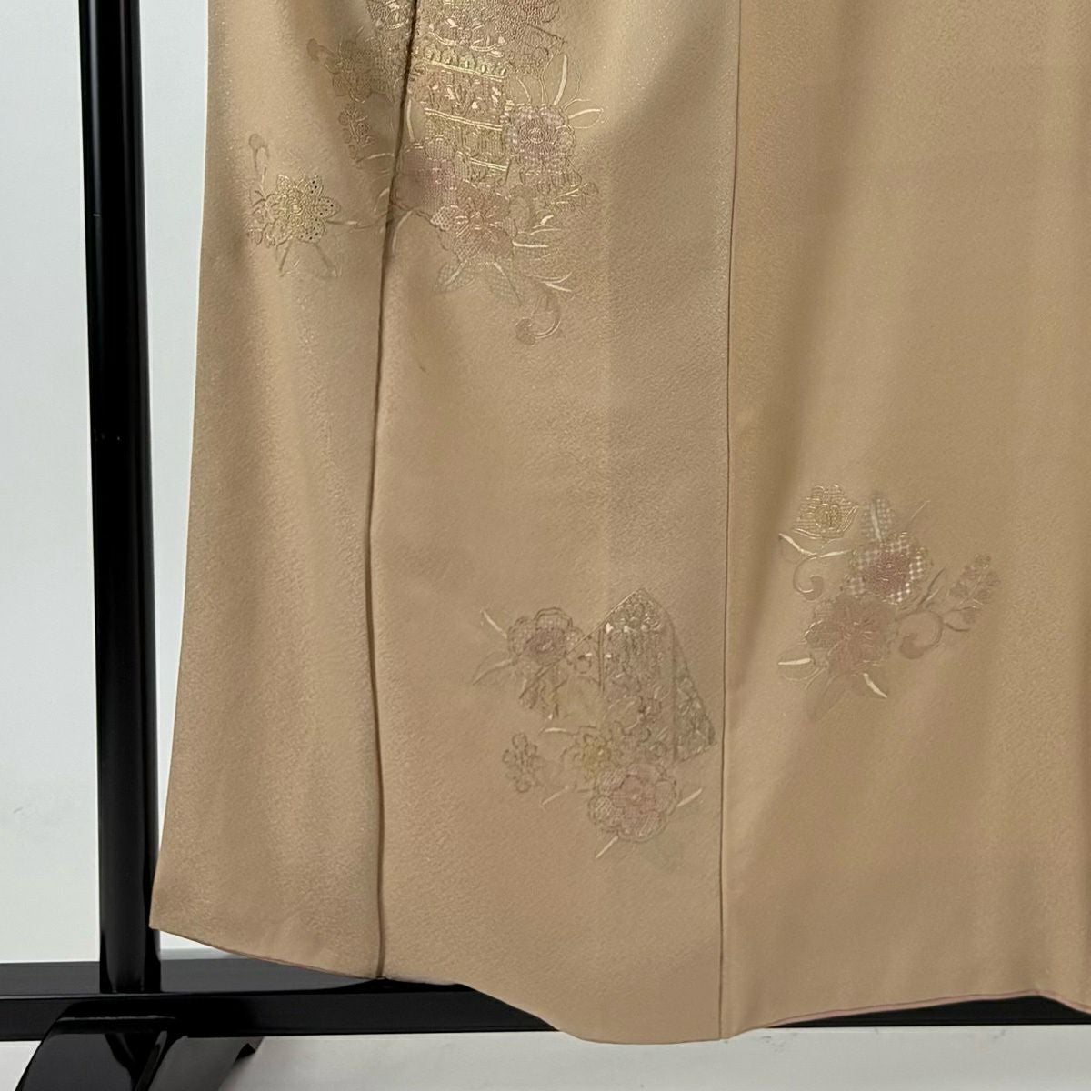 付下げ 身丈158.5cm 裄丈63cm S 袷 花籠 刺繍 ベージュ 正絹 秀品