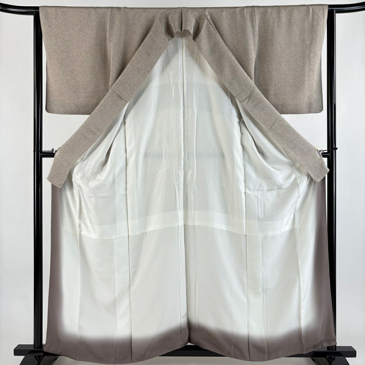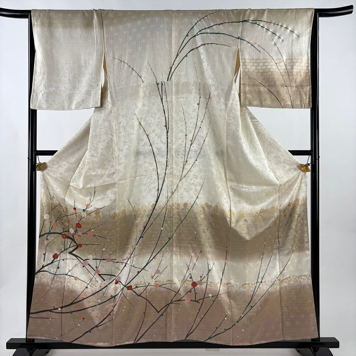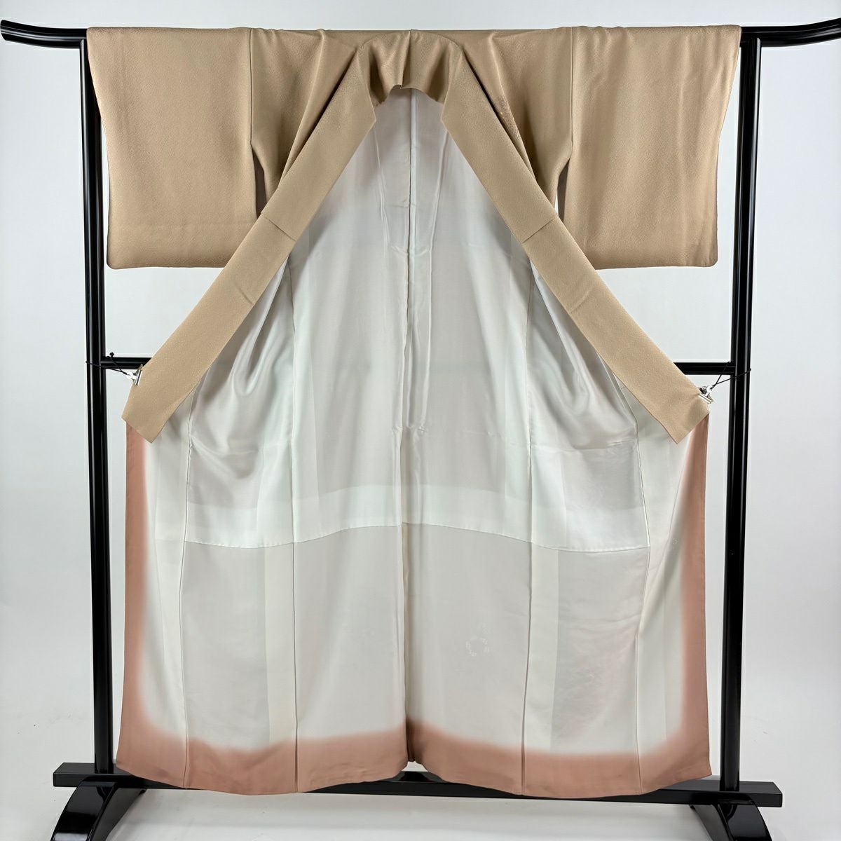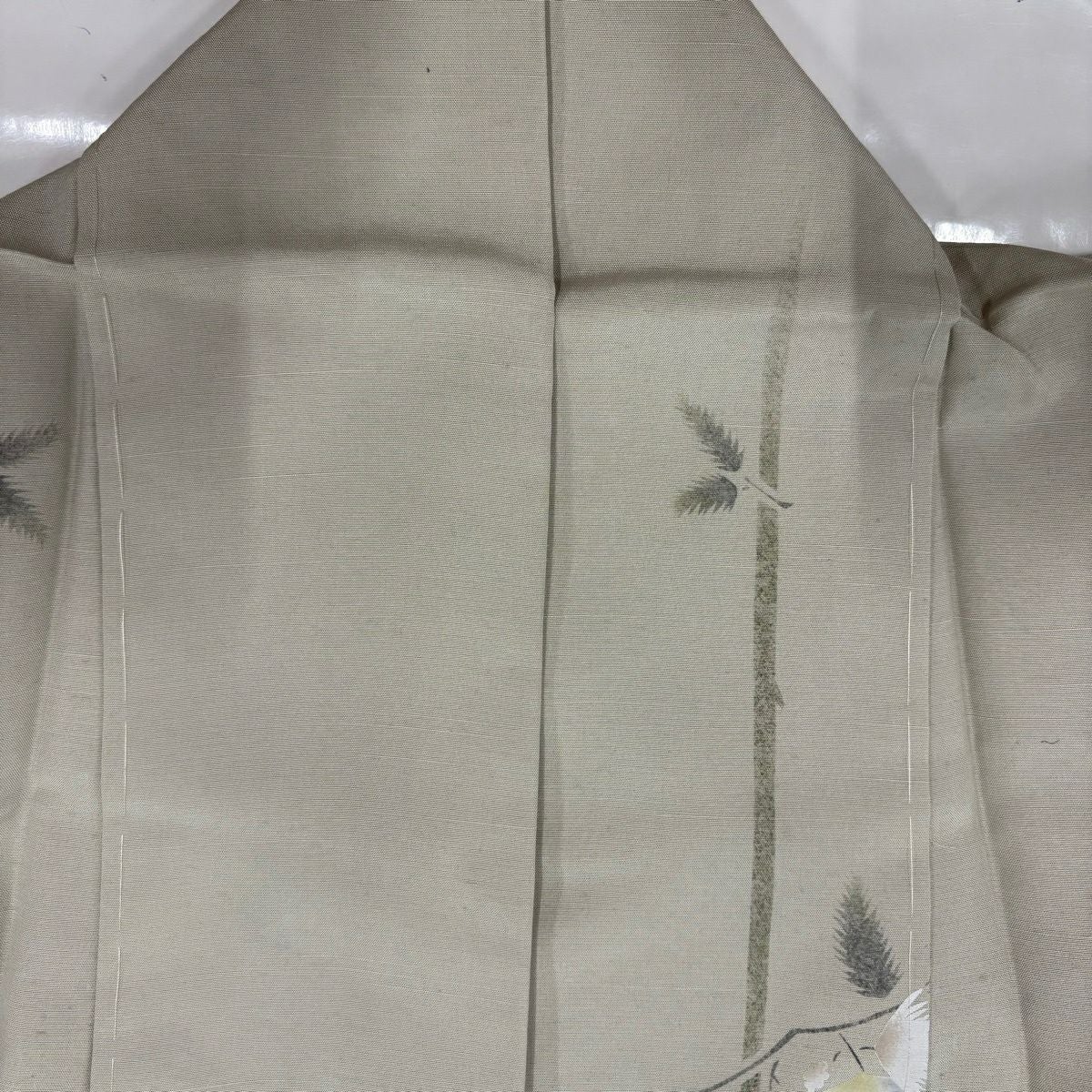 付下げ 身丈158.5cm 裄丈63cm S 袷 花籠 刺繍 ベージュ 正絹 秀品