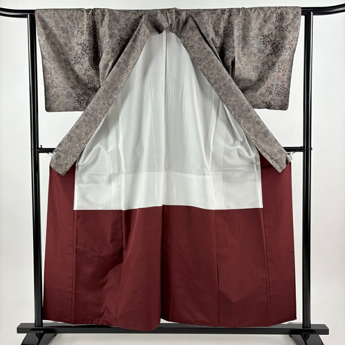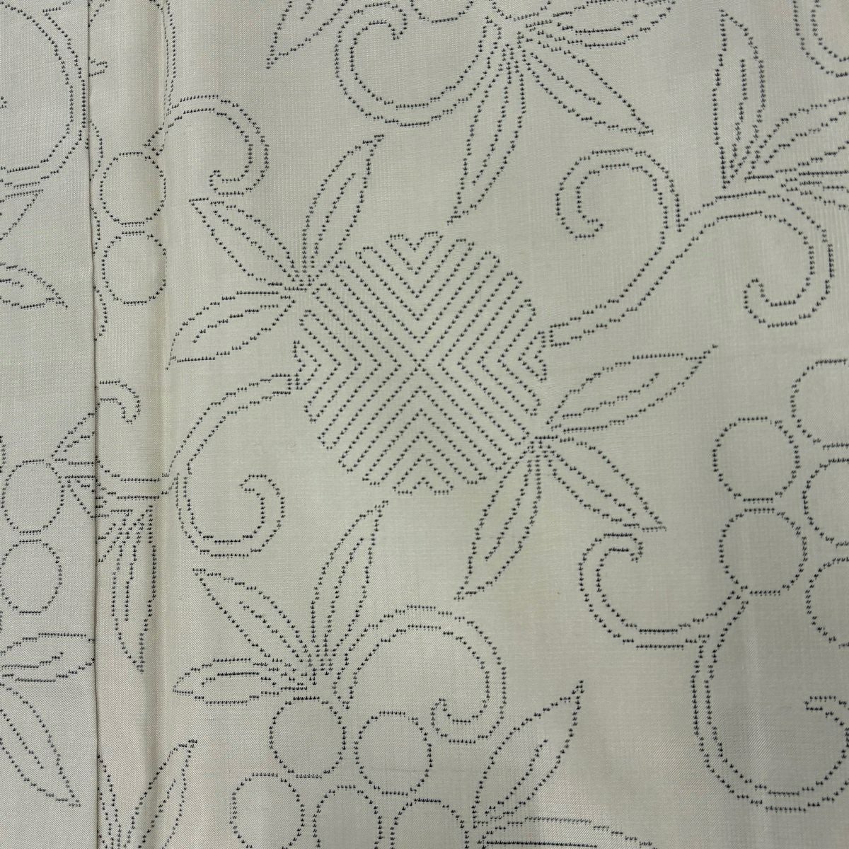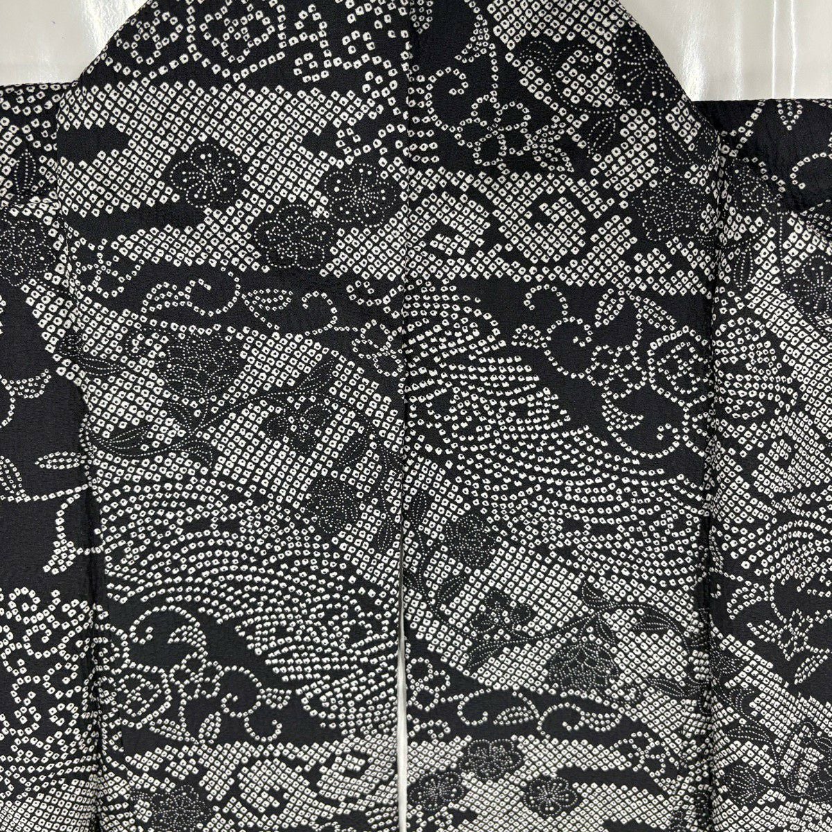 【美品】 紬 身丈154.5cm 裄丈63.5cm S 袷 草花 幾何学 黒灰 正絹 秀品