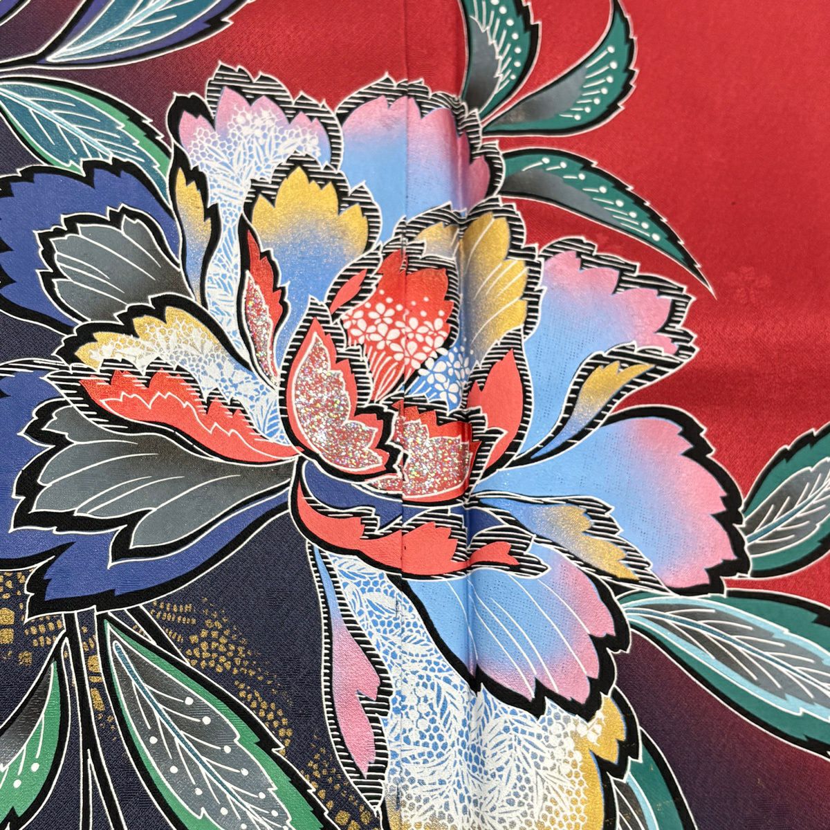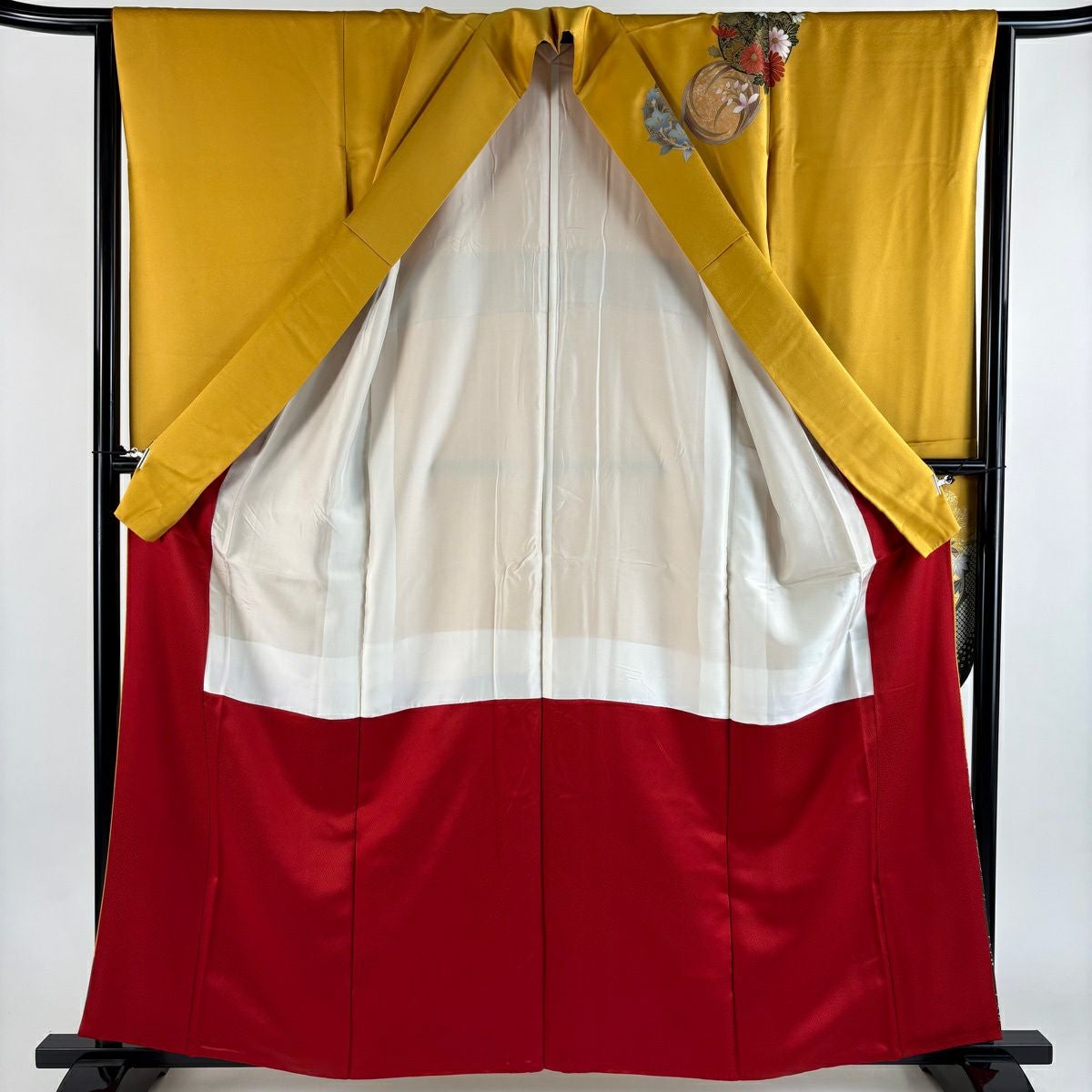 振袖 身丈158cm 裄丈66cm M 袷 御所車 草花 金通し 刺繍 赤 正絹 秀品