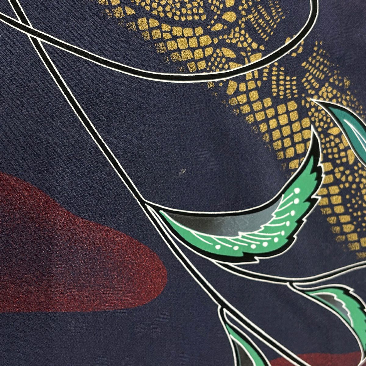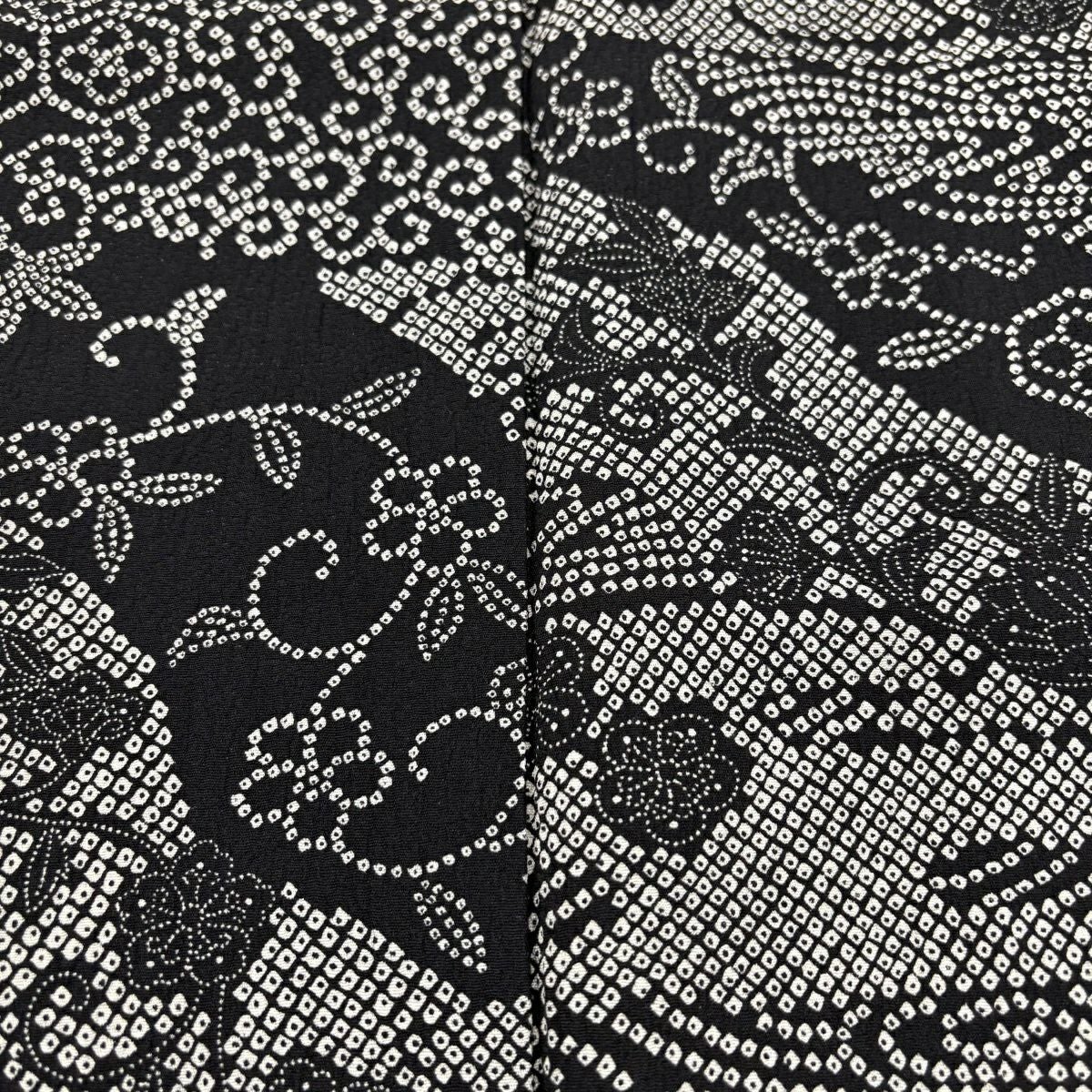 小紋 身丈158.5cm 裄丈63cm S 袷 花唐草 笹蔓文 縮緬 紺色 正絹 秀品