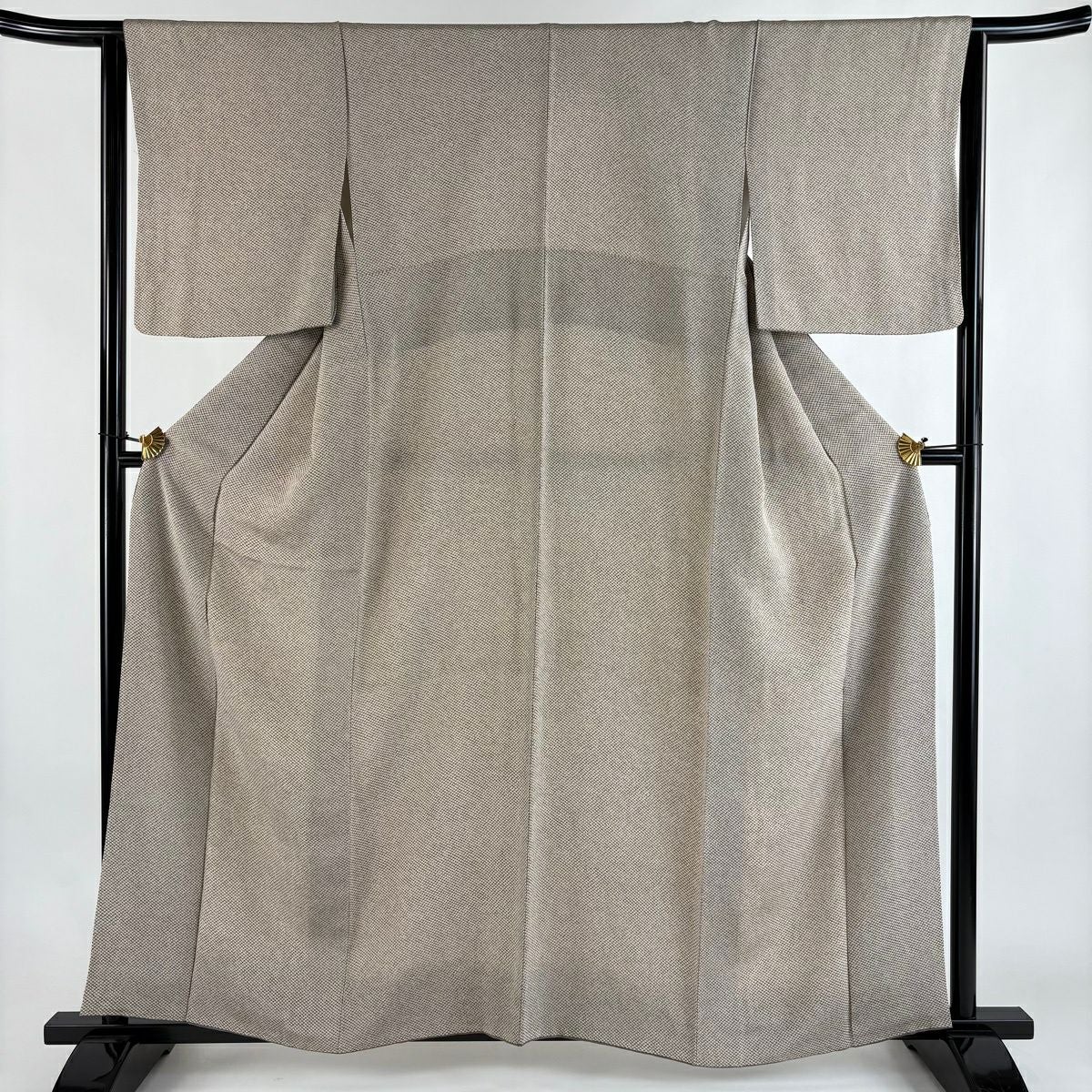 【美品】 紬 身丈158cm 裄丈63.5cm S 袷 亀甲絣 絣柄 灰色 正絹 秀品