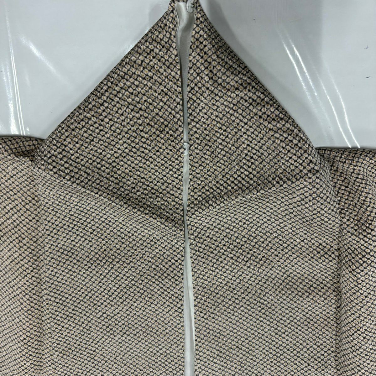 【美品】 小紋 身丈151cm 裄丈63.5cm S 袷 変わり市松 灰茶 正絹 秀品