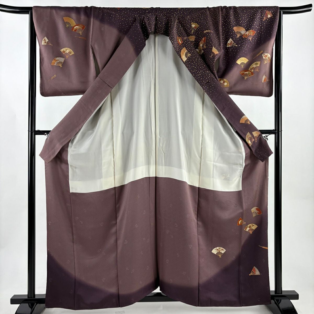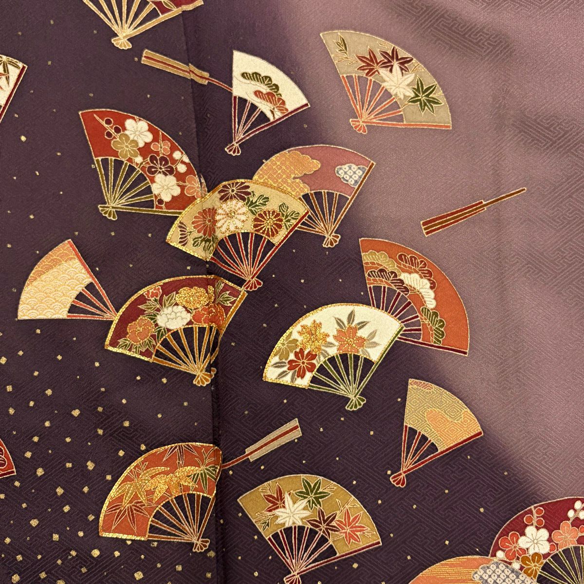 付下げ 身丈163cm 裄丈65.5cm M 袷 花丸文 霞 金銀彩 濃紫 正絹 秀品