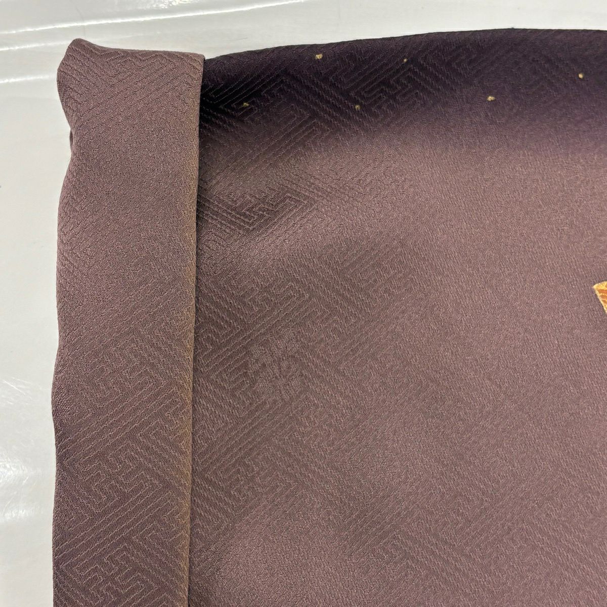 【美品】 紬 身丈170cm 裄丈66.5cm M 袷 幾何学模様 焦茶色 正絹 秀品