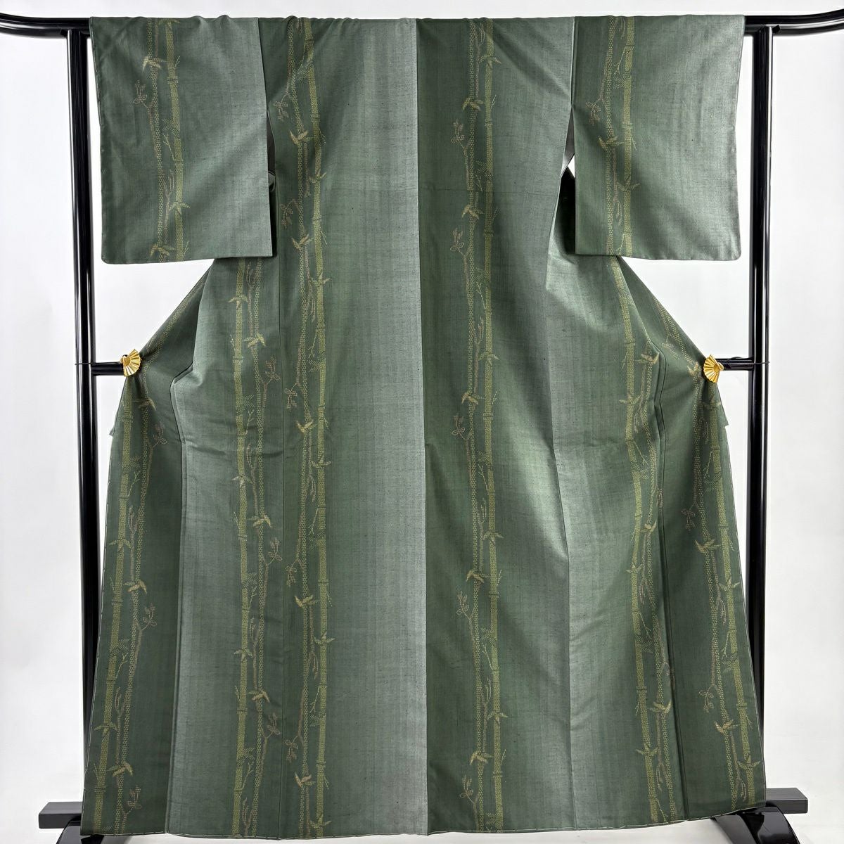 訪問着 身丈152.5cm 裄丈63.5cm S 袷 竹 松葉 金糸 金彩 薄緑 正絹 秀品