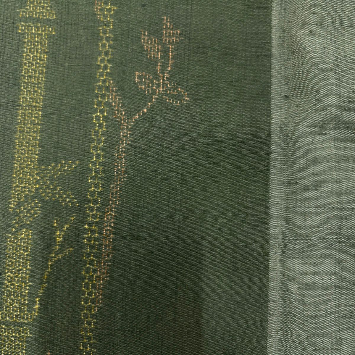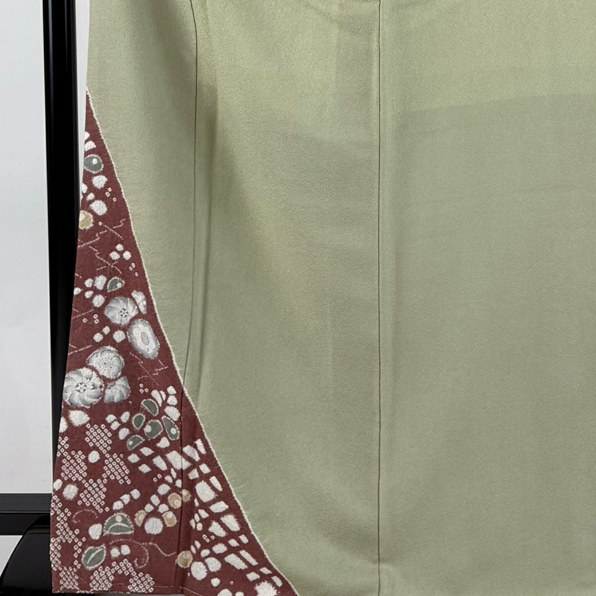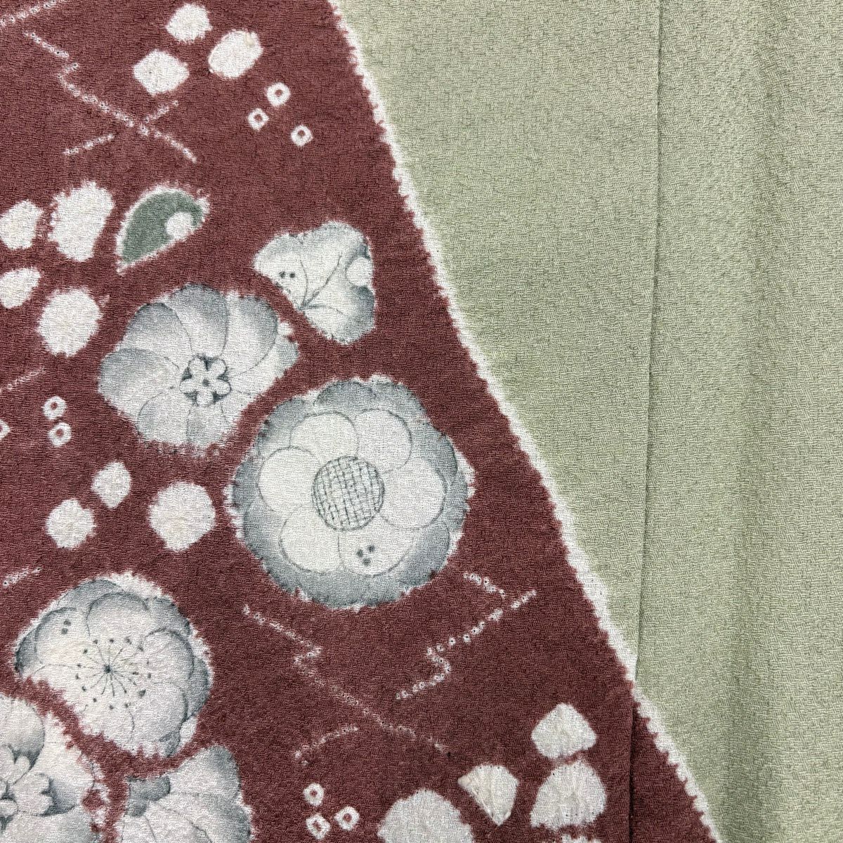訪問着 身丈157.5cm 裄丈62cm S 袷 草花 刺繍 縮緬 茶緑色 正絹 秀品