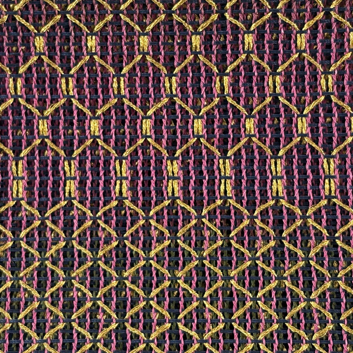 【美品】 名古屋帯 秀品 八寸名古屋帯 松葉仕立て トンネル仕立て 菱 幾何学 ピンク 正絹