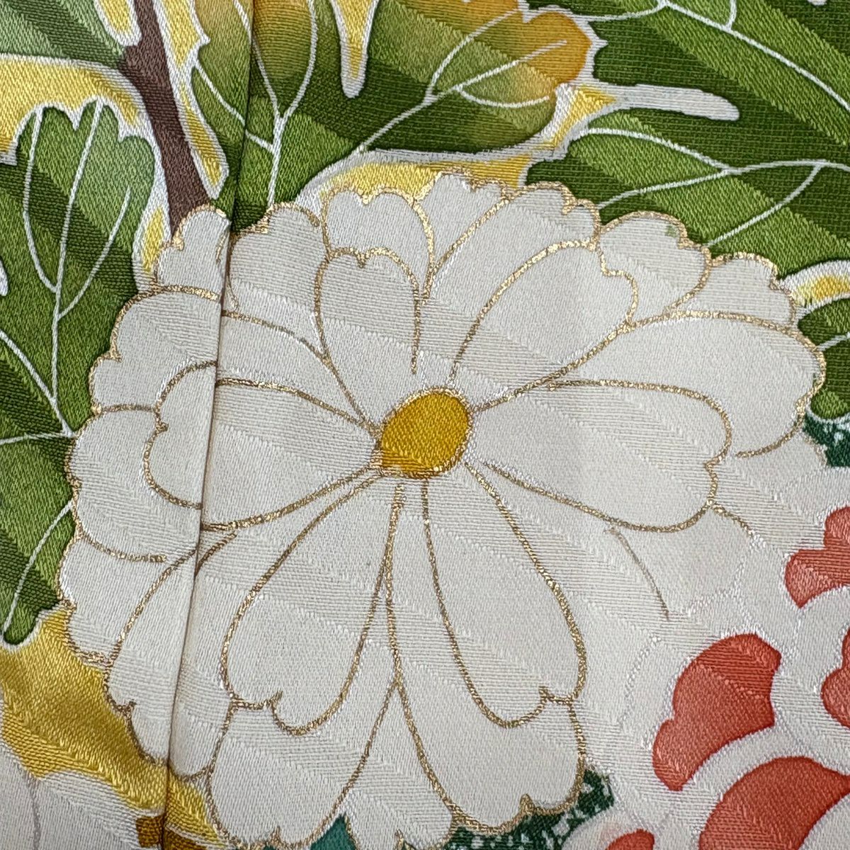 付下げ 身丈154cm 裄丈63cm S 袷 菊 霞 金彩 銀糸 よもぎ色 正絹 秀品