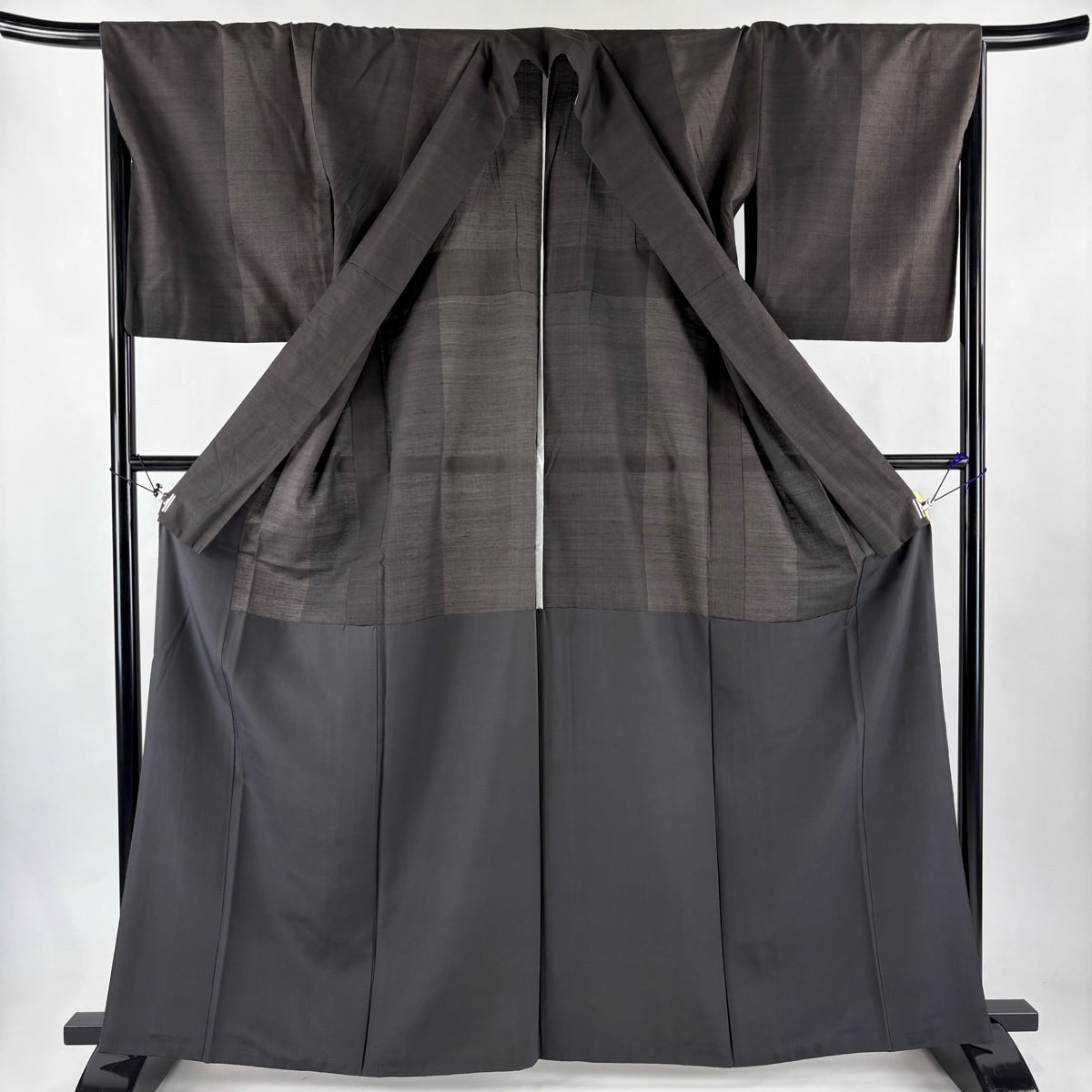 【美品】 紬 身丈163.5cm 裄丈68cm L 袷 胴抜き 縦縞 焦茶色 正絹 秀品
