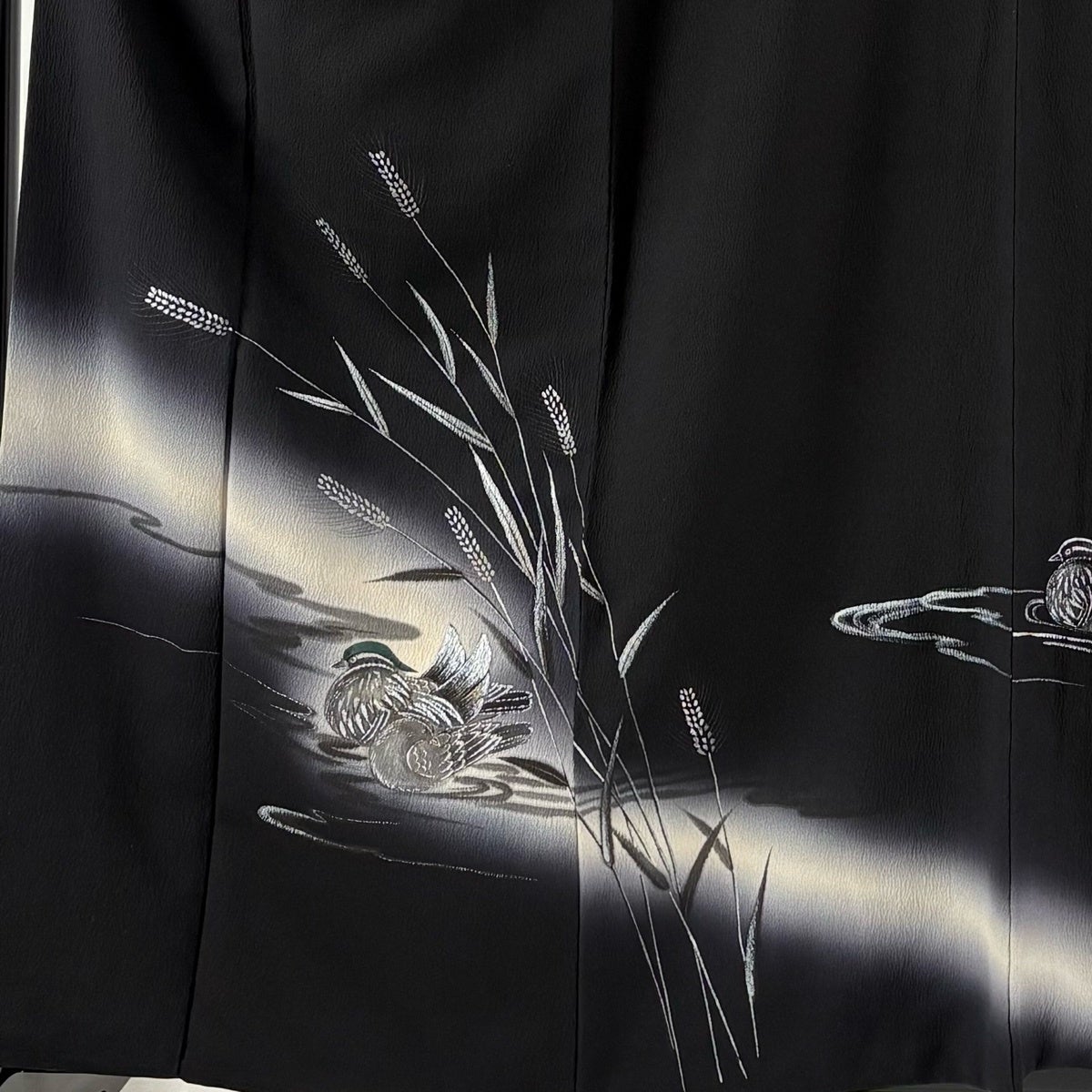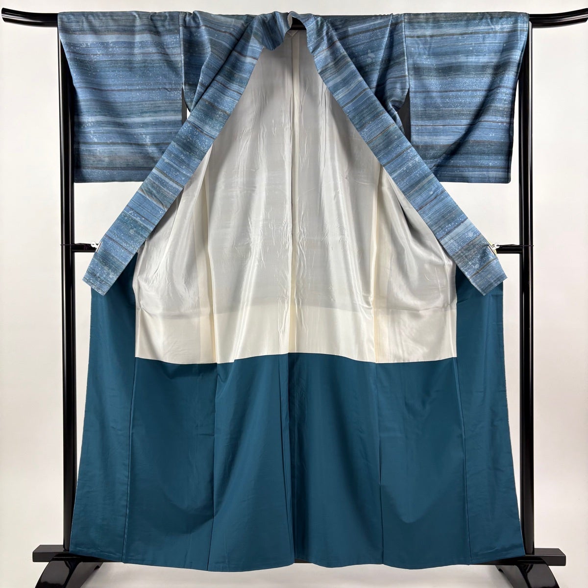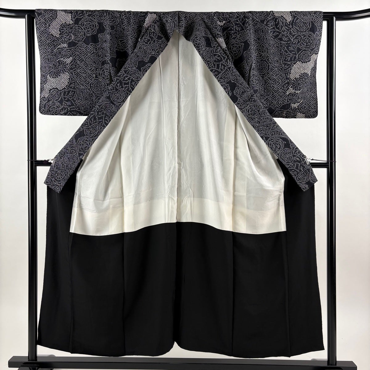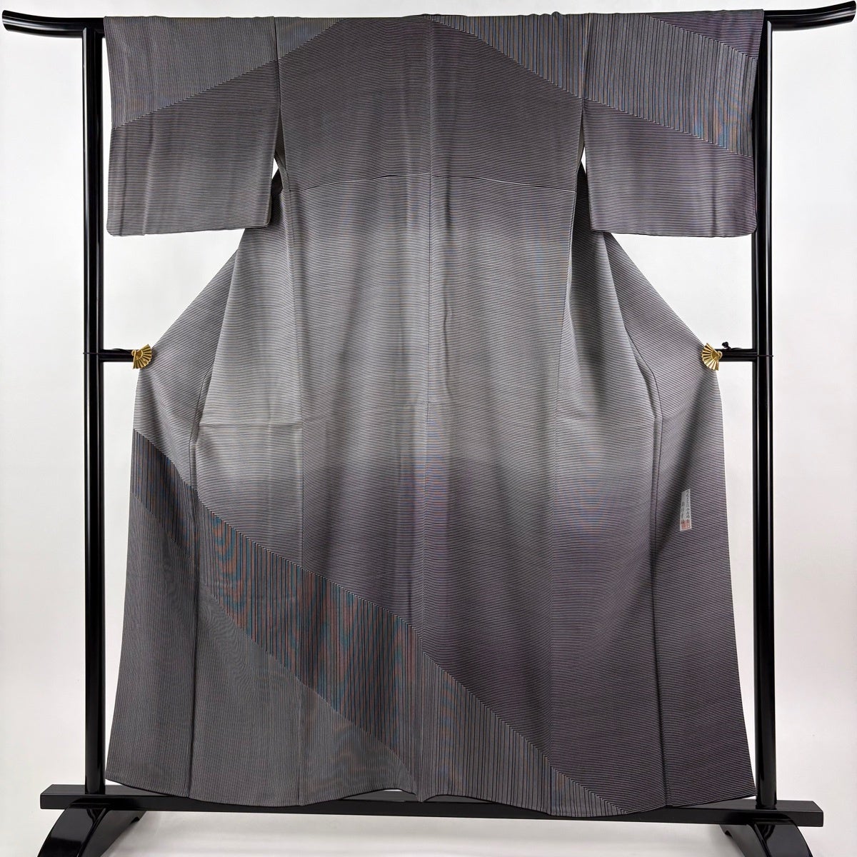 付下げ 身丈158cm 裄丈63.5cm S 袷 幾何学模様 裾ぼかし 墨色 正絹 秀品