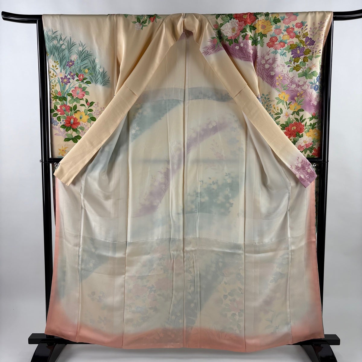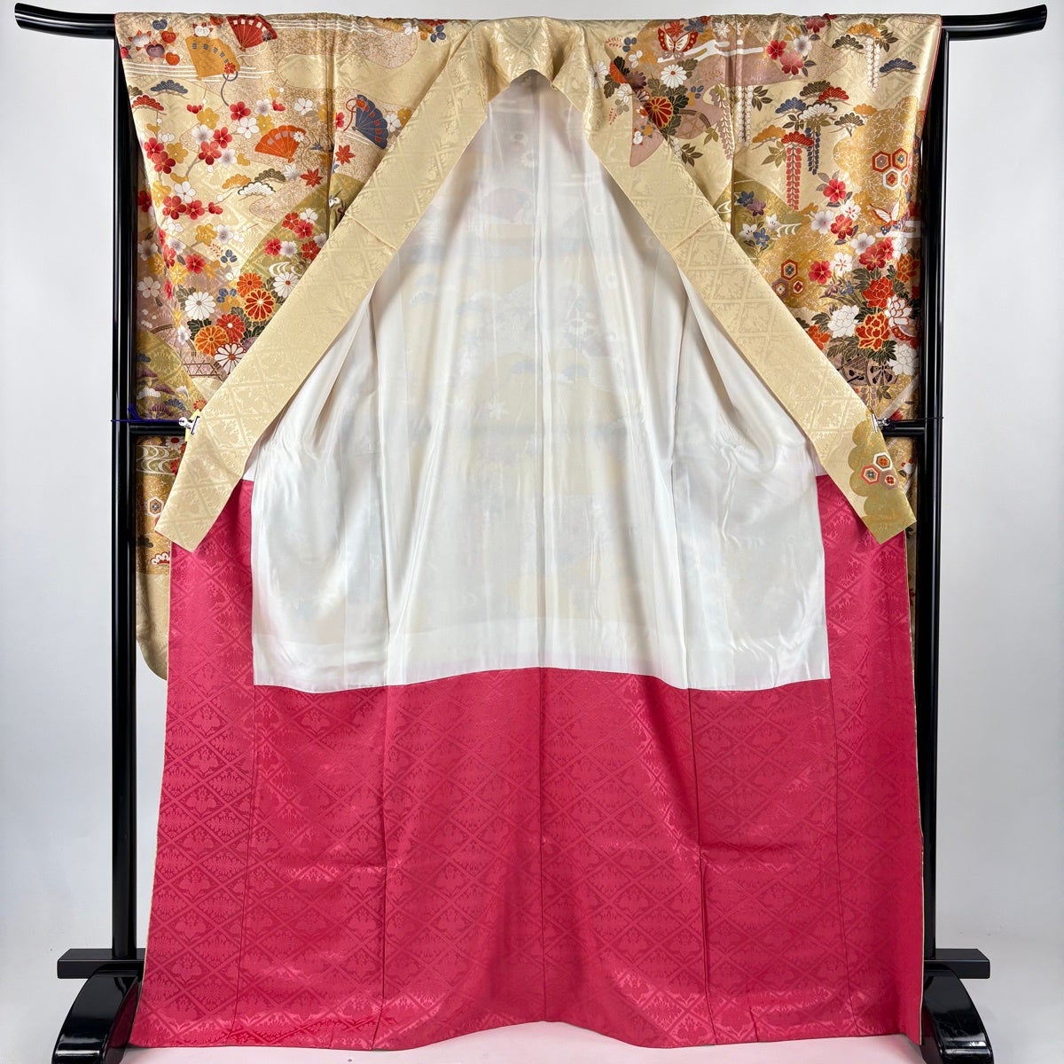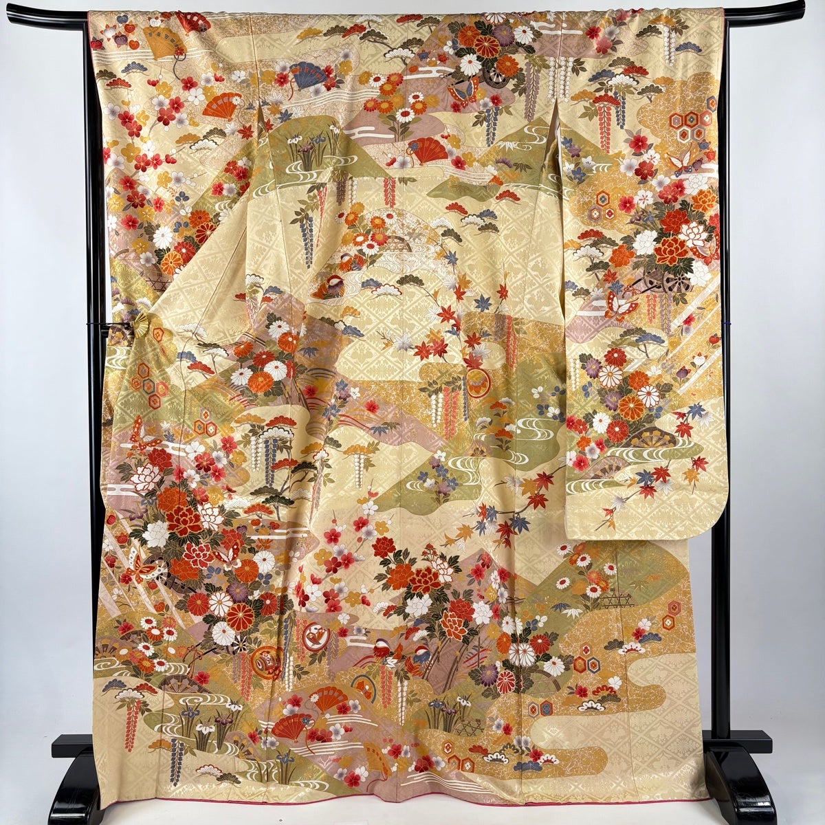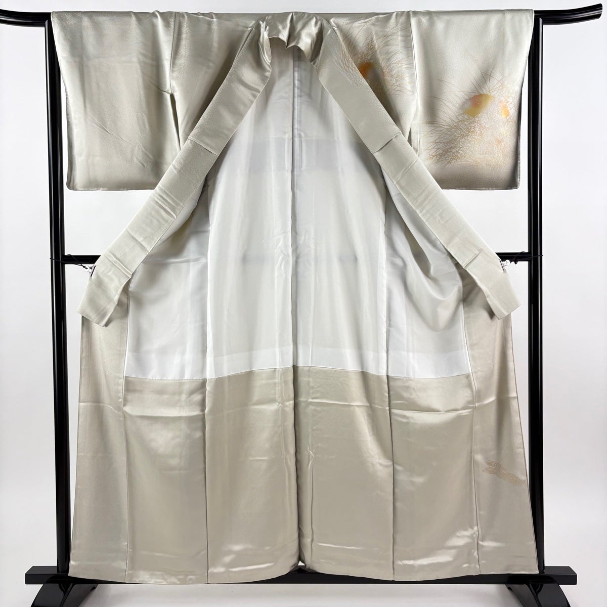 振袖 身丈169.5cm 裄丈67cm M 袷 花車 蝶 金彩 ベージュ 正絹 秀品