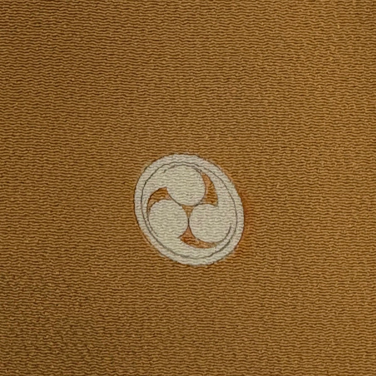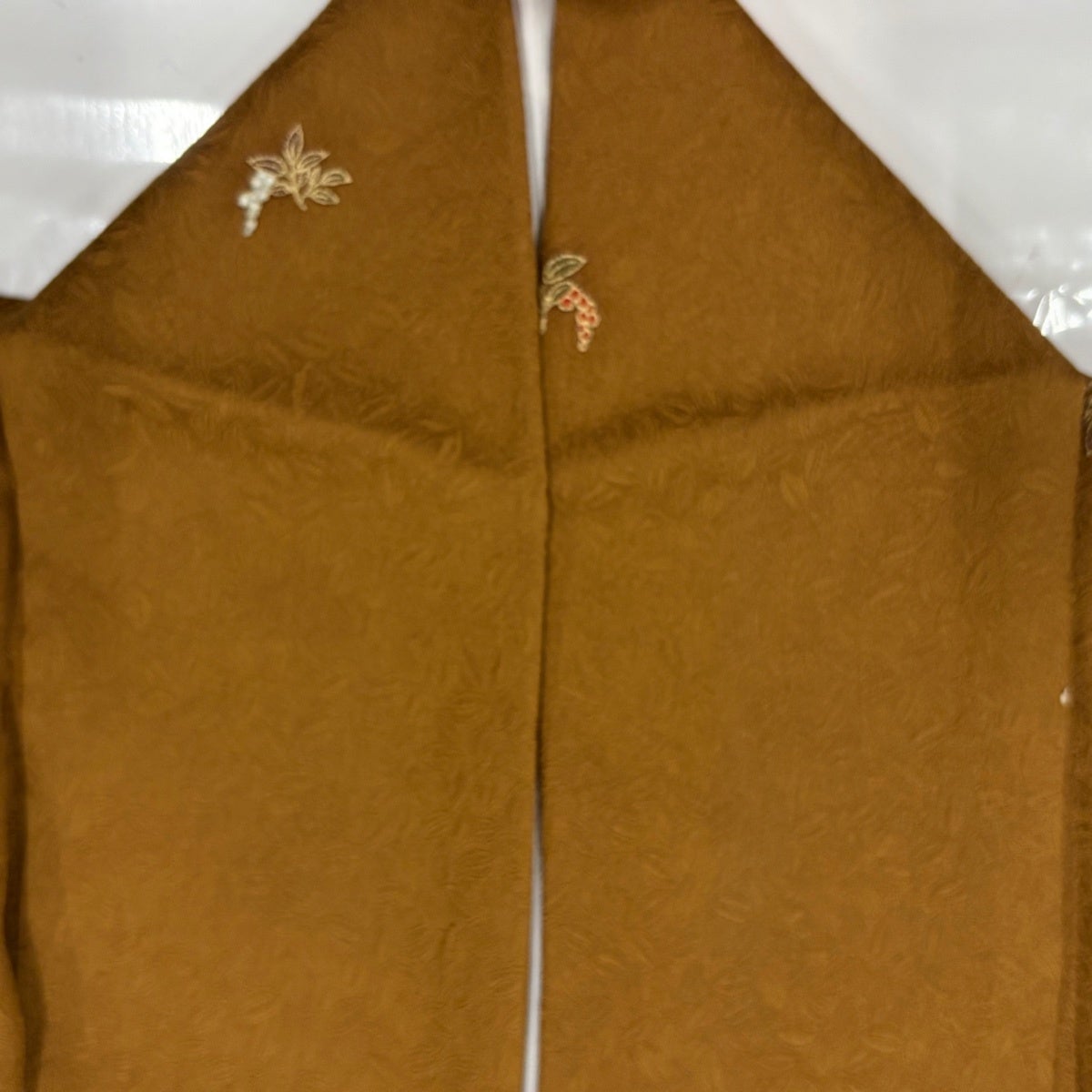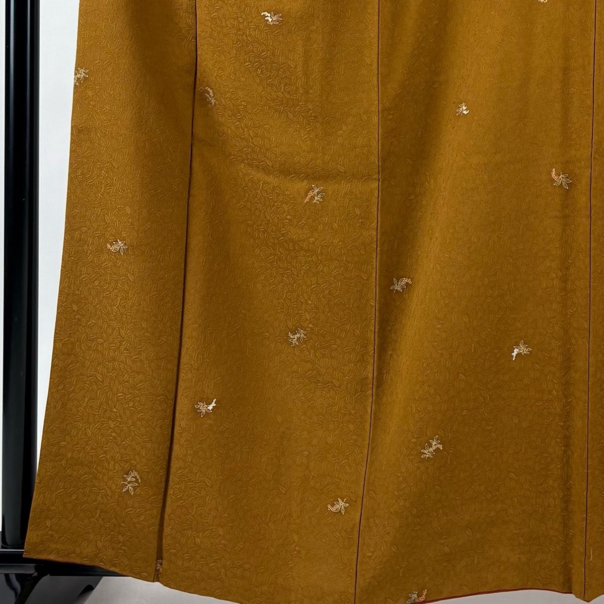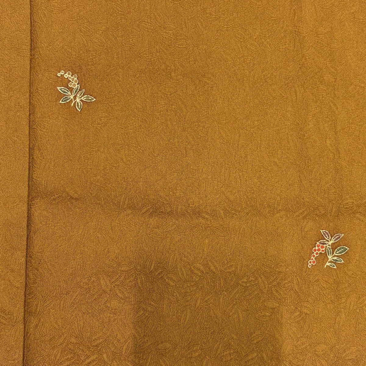 小紋 身丈161cm 裄丈61.5cm S 袷 地紋 葉と実 金彩 山吹茶色 正絹 秀品