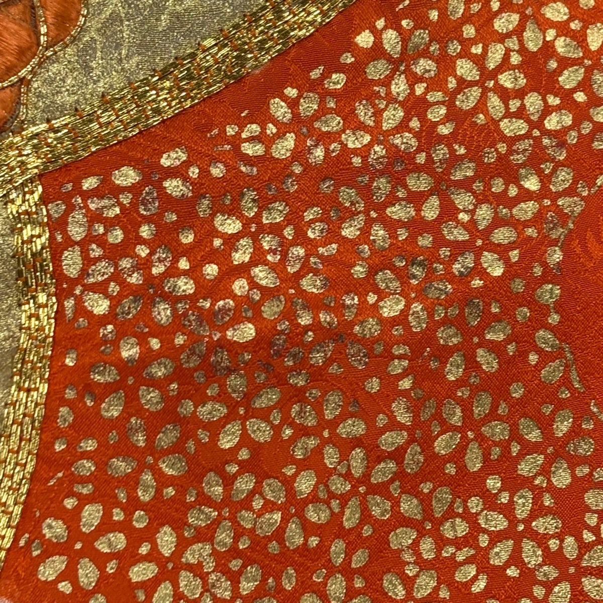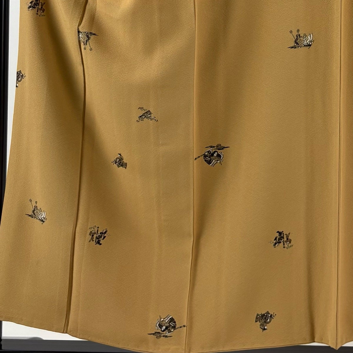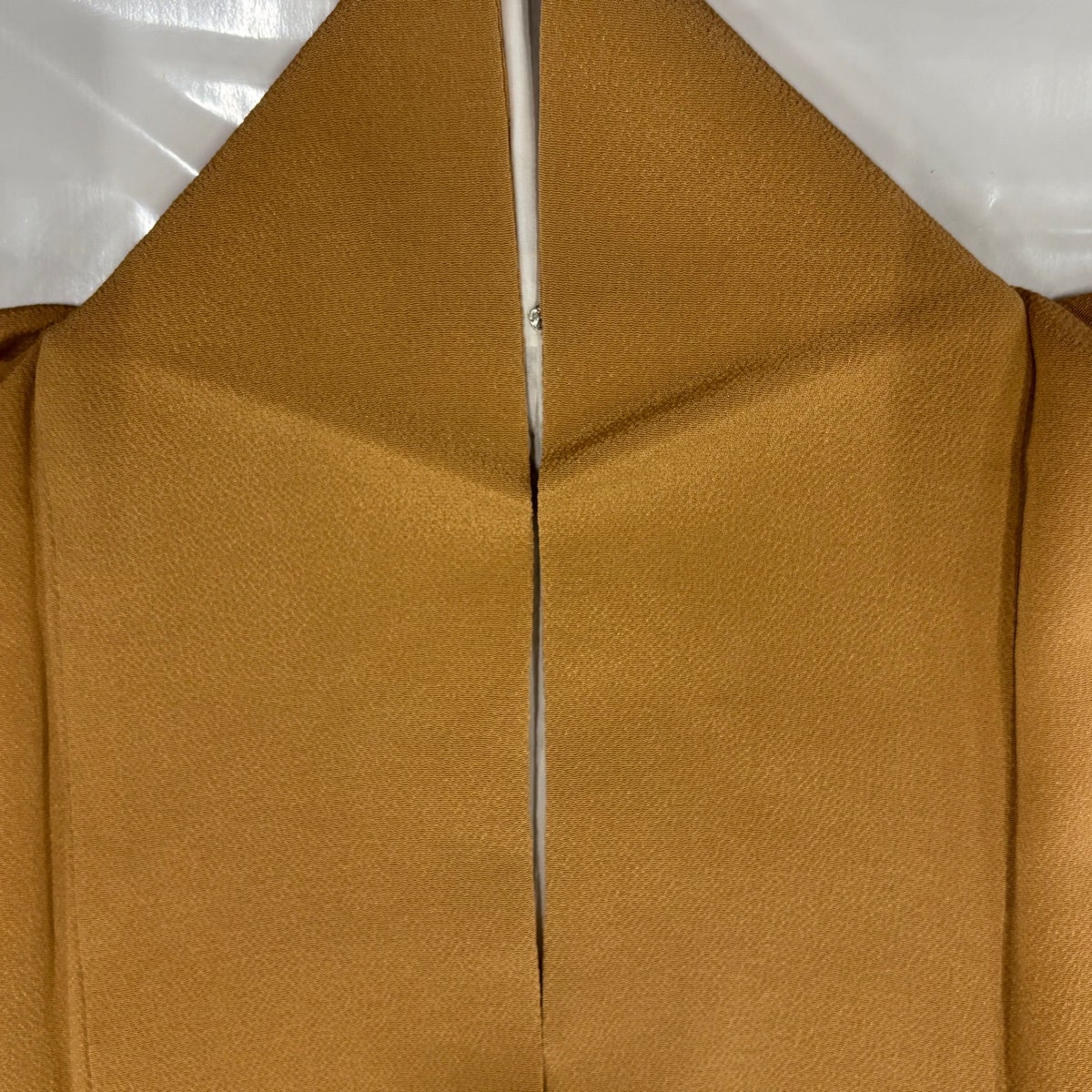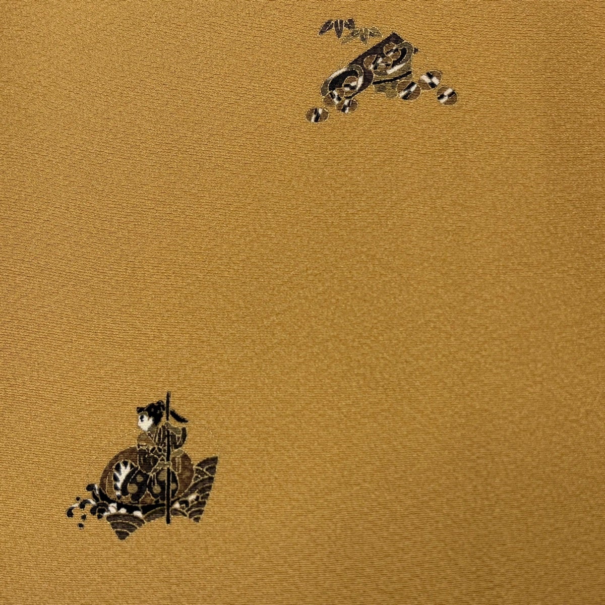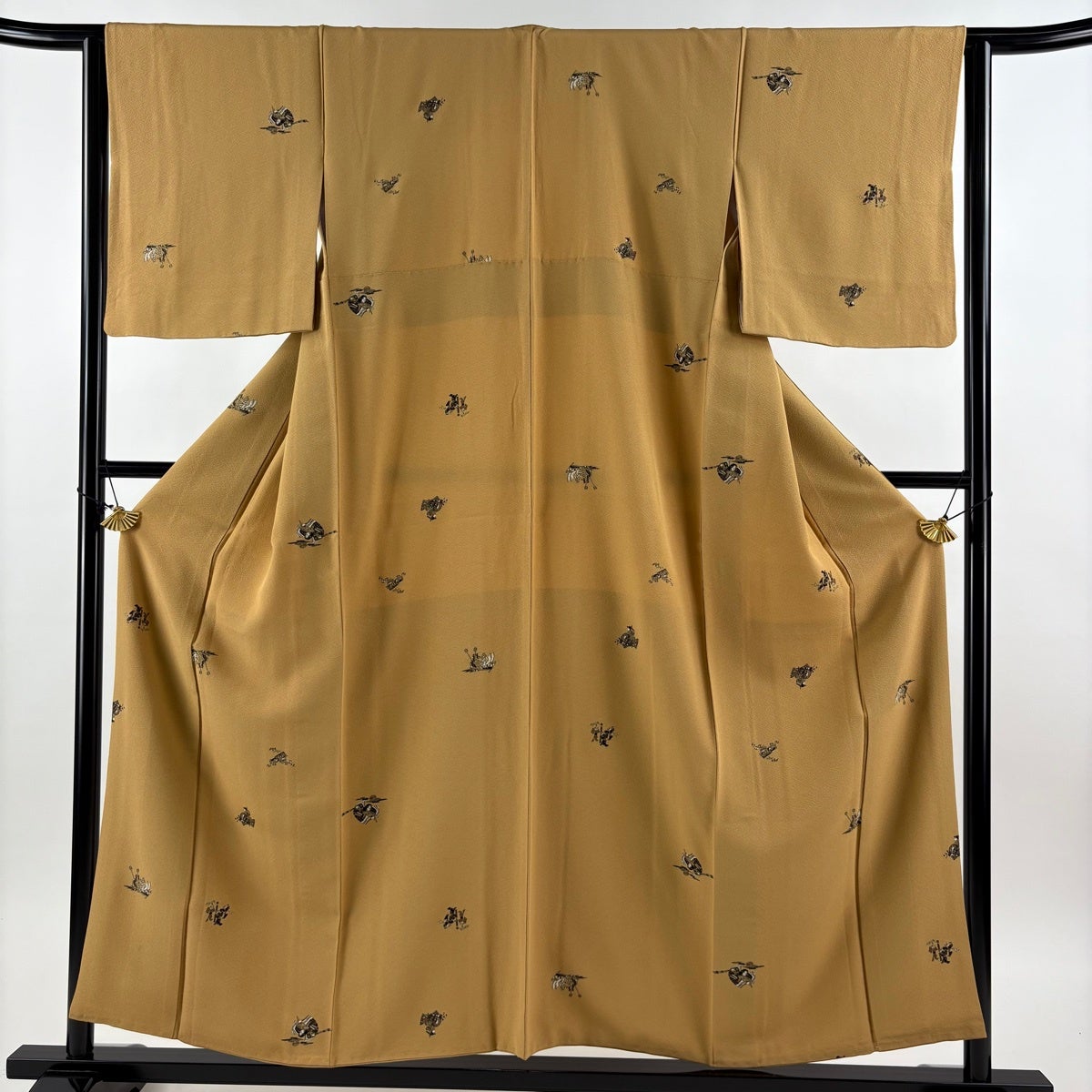 小紋 身丈161cm 裄丈61.5cm S 袷 地紋 葉と実 金彩 山吹茶色 正絹 秀品