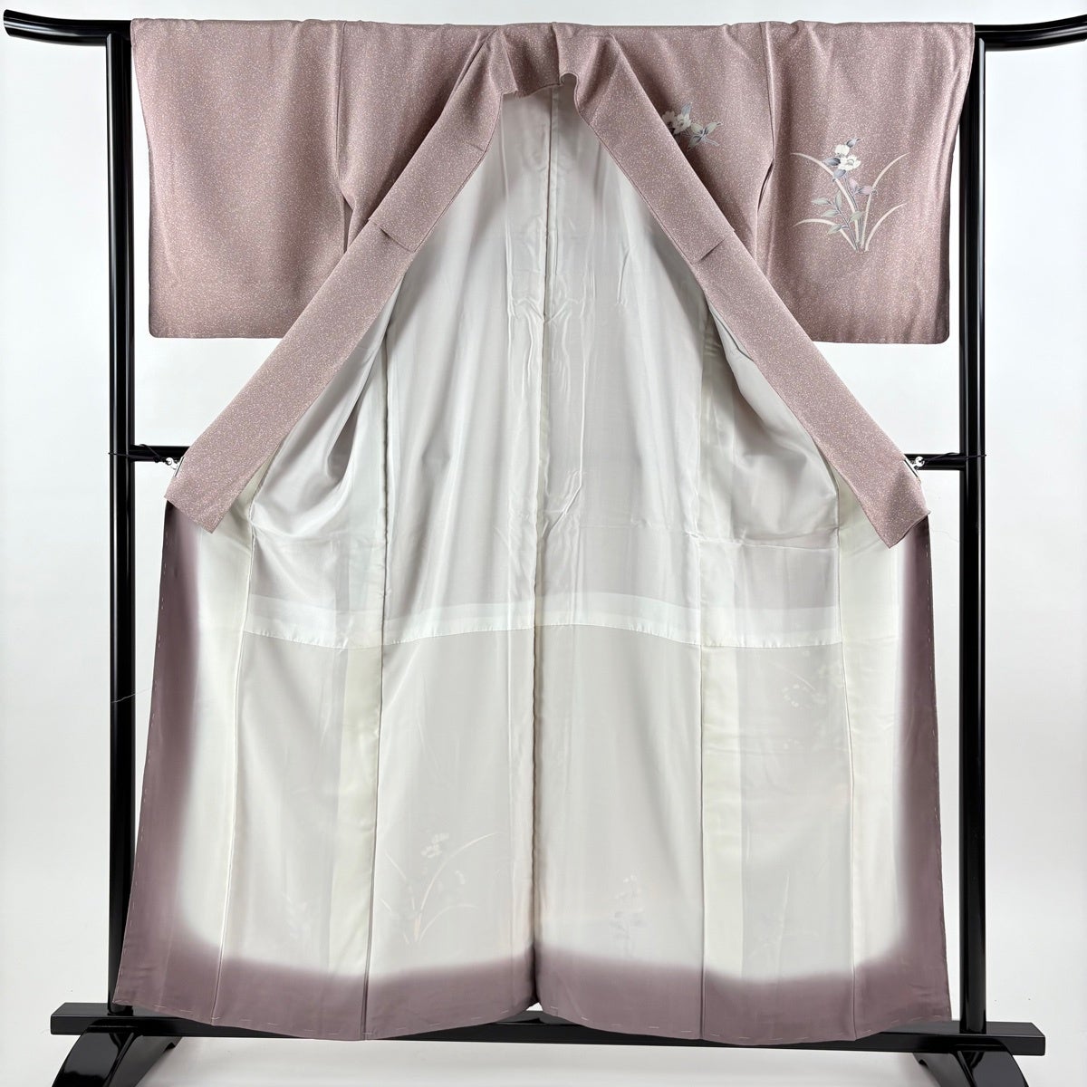 付下げ 身丈155cm 裄丈64.5cm M 袷 文箱 草花 金糸 刺繍 薄紫 正絹 秀品