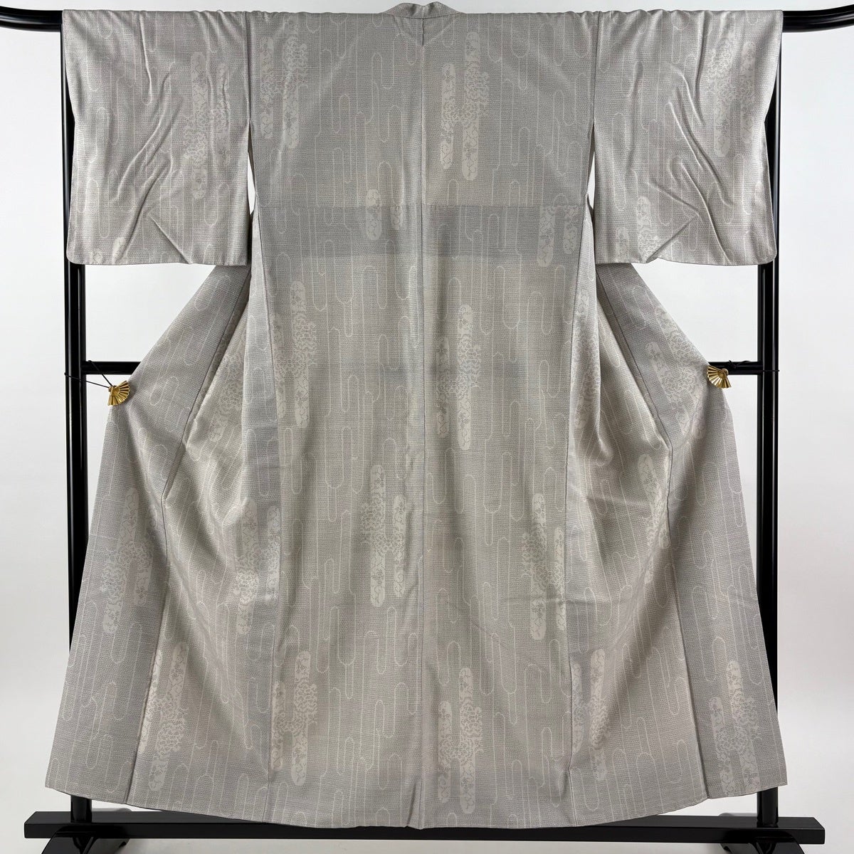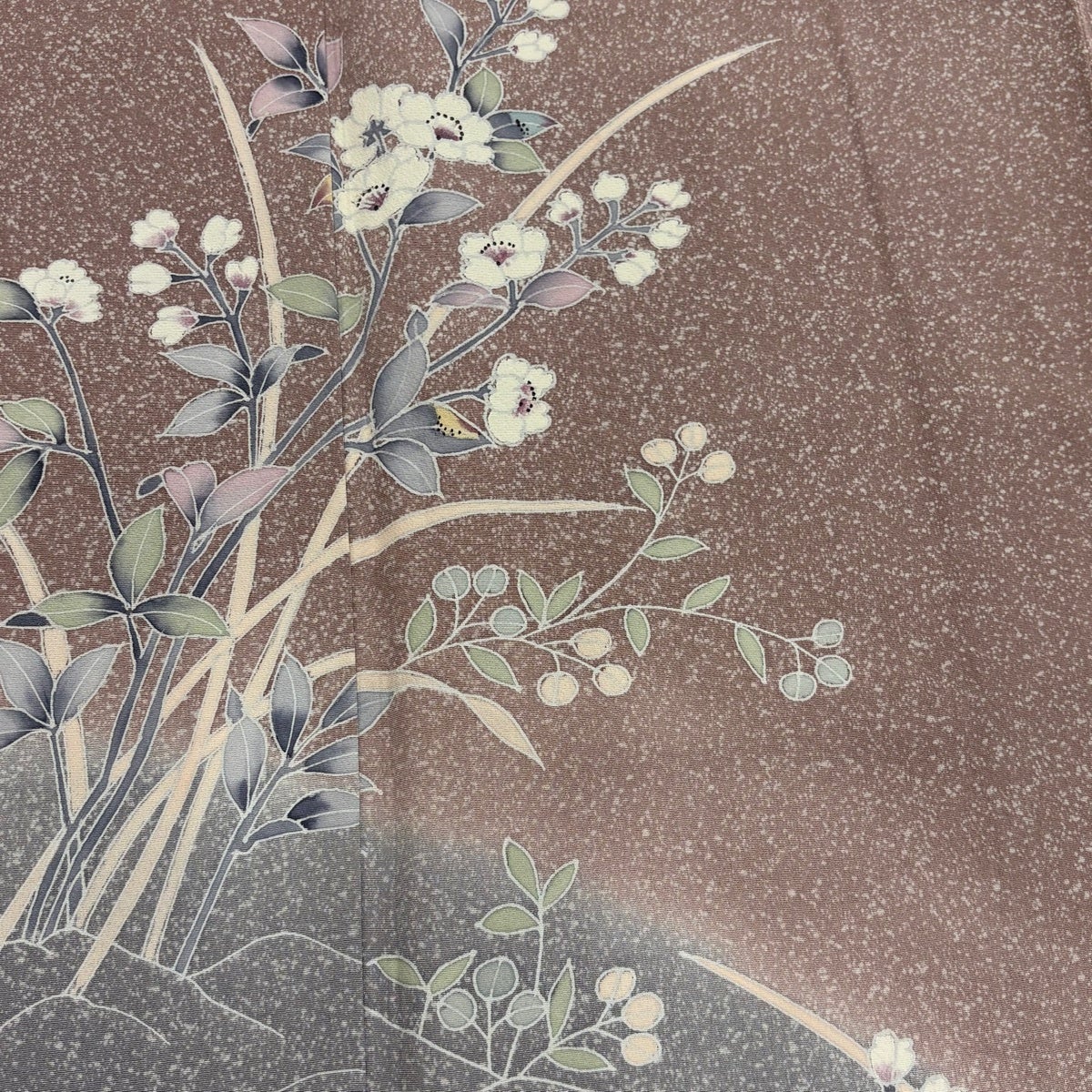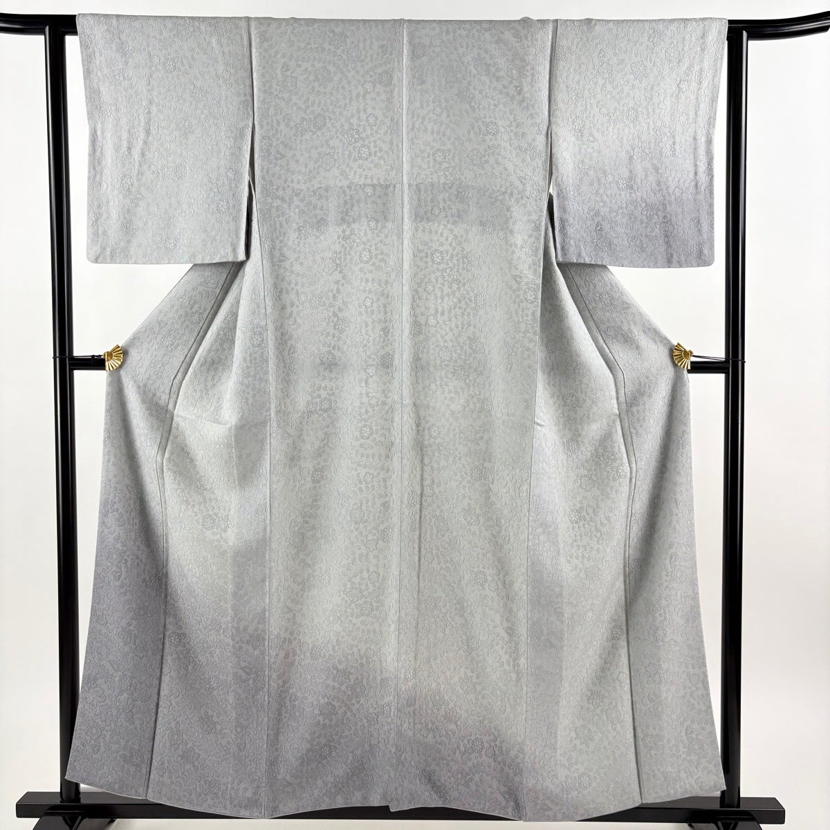 訪問着 身丈155cm 裄丈63.5cm S 袷 落款あり 草花 ぼかし 灰緑 正絹 秀品
