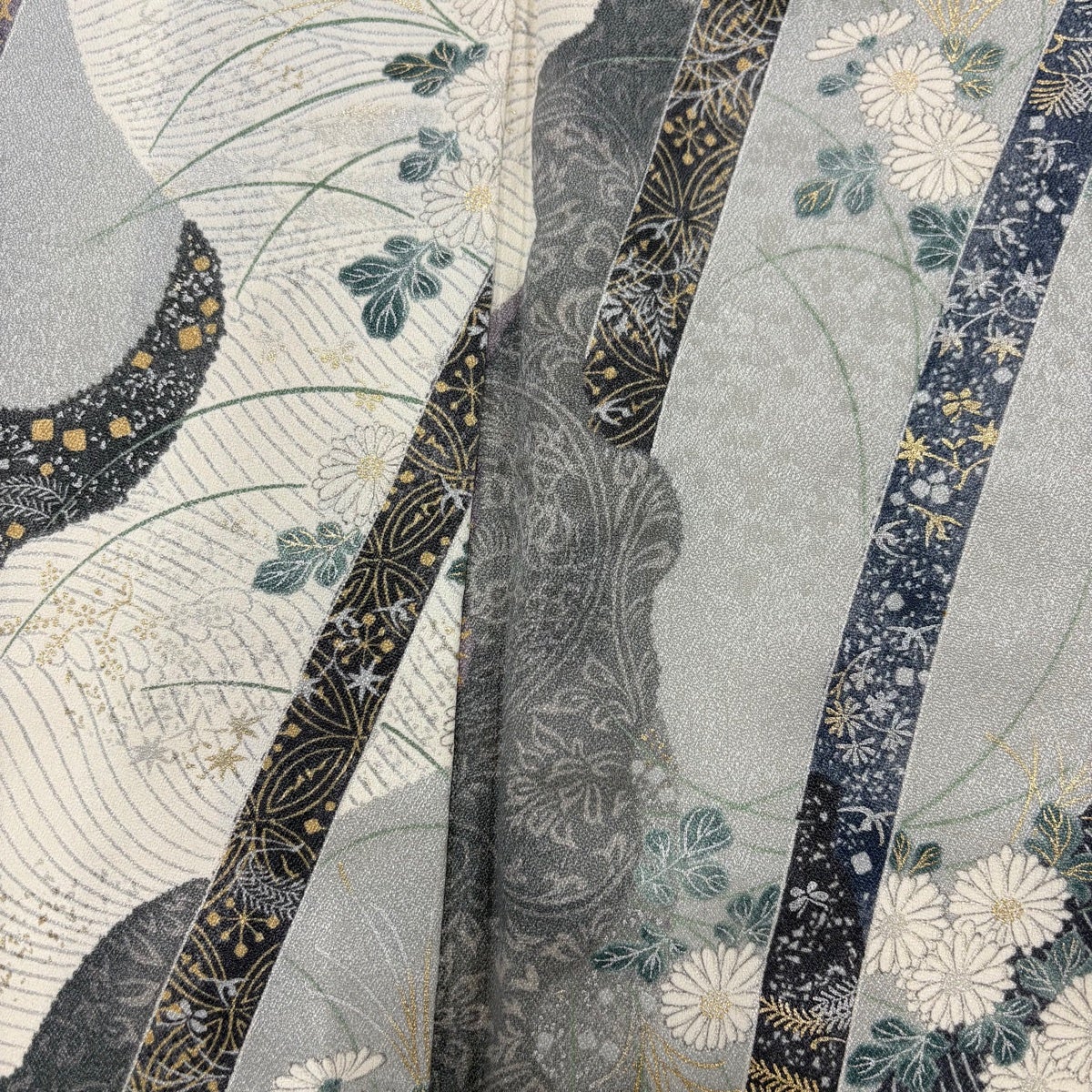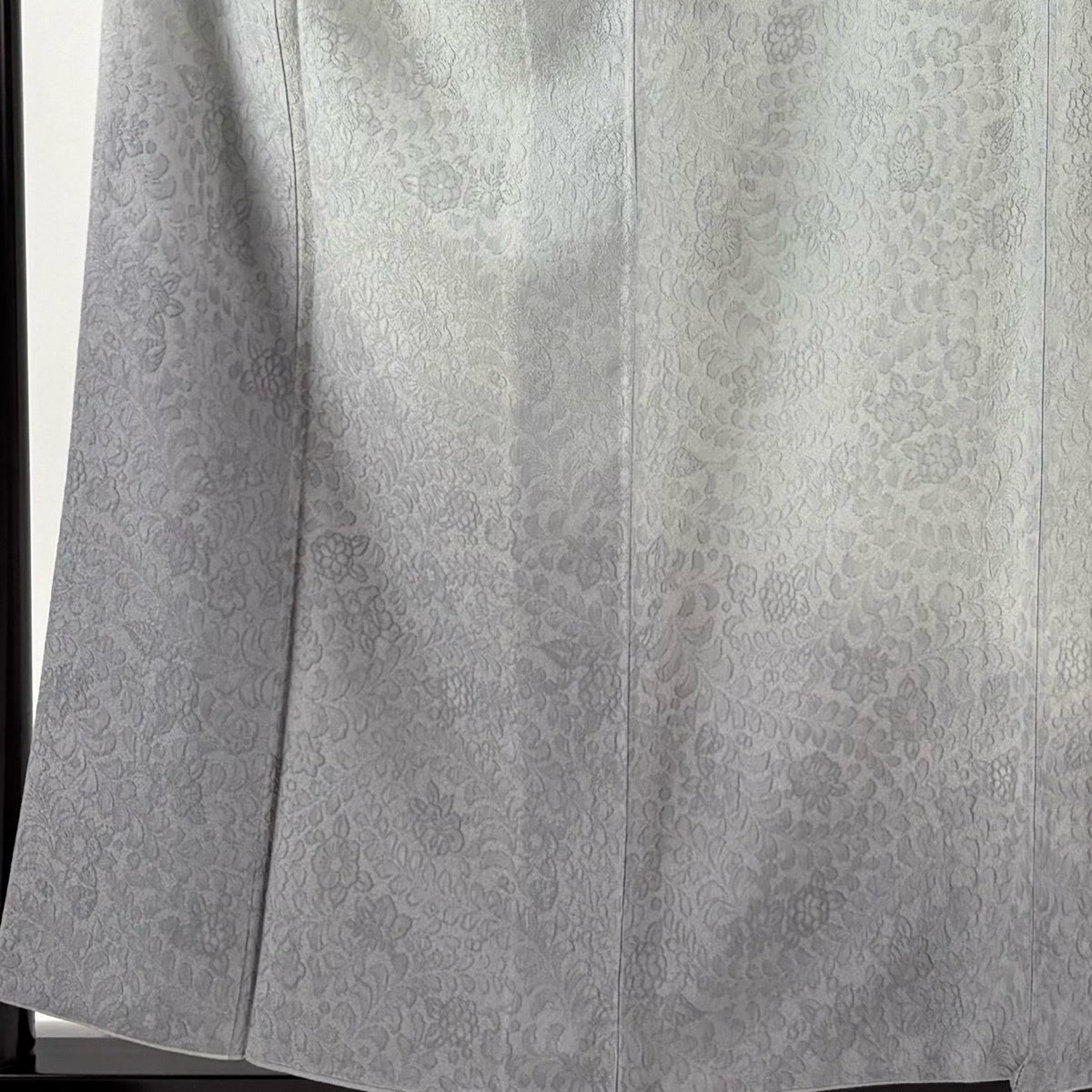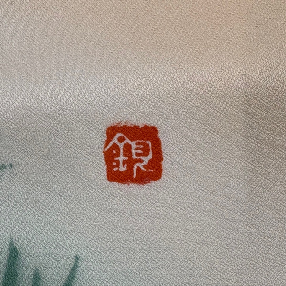 訪問着 身丈155cm 裄丈63.5cm S 袷 落款あり 草花 ぼかし 灰緑 正絹 秀品
