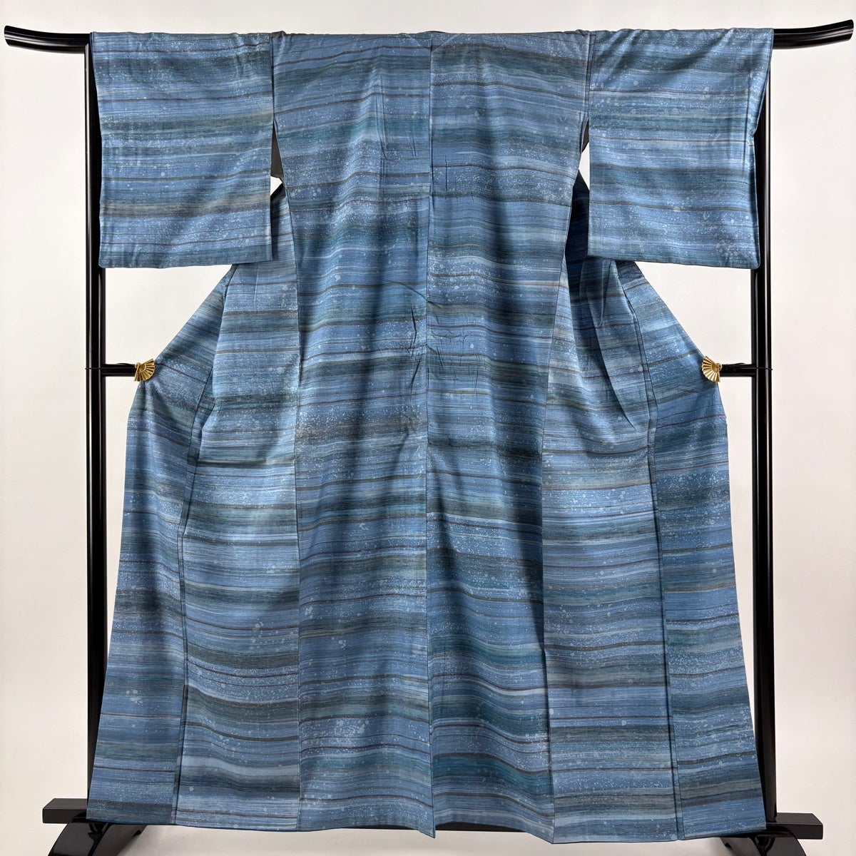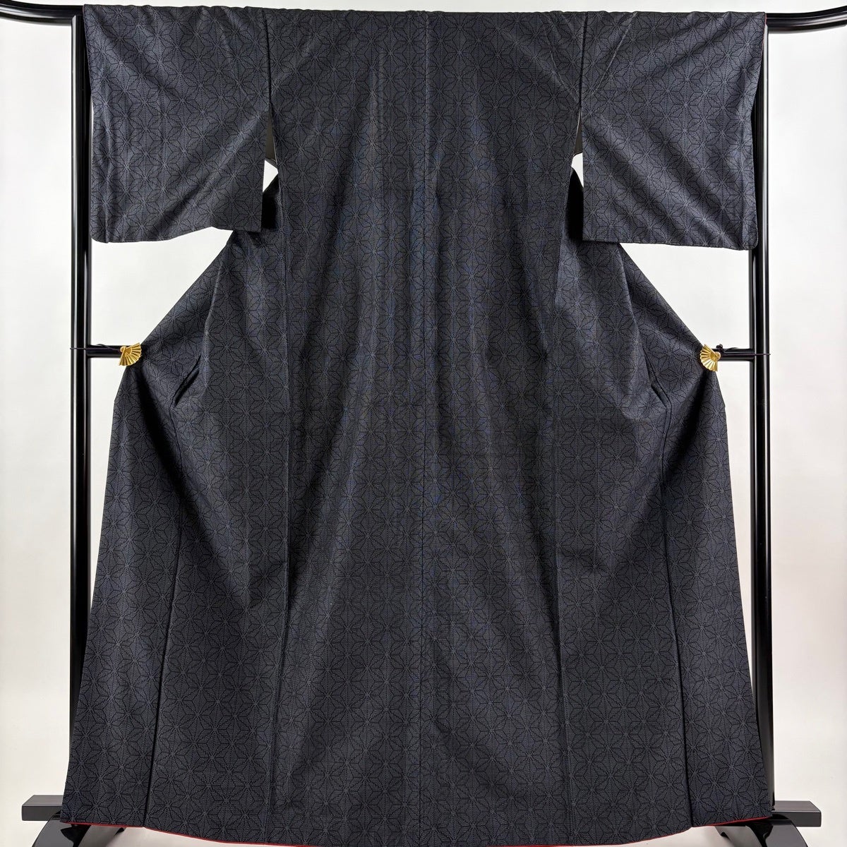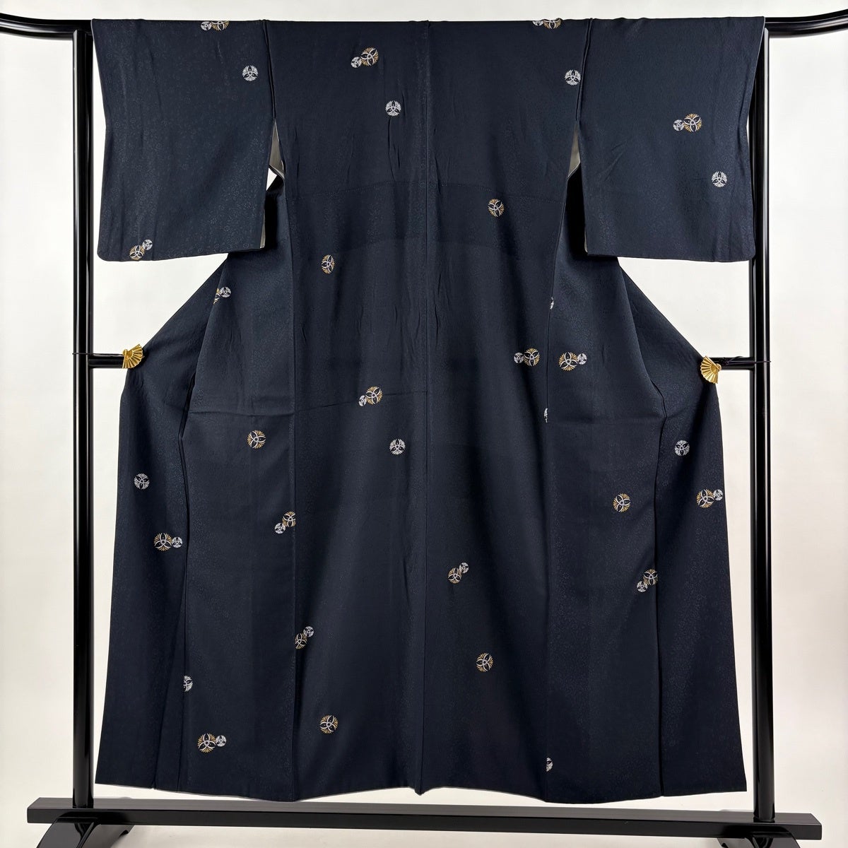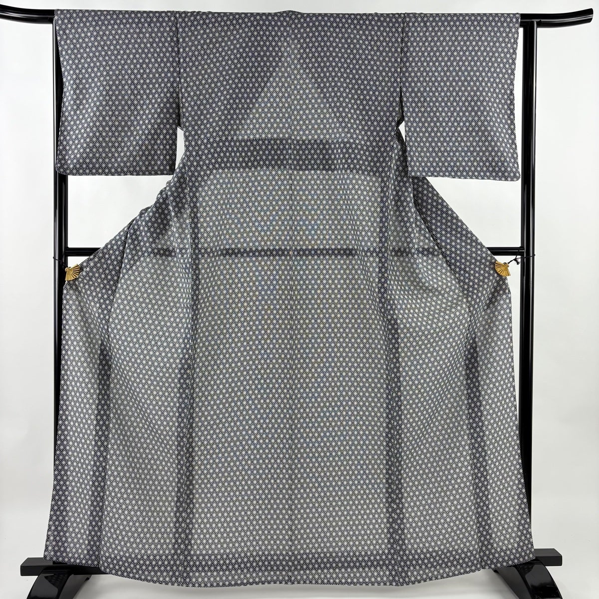 小紋 身丈152.5cm 裄丈66cm M 袷 幾何学模様 地紋 金彩 濃紺 正絹 秀品