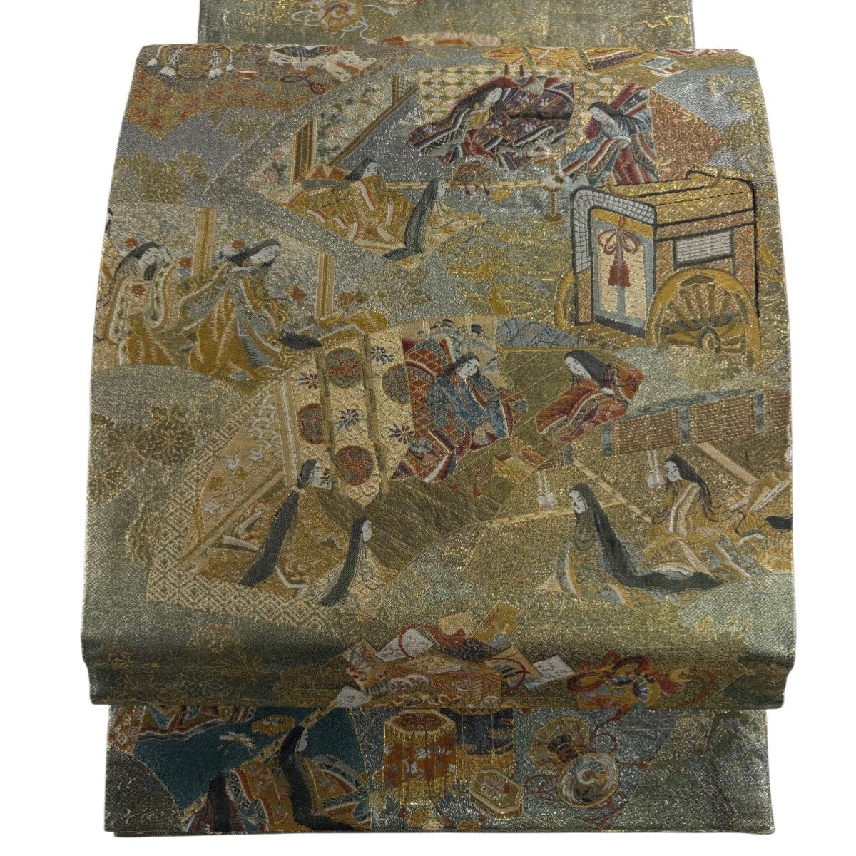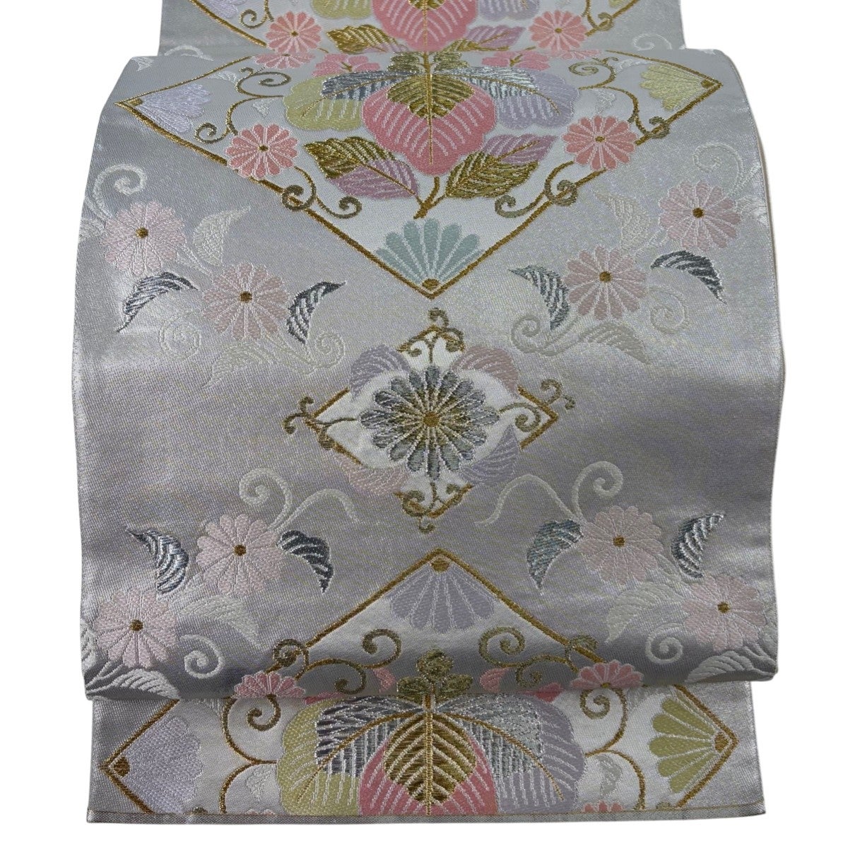 袋帯 秀品 落款あり 本家加納 関西仕立て 桐 菊唐草 金銀糸 唐織 銀色 六通 正絹