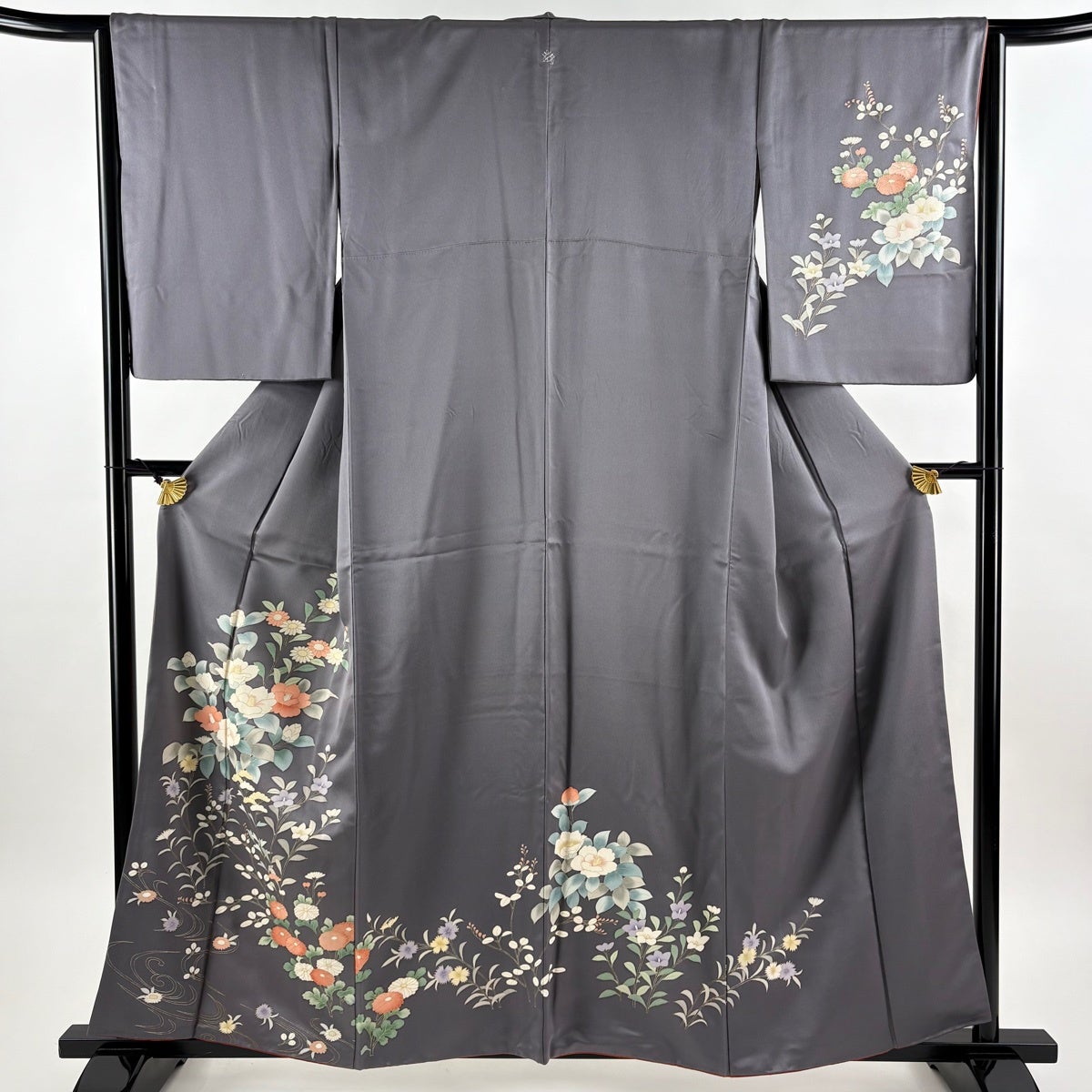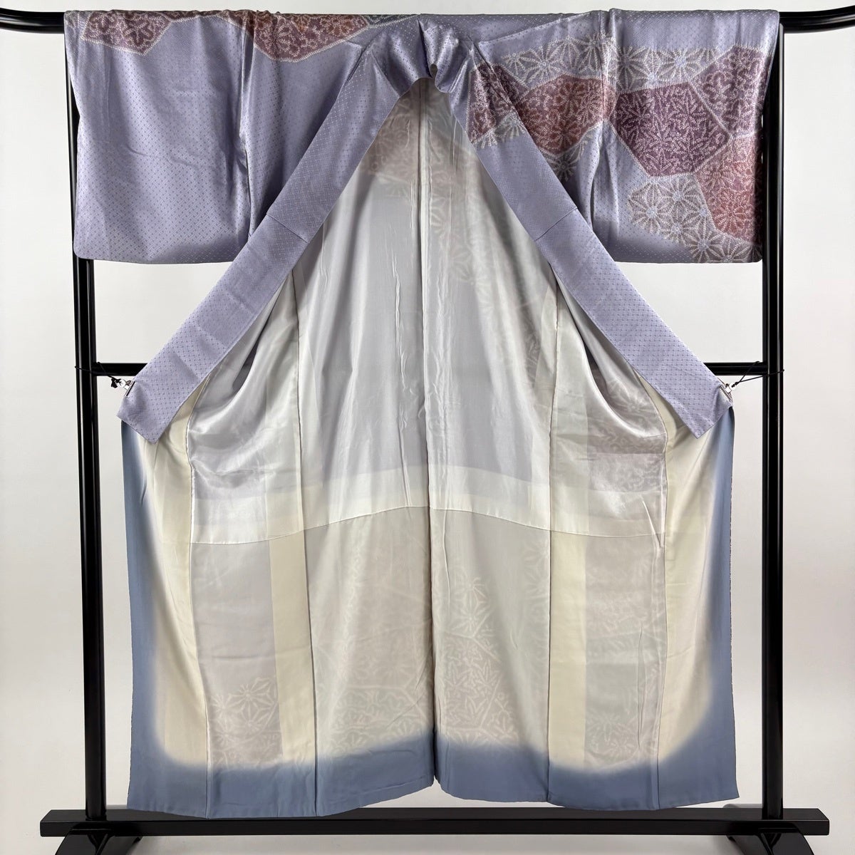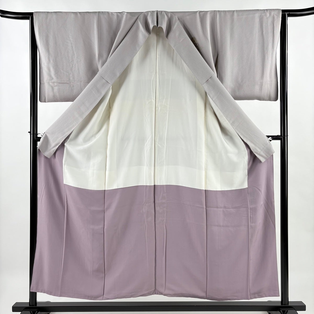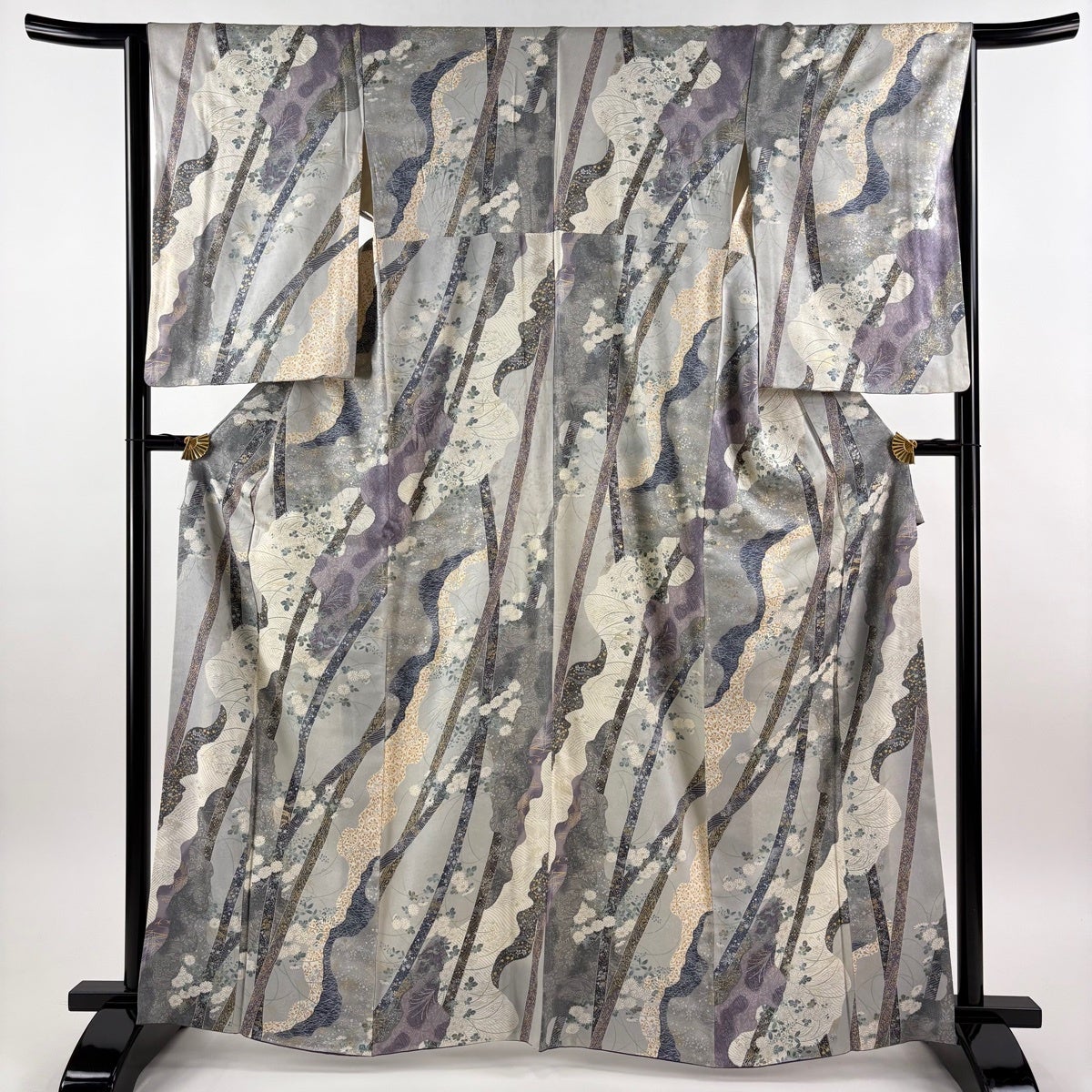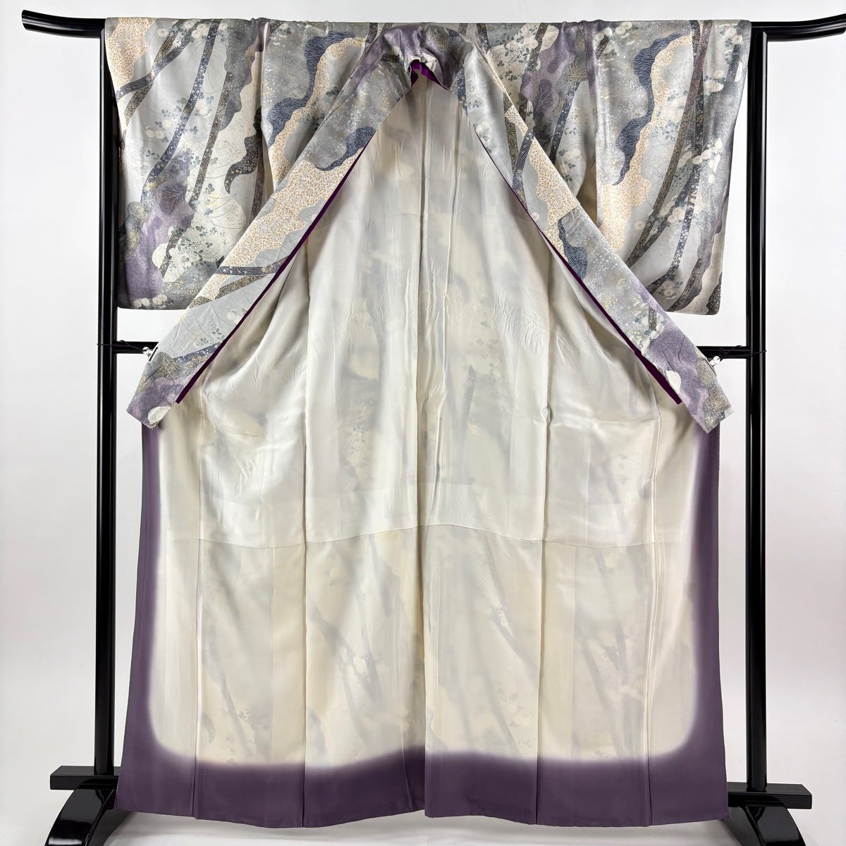 訪問着 身丈159cm 裄丈65cm M 袷 草花 立涌 金彩 ぼかし 灰紫 正絹 秀品