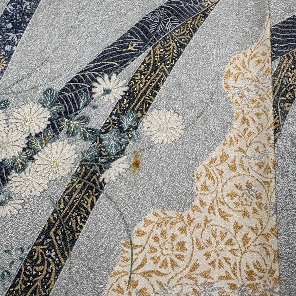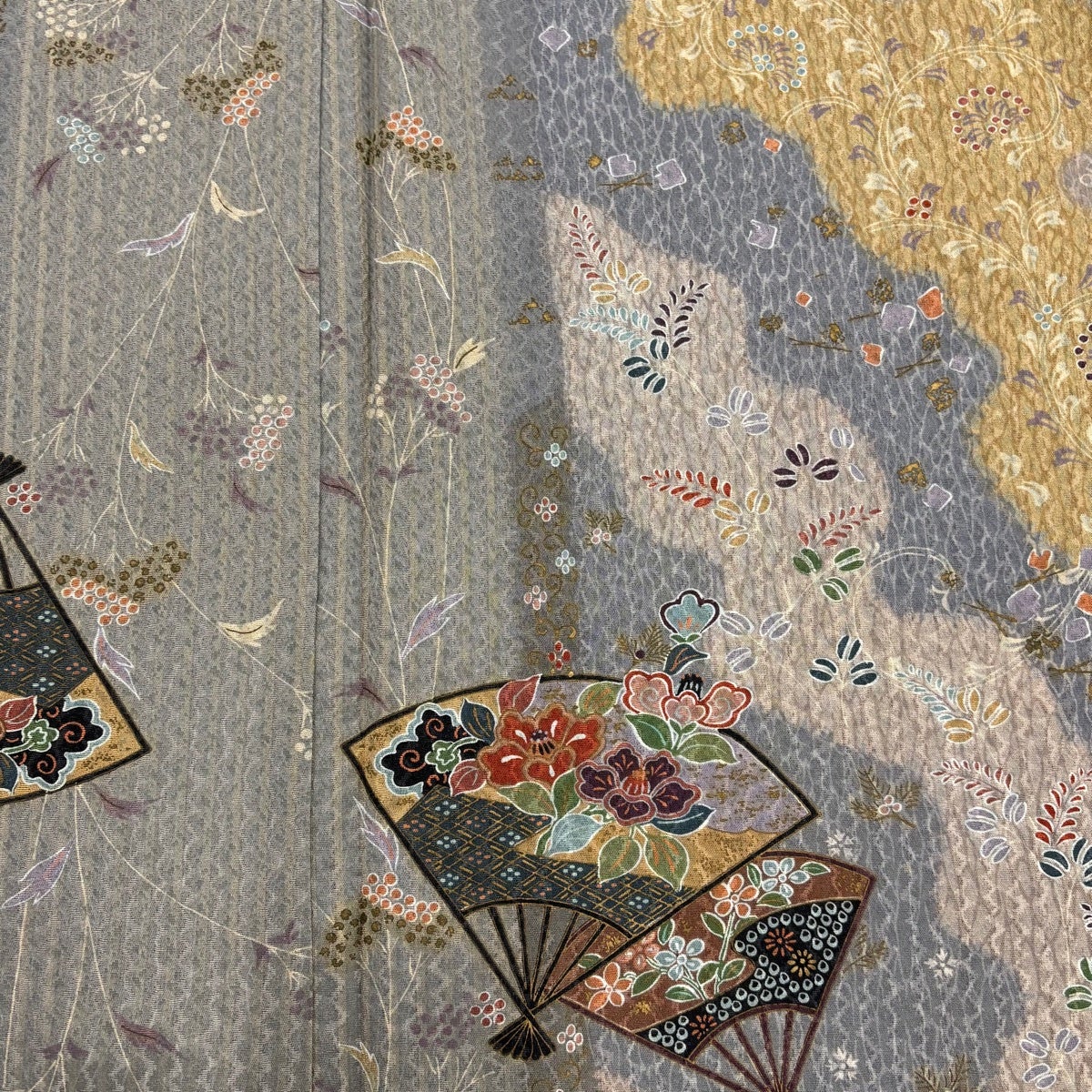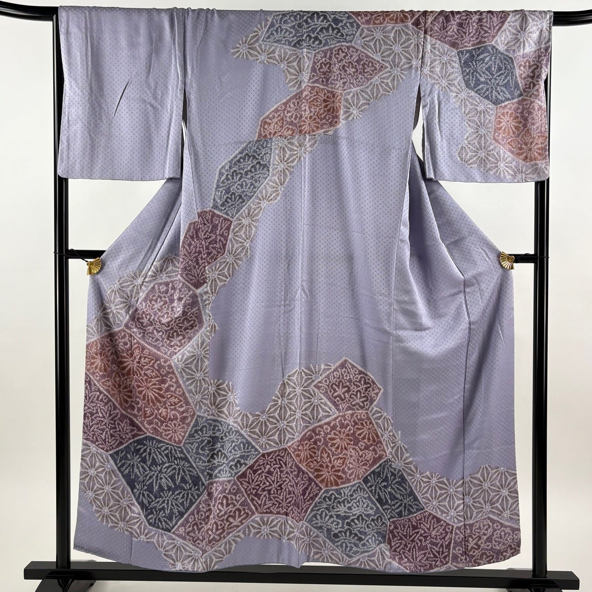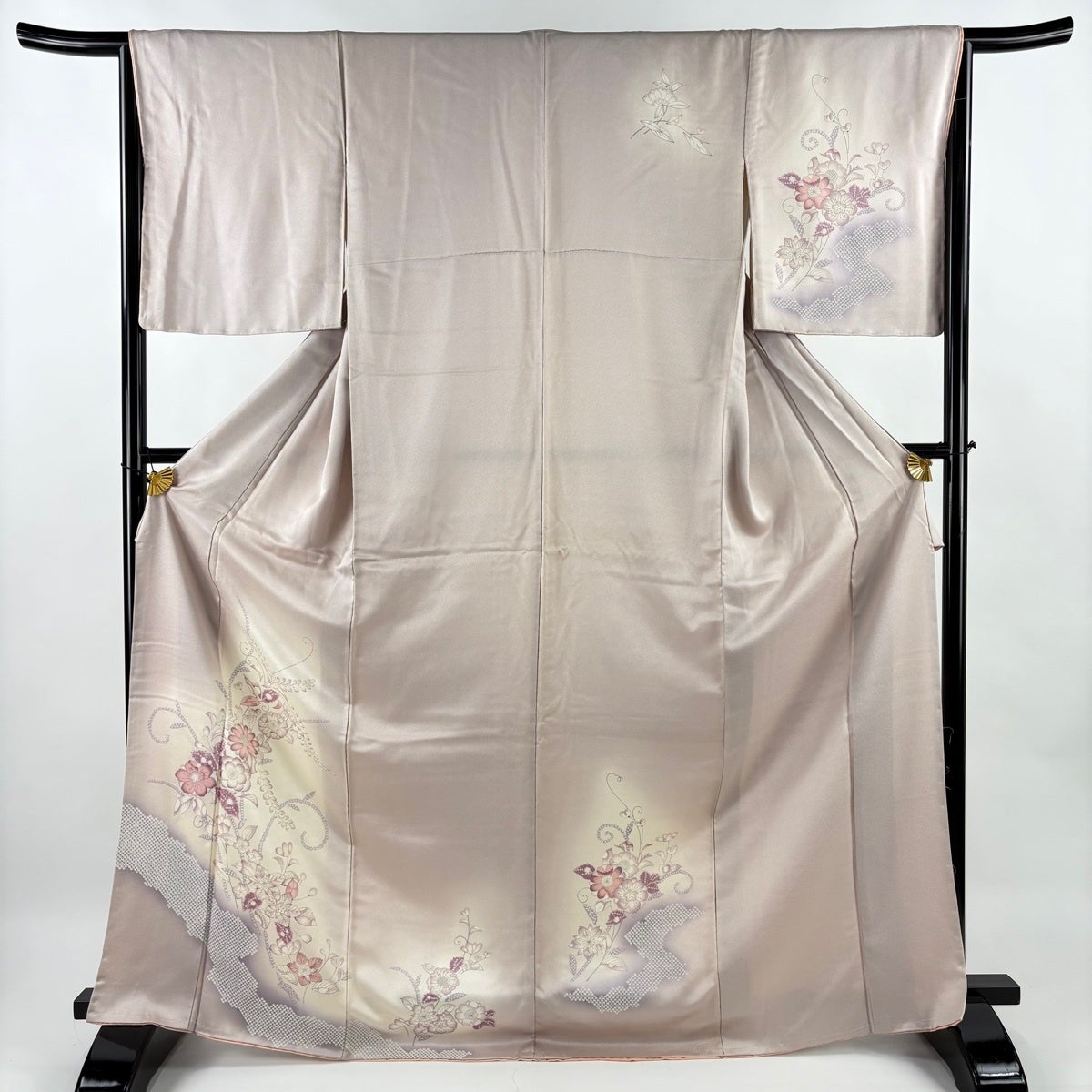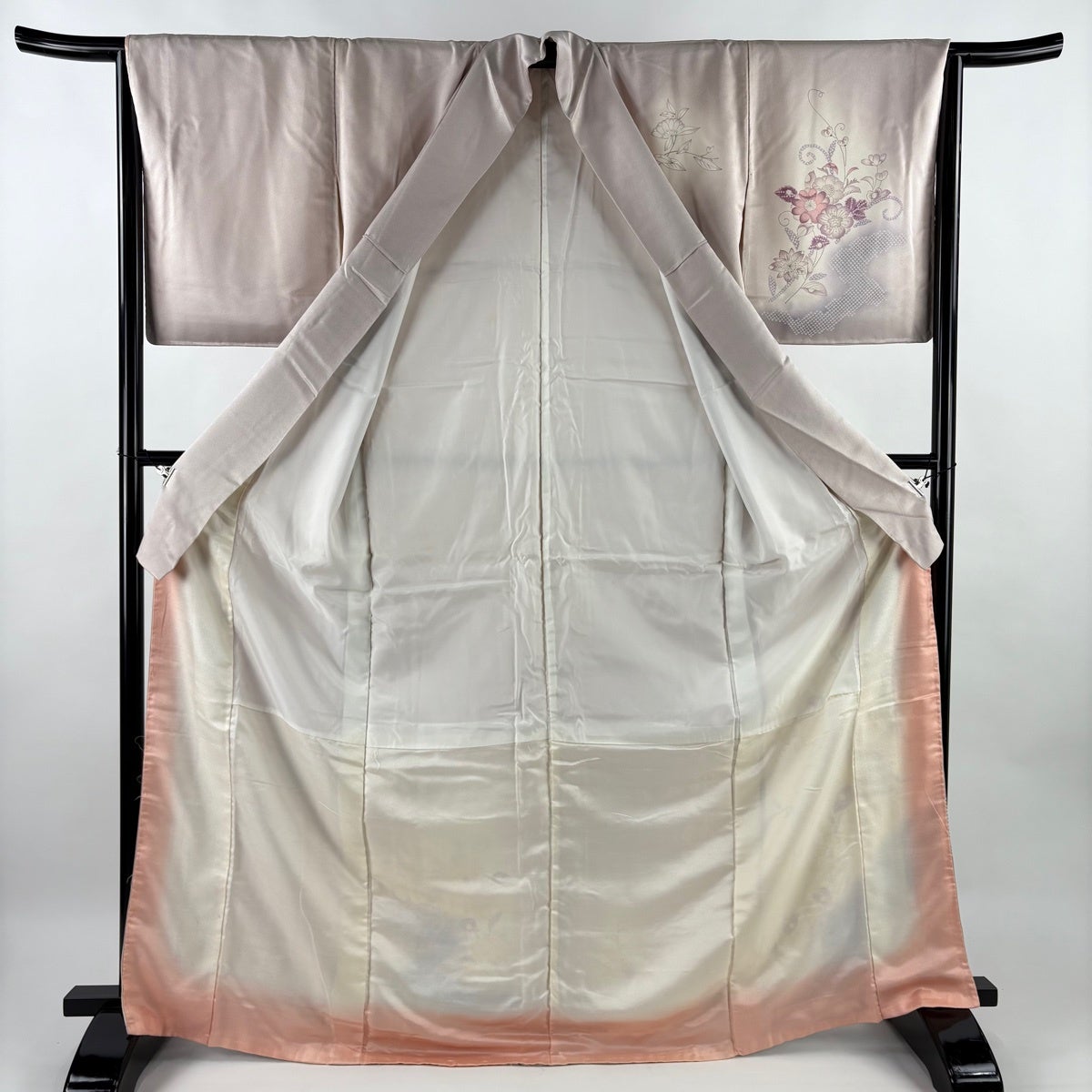訪問着 身丈159cm 裄丈65cm M 袷 草花 立涌 金彩 ぼかし 灰紫 正絹 秀品