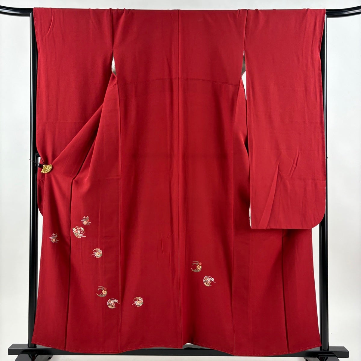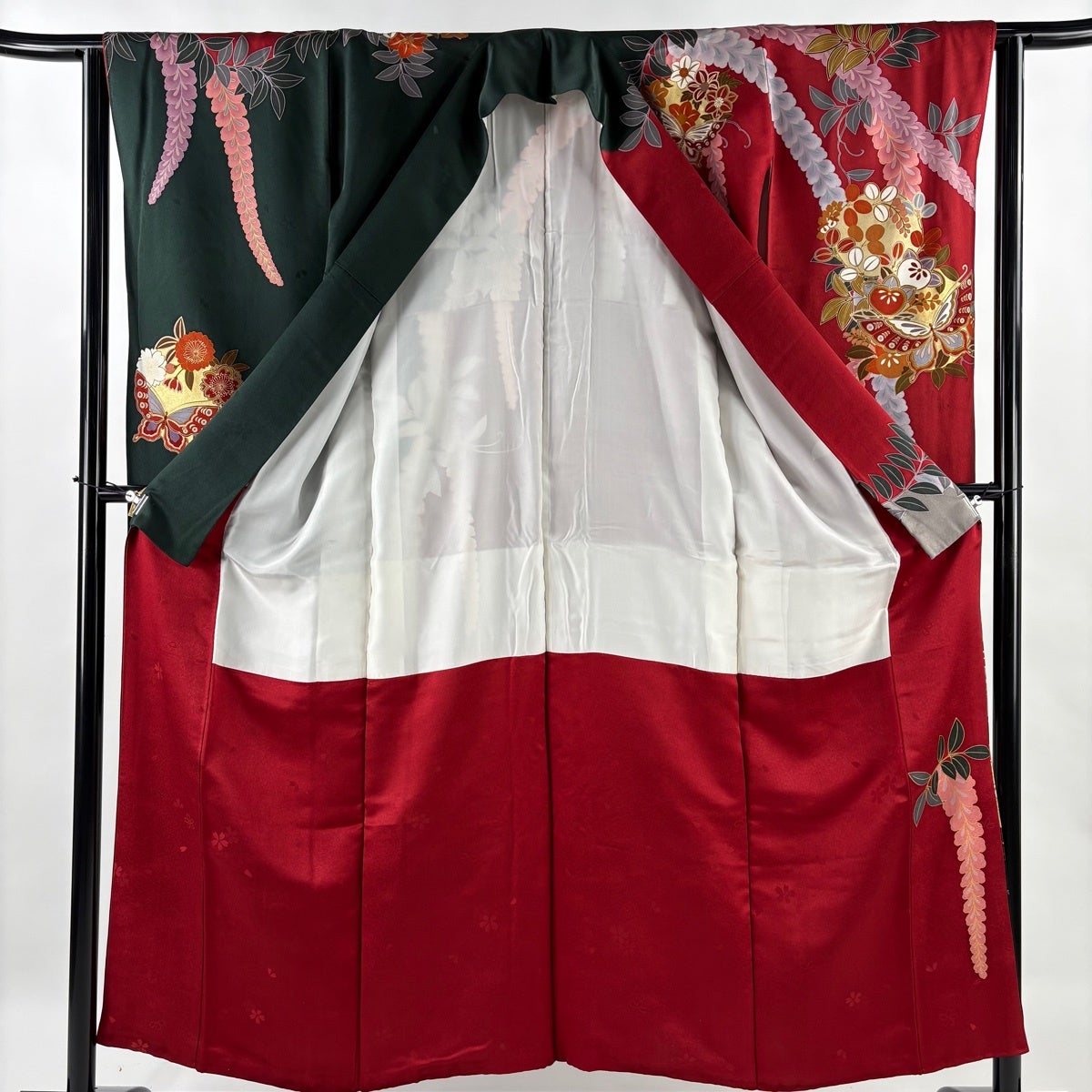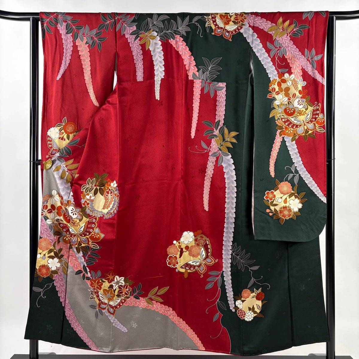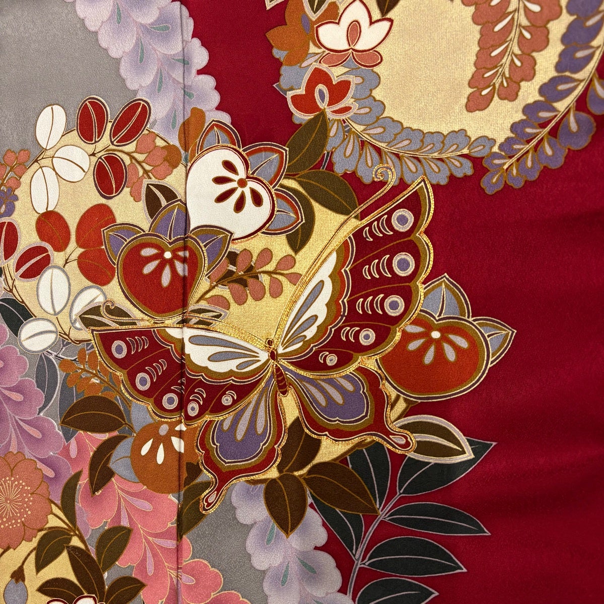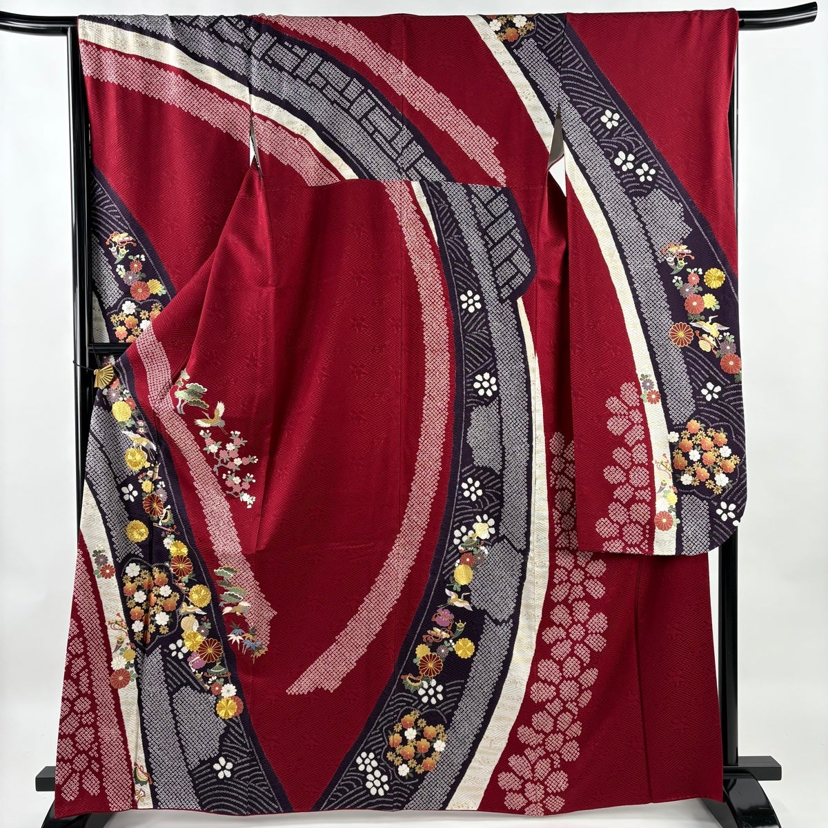 振袖 身丈165.5cm 裄丈67cm M 袷 菊 宝尽くし 絞り 金糸 赤 正絹 秀品