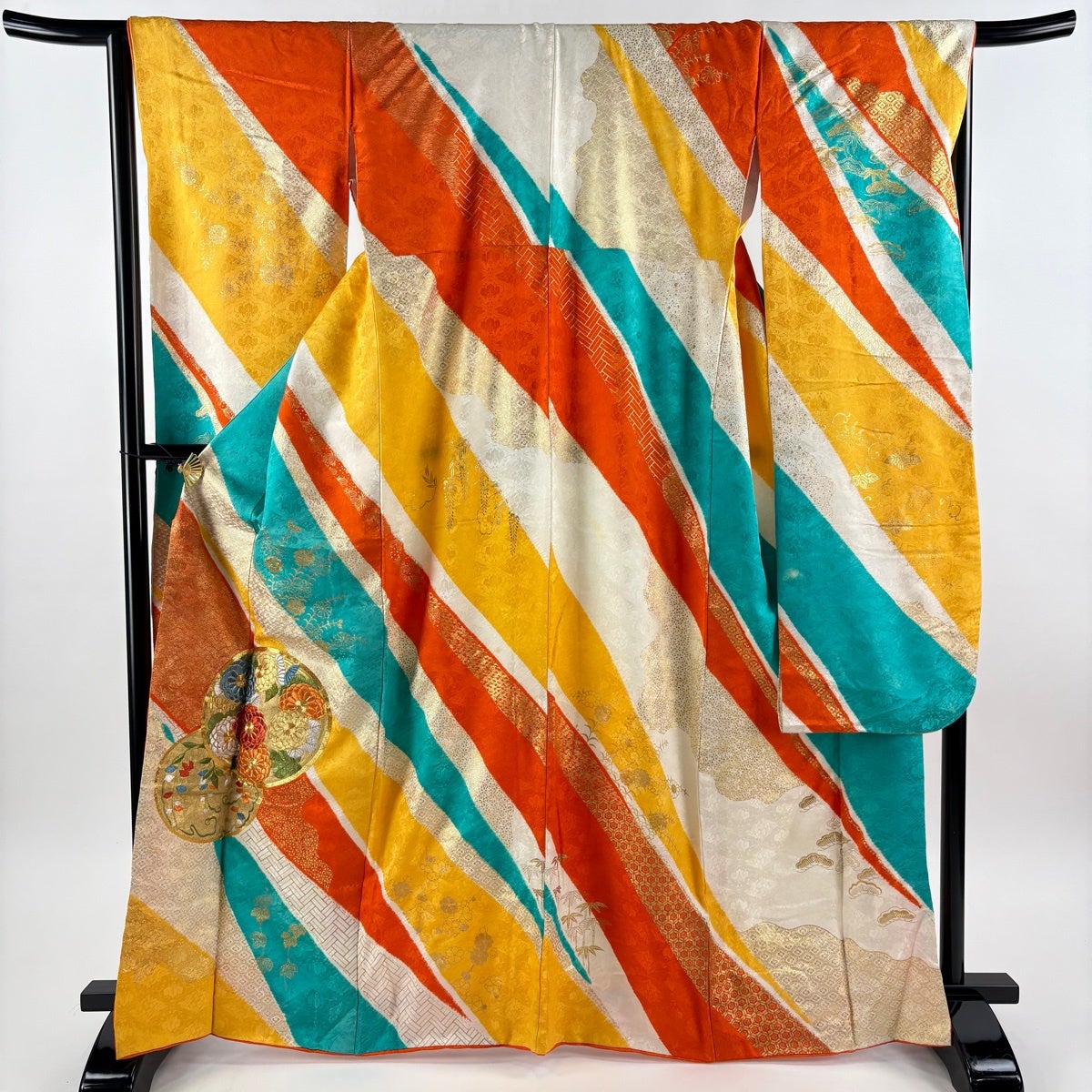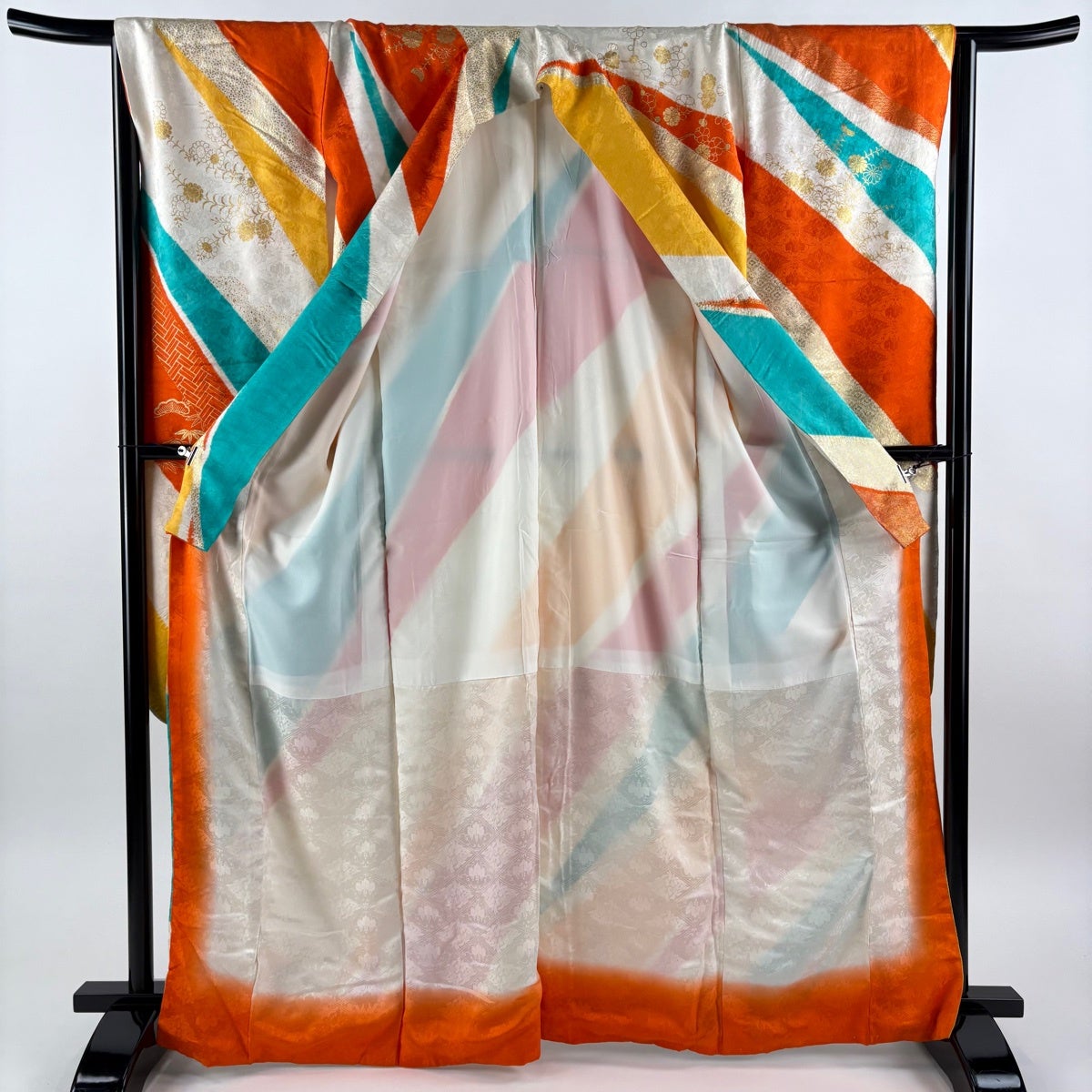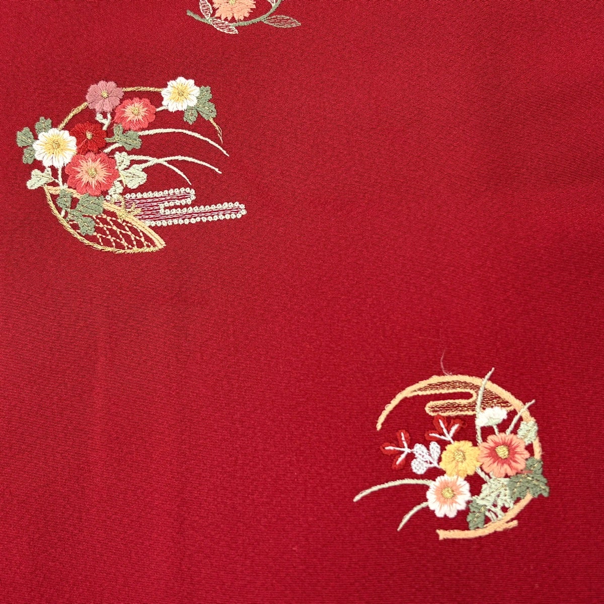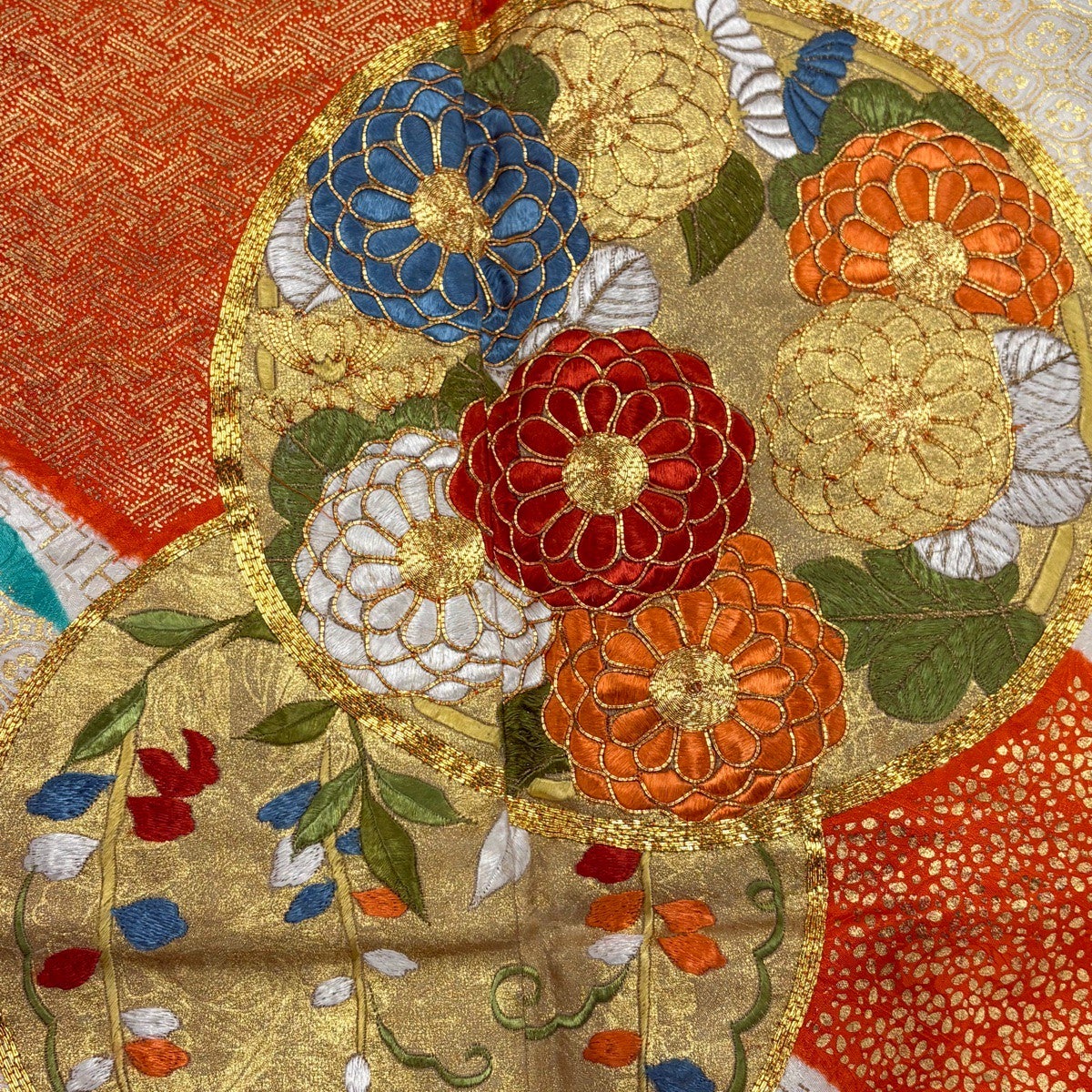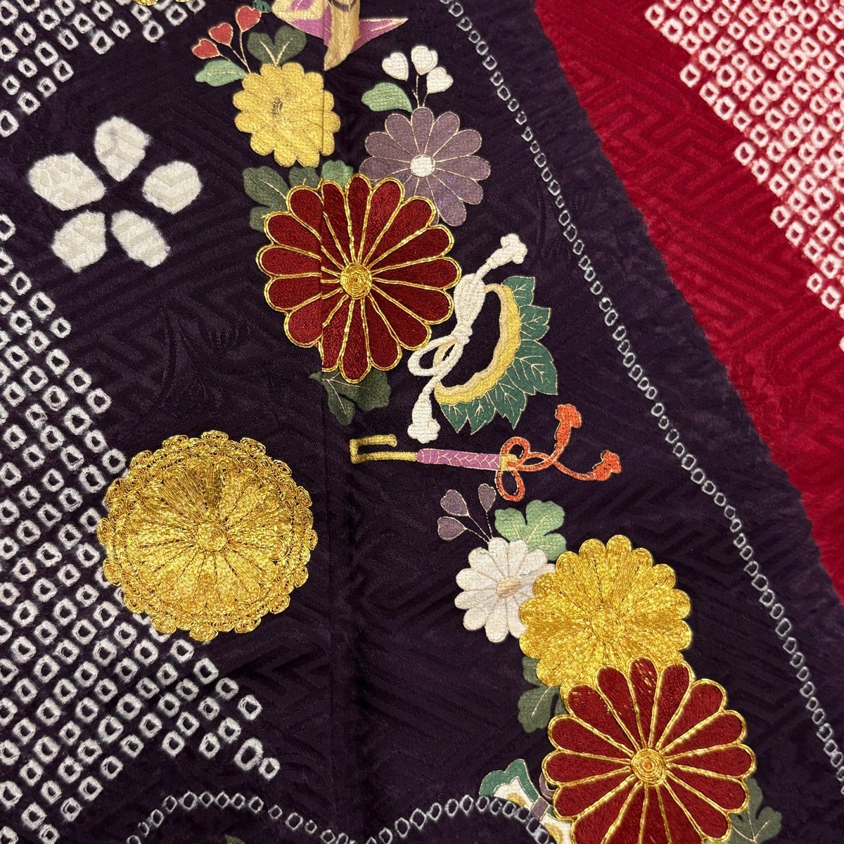 振袖 身丈165.5cm 裄丈67cm M 袷 菊 宝尽くし 絞り 金糸 赤 正絹 秀品