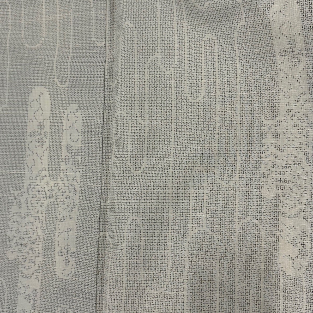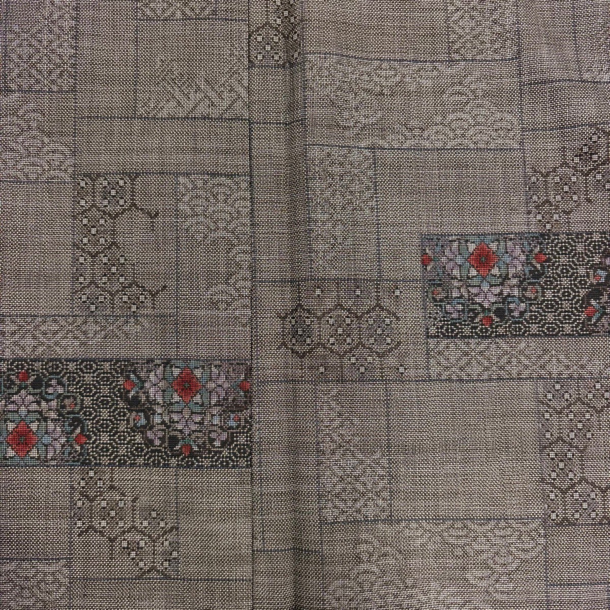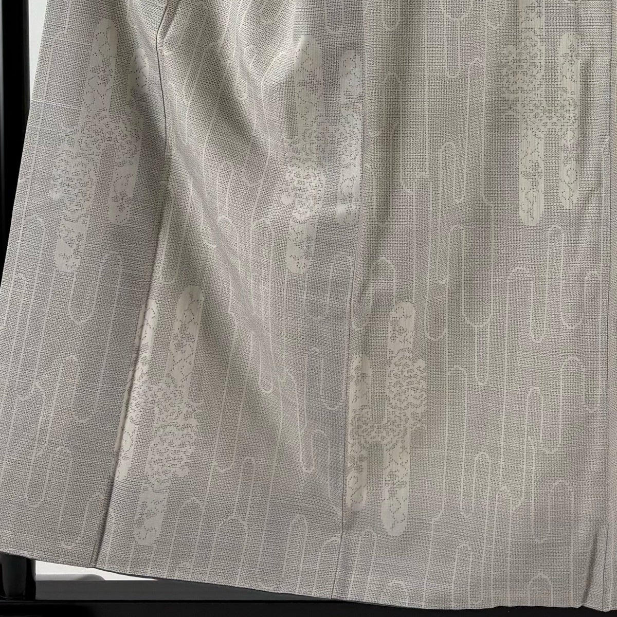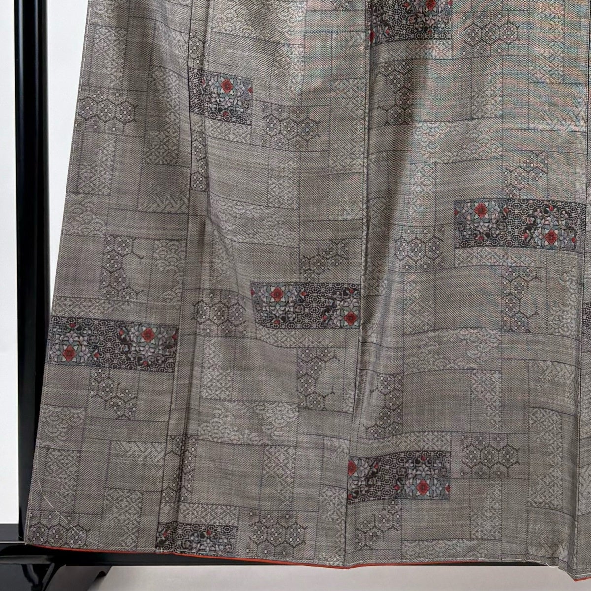【美品】 紬 身丈160cm 裄丈65cm M 袷 幾何学模様 亀甲絣 灰茶 正絹 秀品