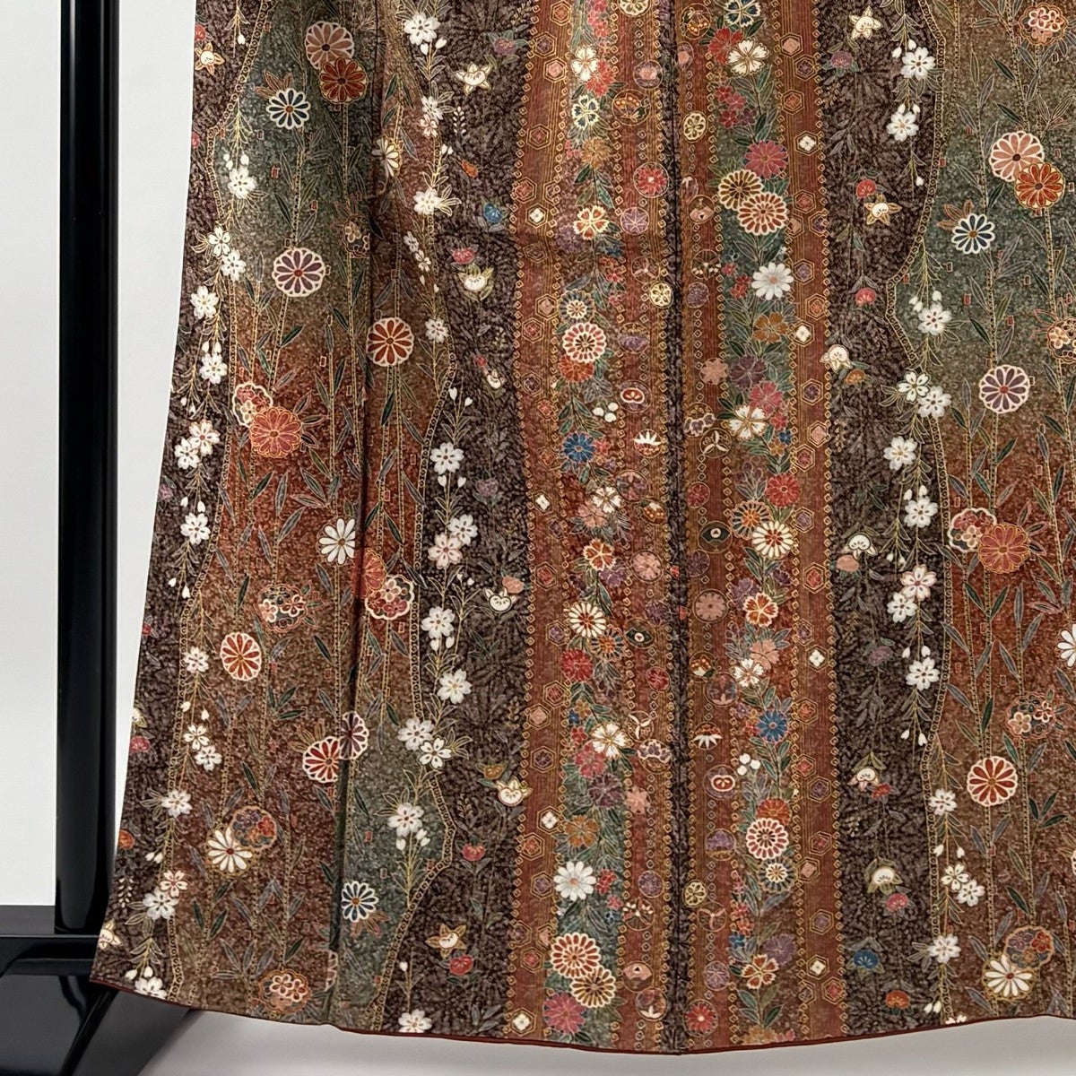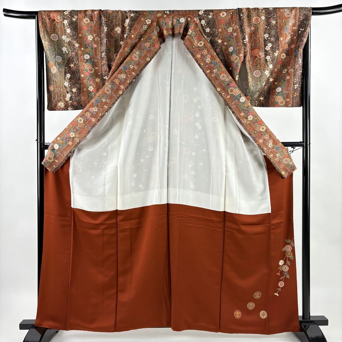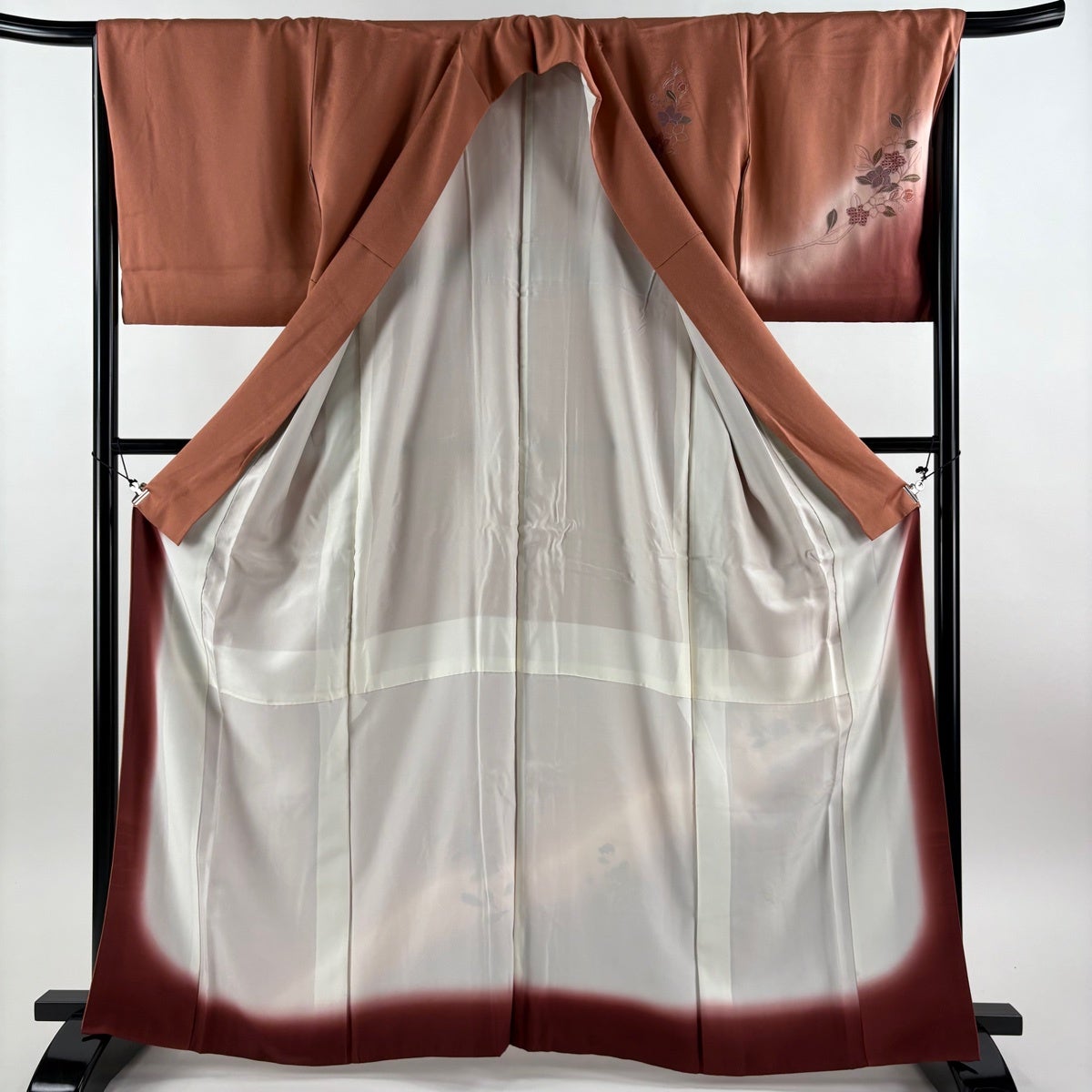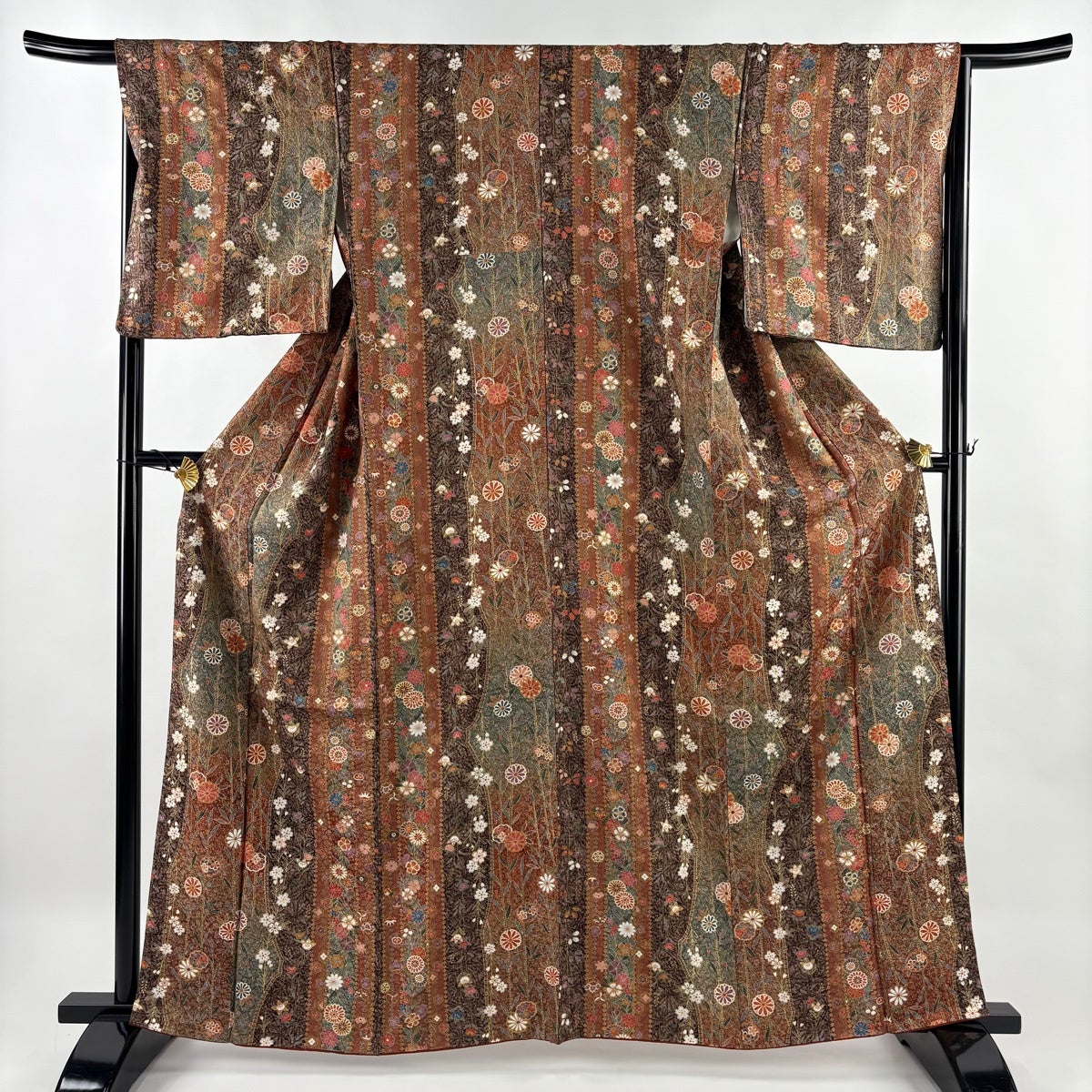 訪問着 身丈159.5cm 裄丈66.5cm M 袷 萩 流水 金彩 絞り 赤茶 正絹 秀品