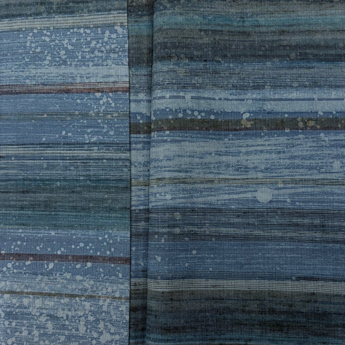 紬 身丈164.5cm 裄丈66.5cm M 袷 藍の絣 証紙あり 麻の葉 濃紺 正絹 秀品