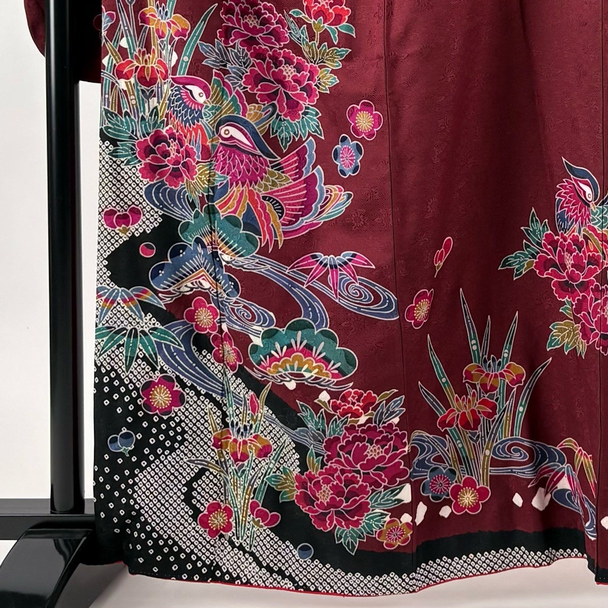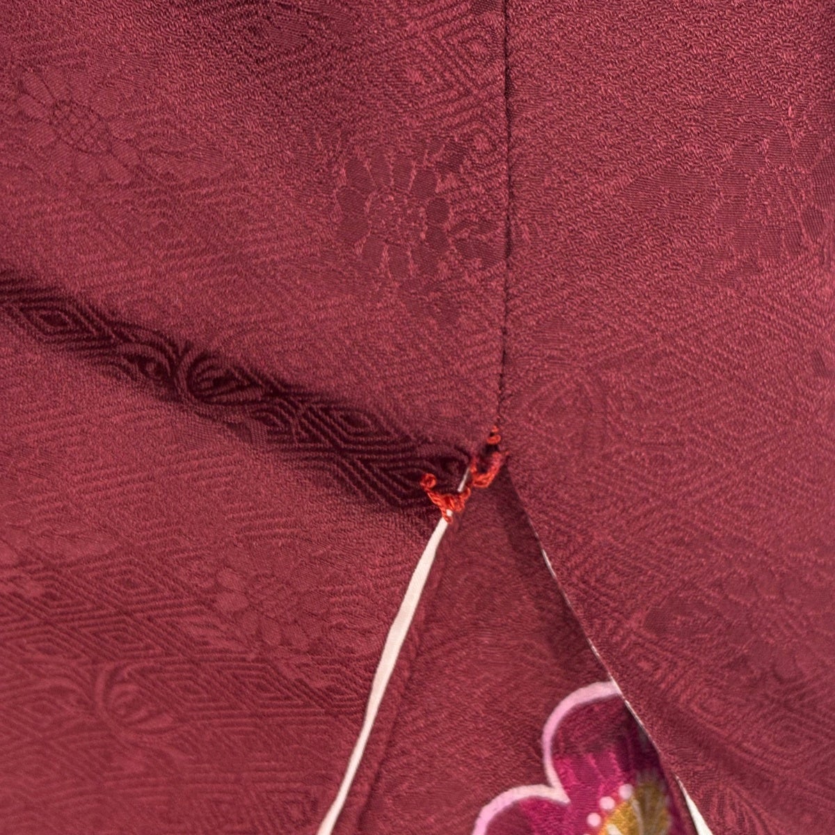 【美品】 振袖 身丈163cm 裄丈67.5cm L 袷 桜 金彩 えんじ色 正絹 秀品