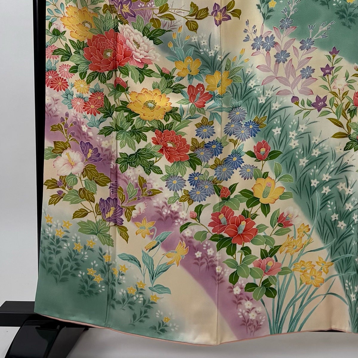 振袖 身丈171cm 裄丈69cm L 袷 桜 流水 金彩 ぼかし ピンク 正絹 秀品