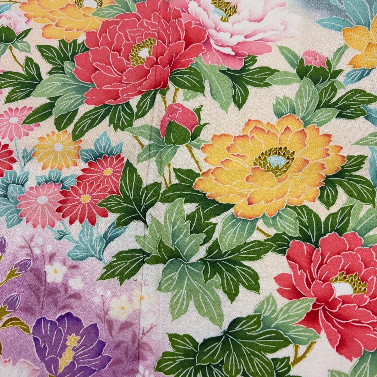 振袖 身丈164cm 裄丈68cm L 袷 椿 牡丹 金彩 ぼかし ピンク 正絹 秀品