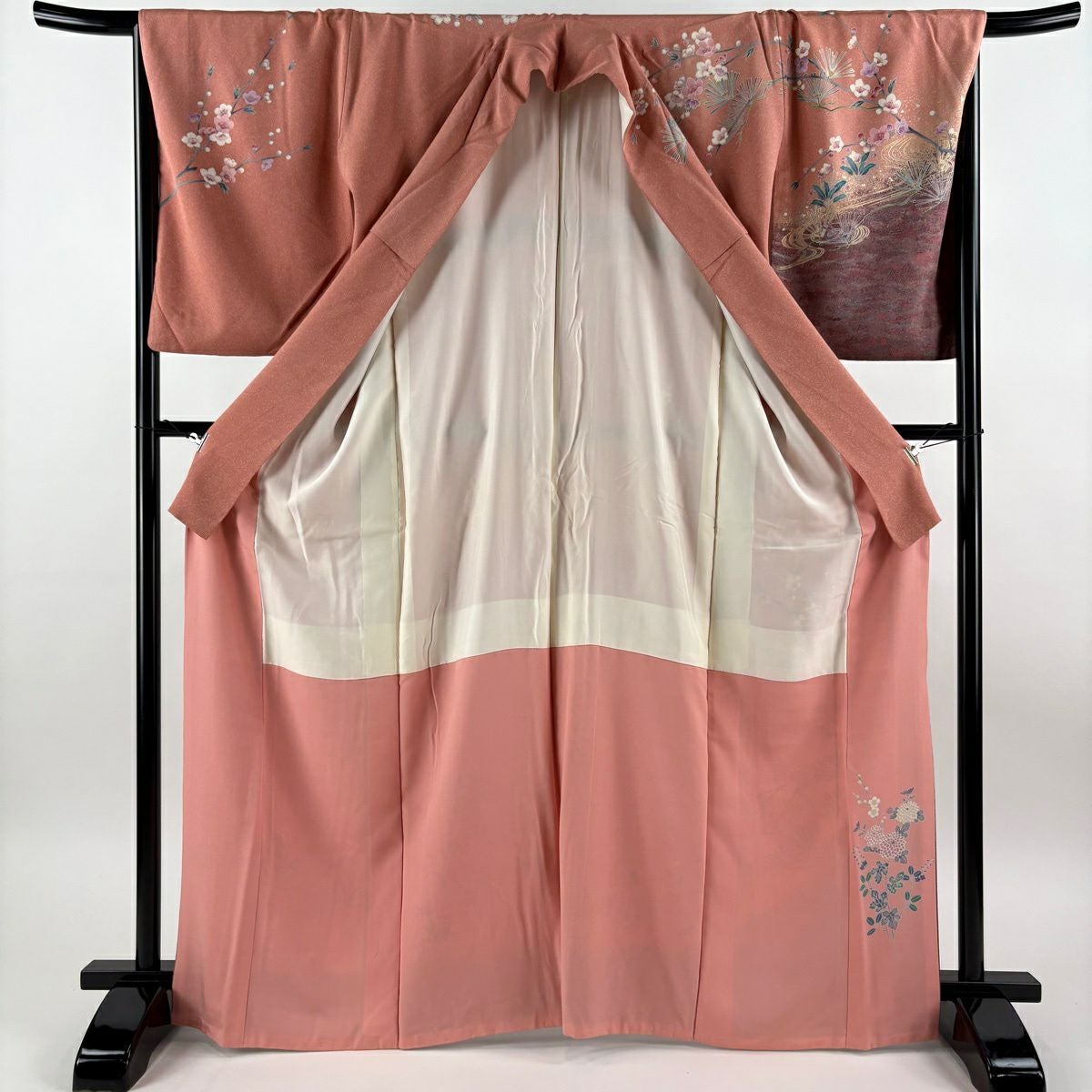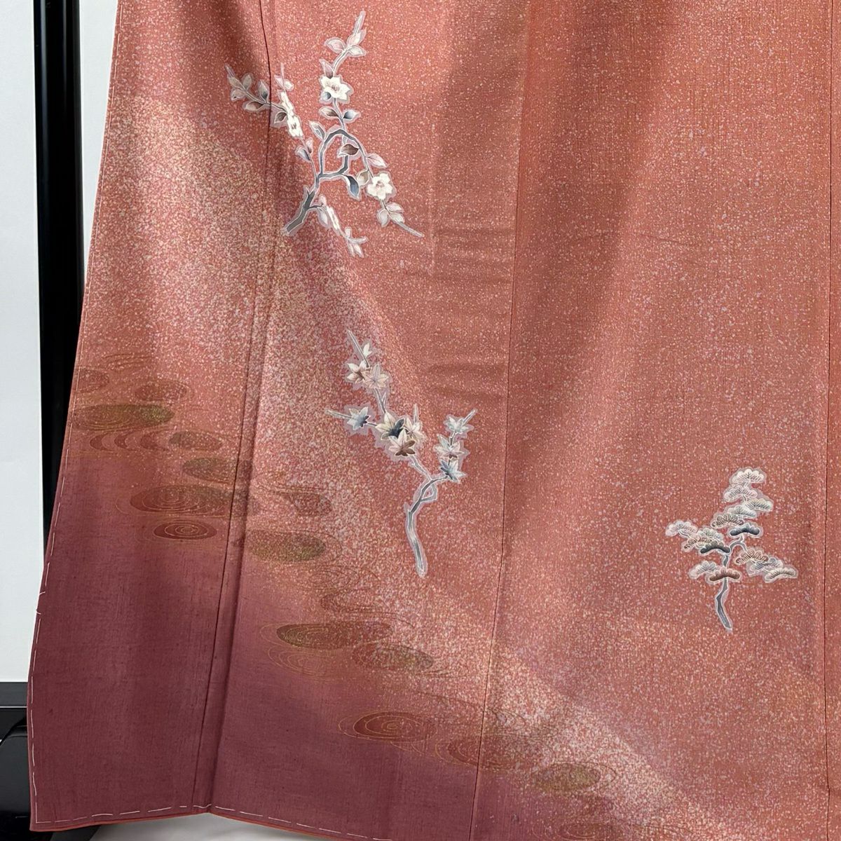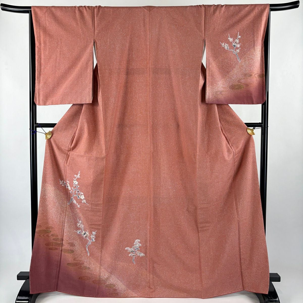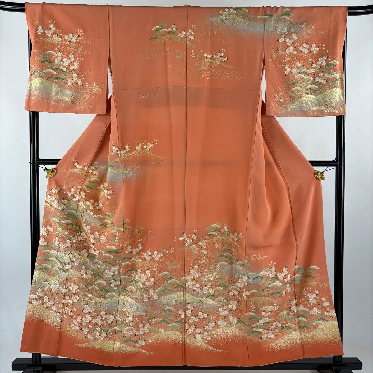 訪問着 身丈167.5cm 裄丈68cm L 袷 桜 若松 金銀彩 ぼかし サーモンピンク 正絹 秀品