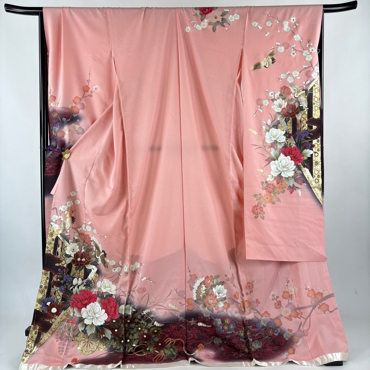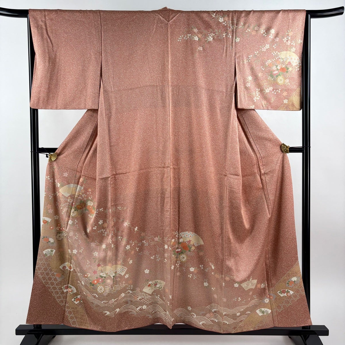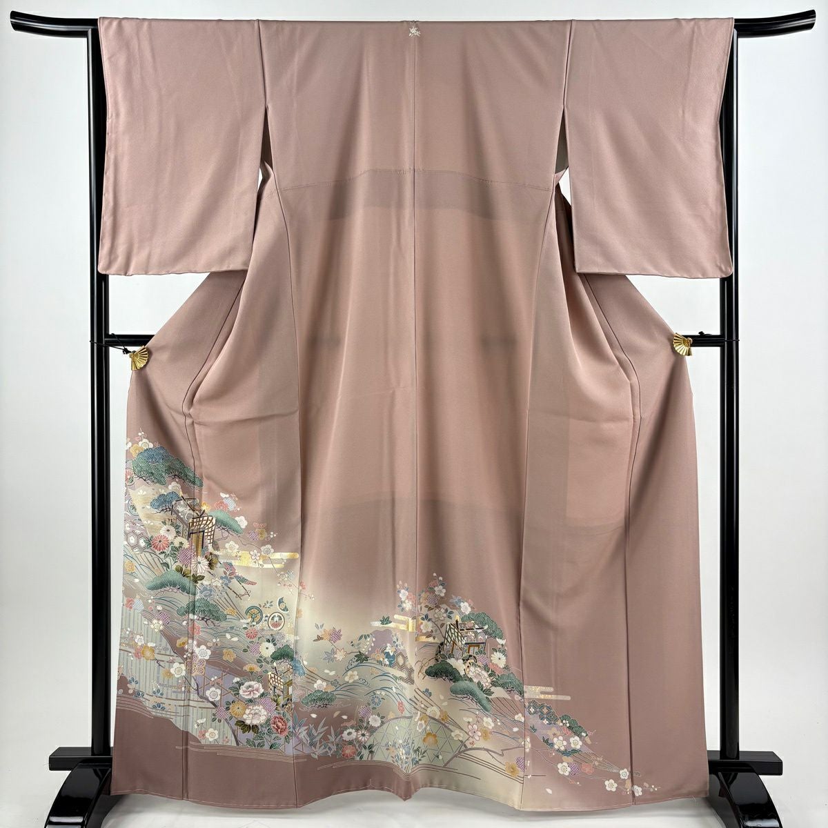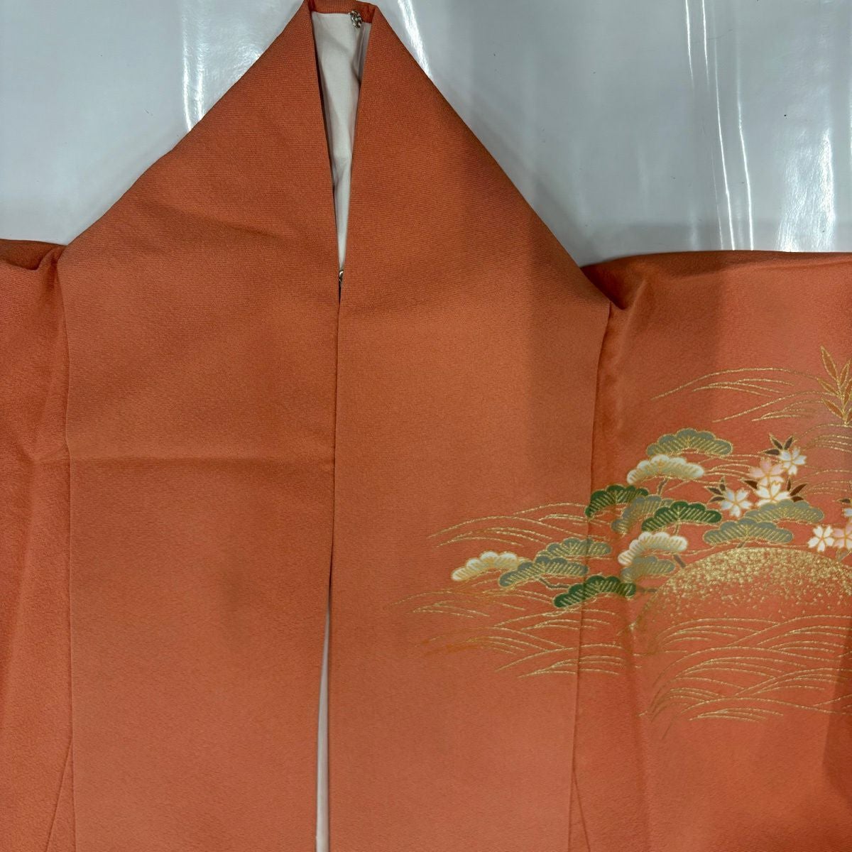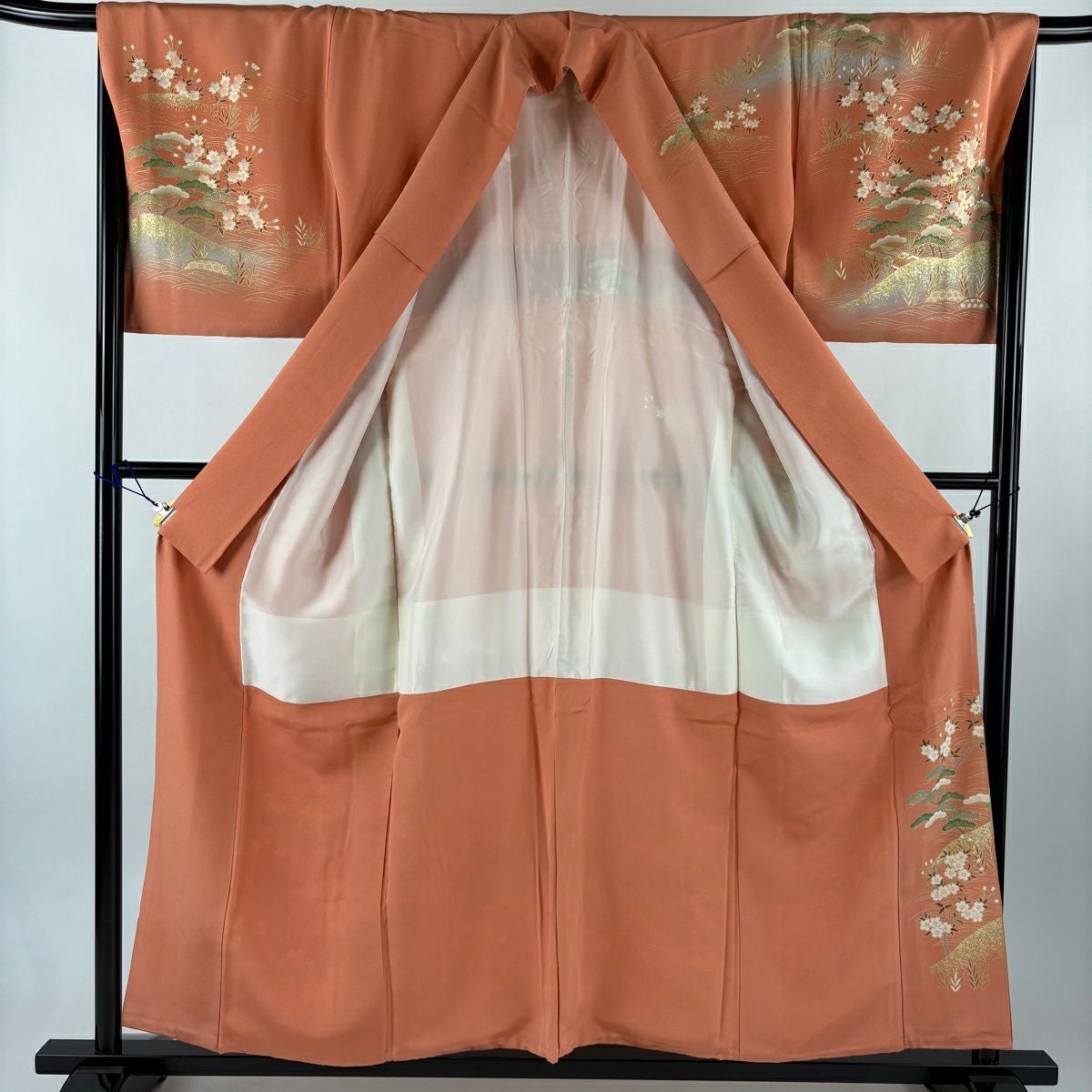 訪問着 身丈167.5cm 裄丈68cm L 袷 桜 若松 金銀彩 ぼかし サーモンピンク 正絹 秀品
