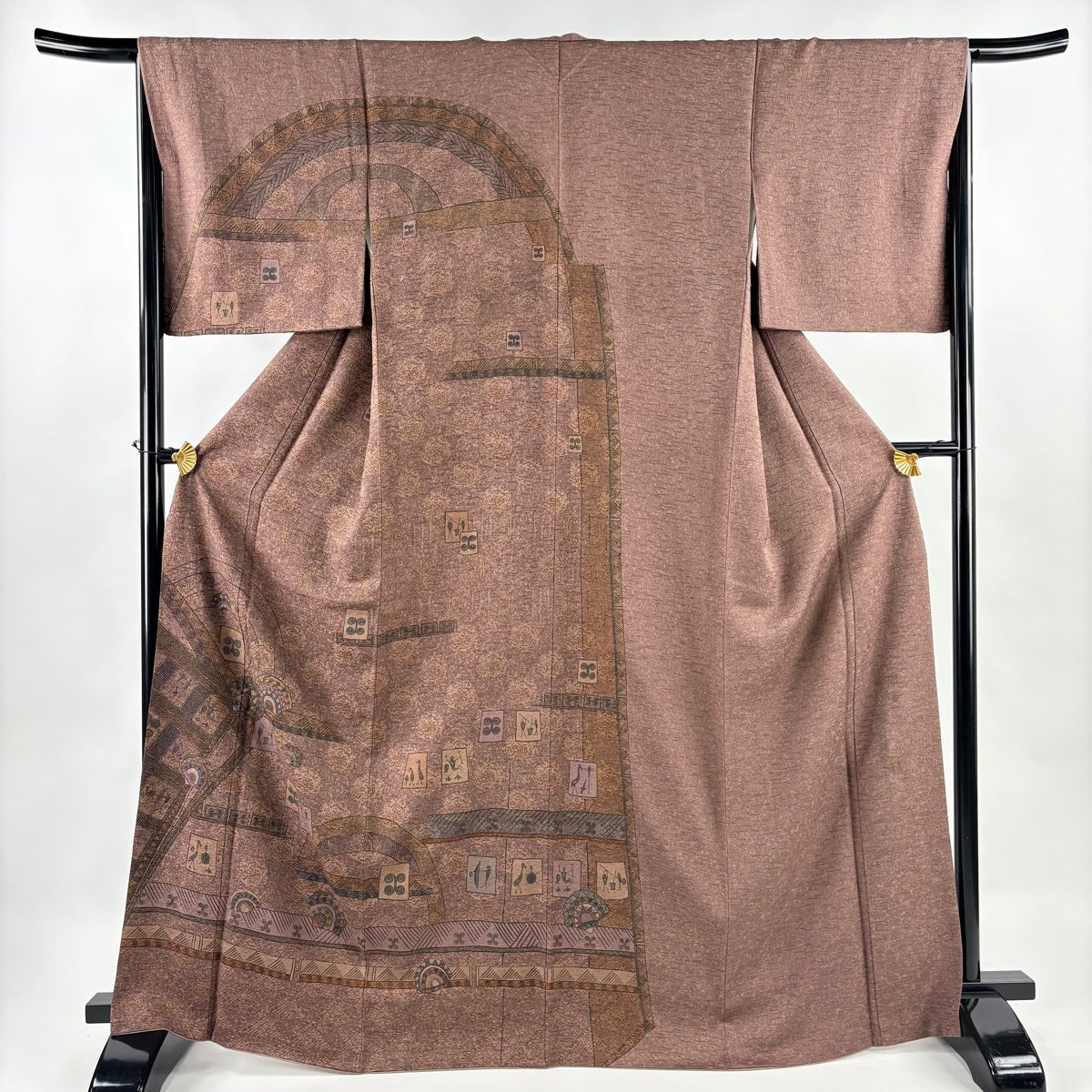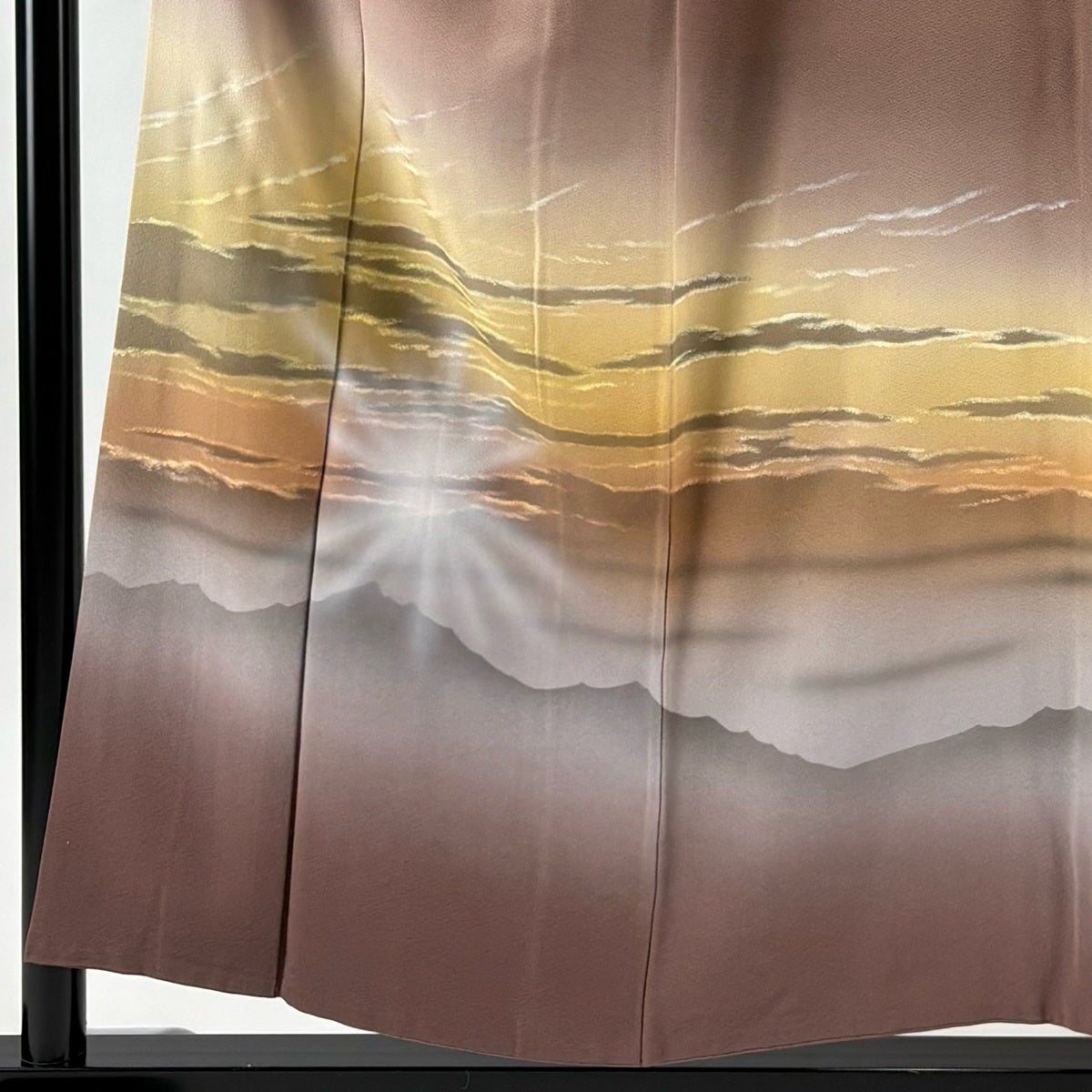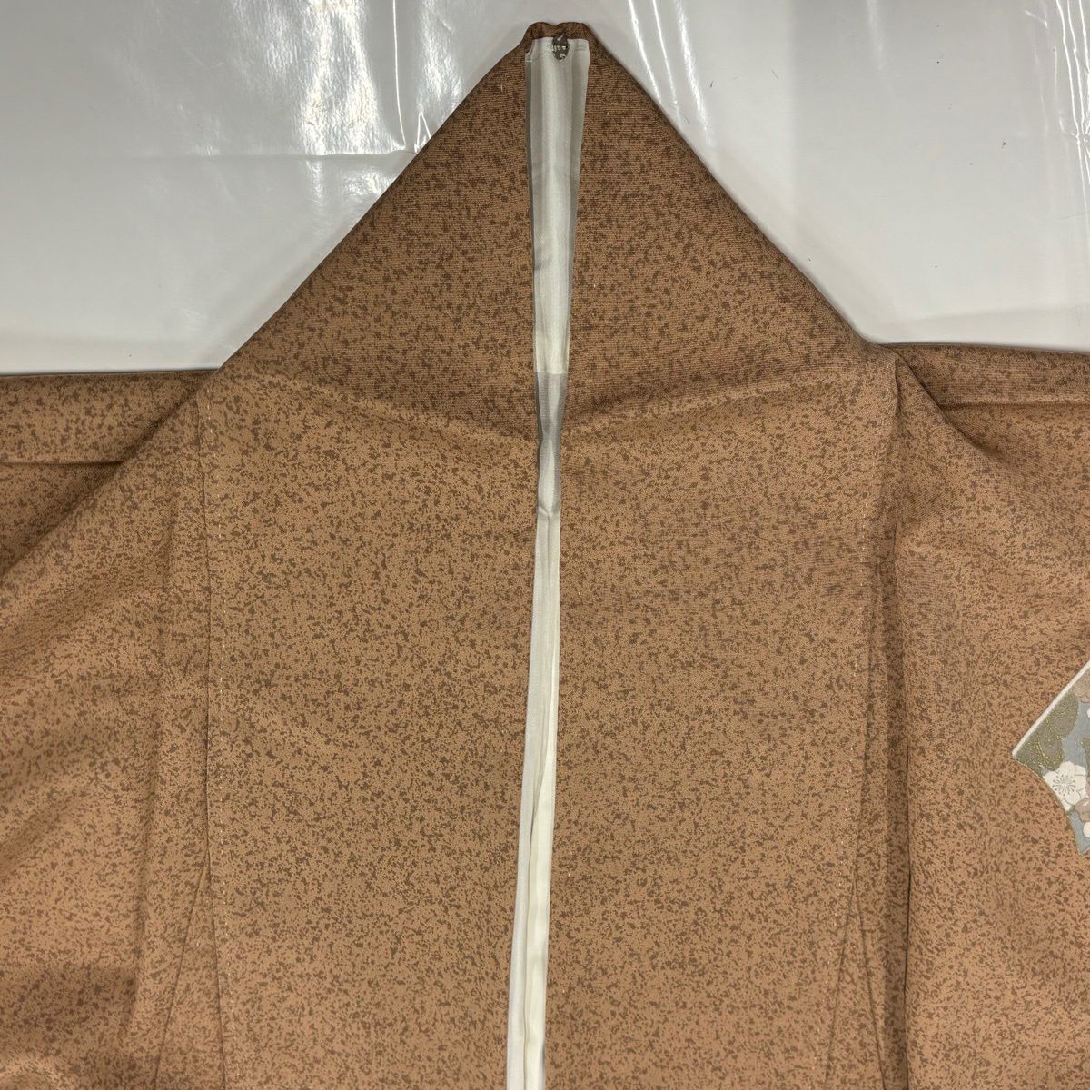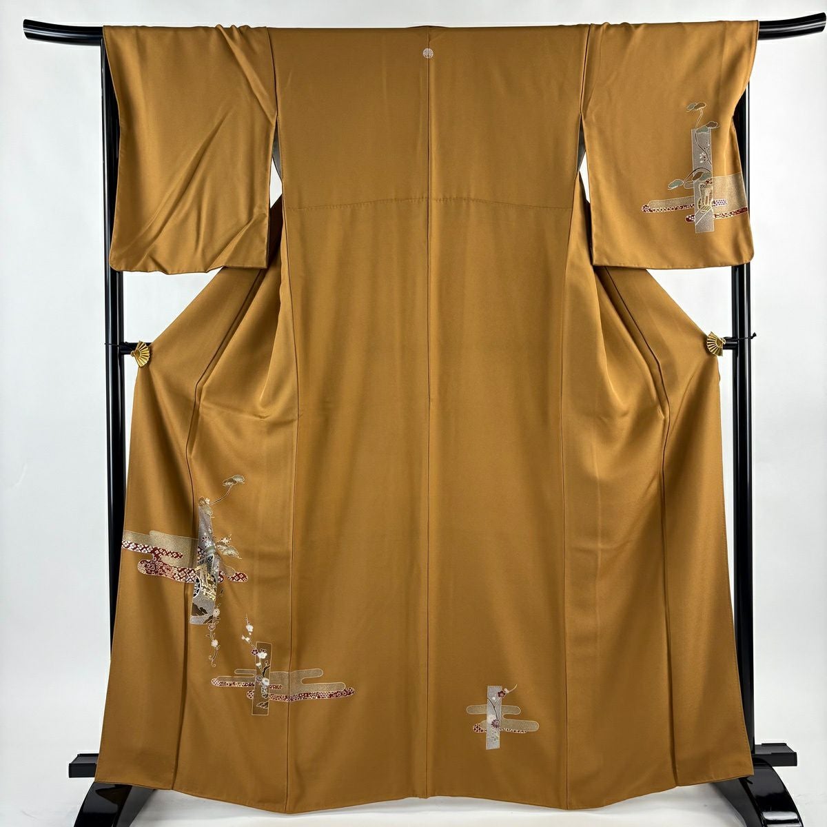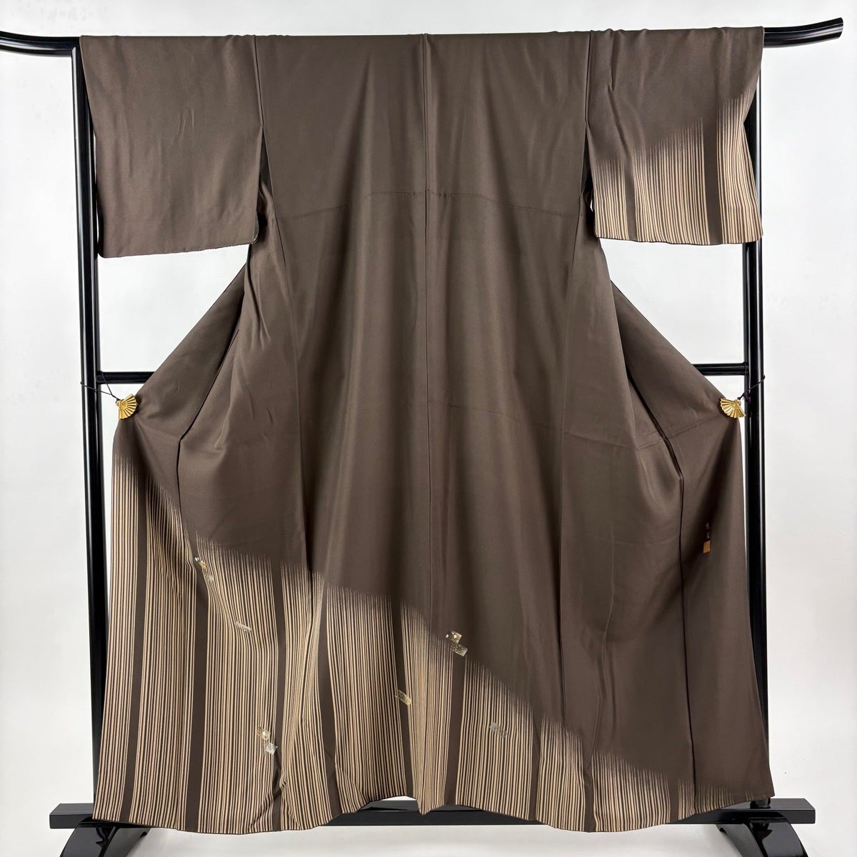 【美品】 付下げ 身丈165.5cm 裄丈67.5cm L 袷 短冊 ヱ霞 金銀彩 茶色 正絹 秀品 一つ紋