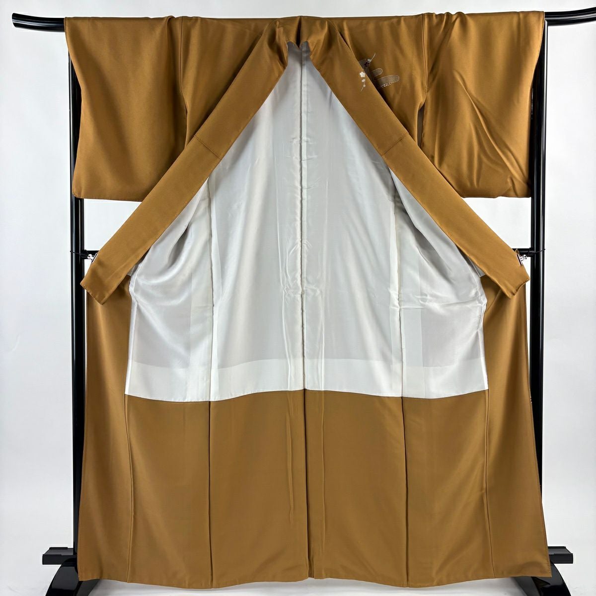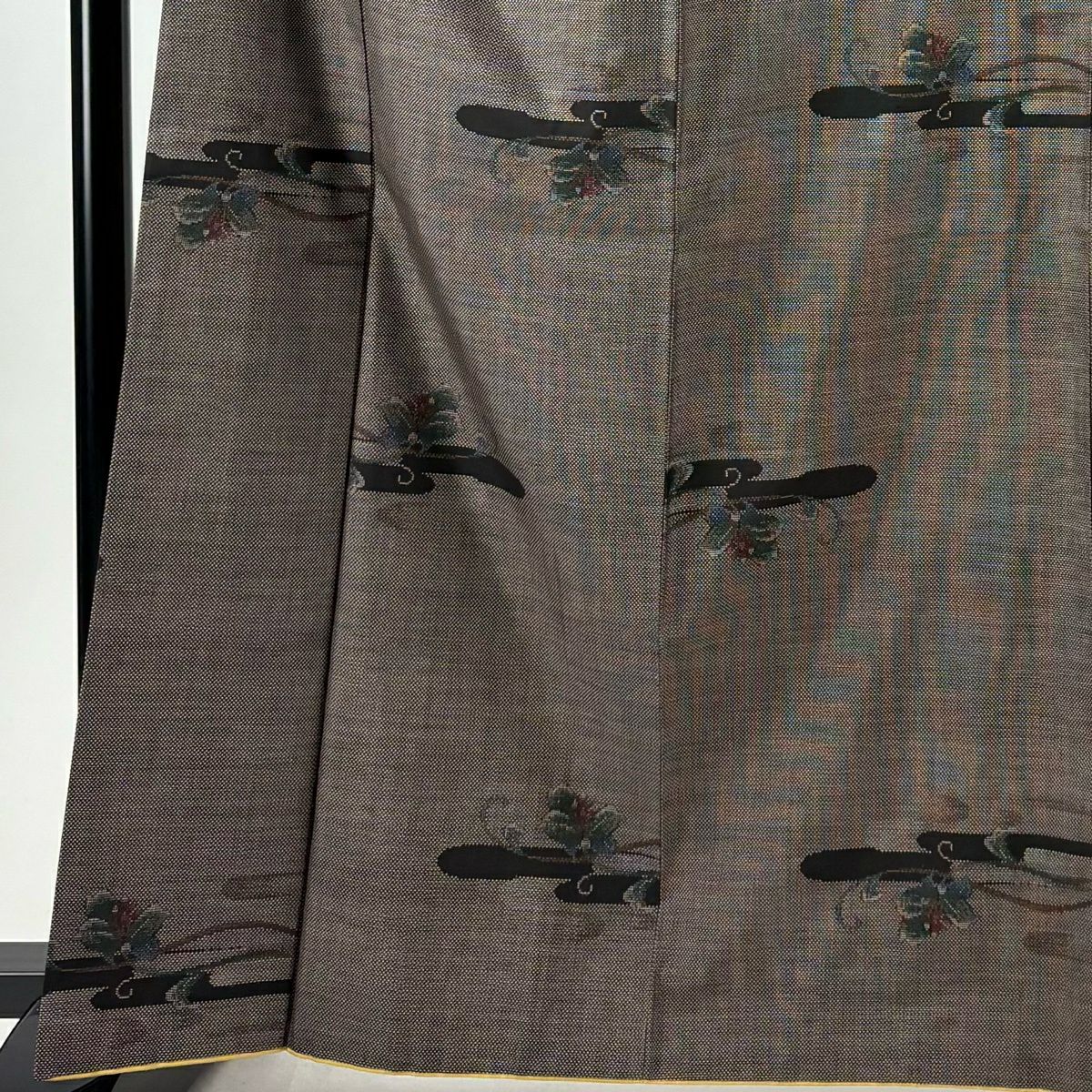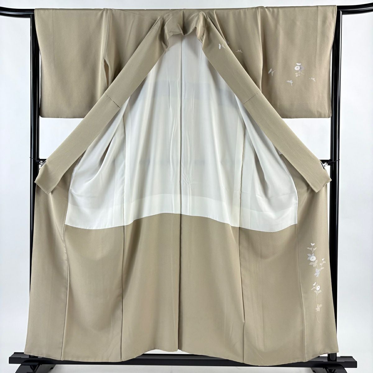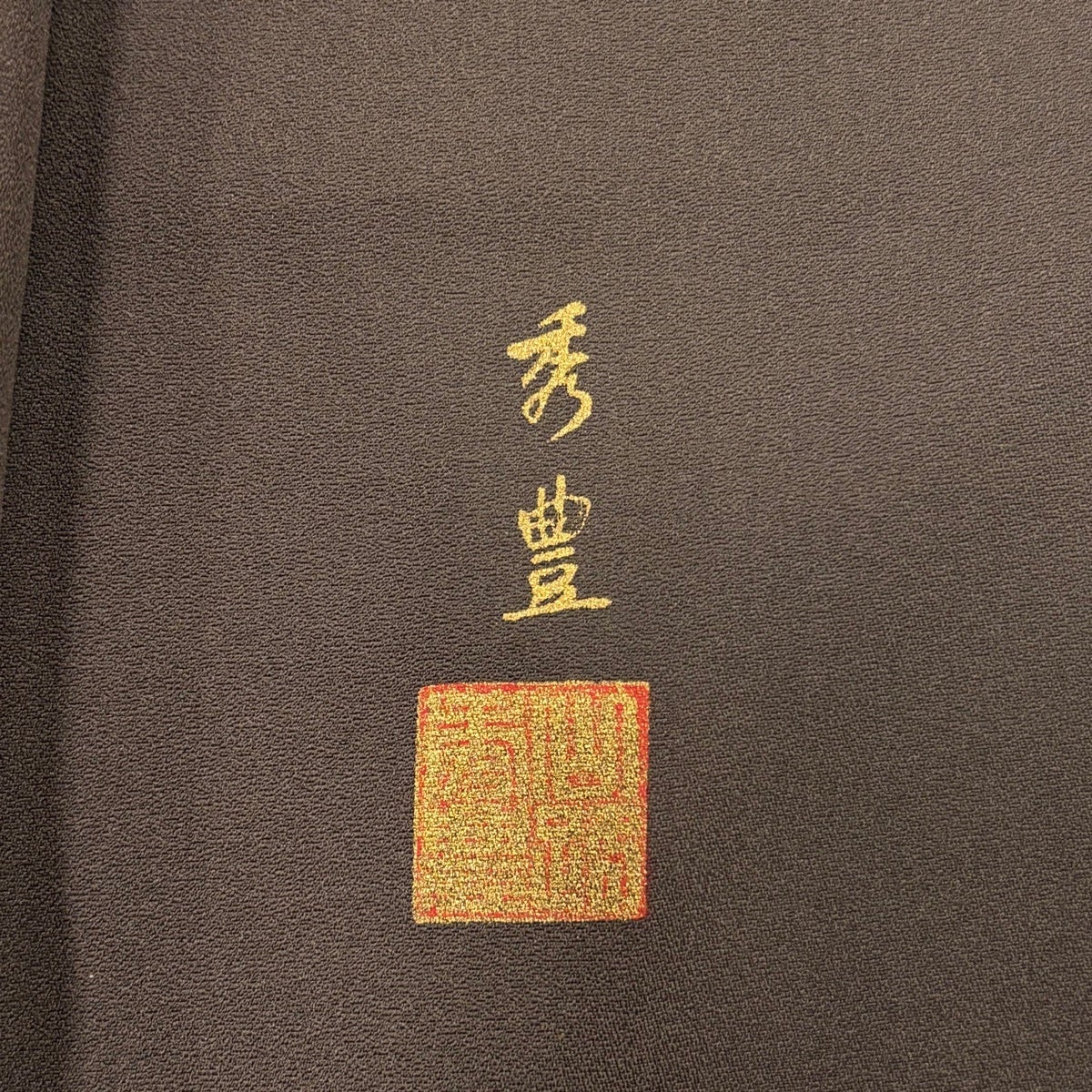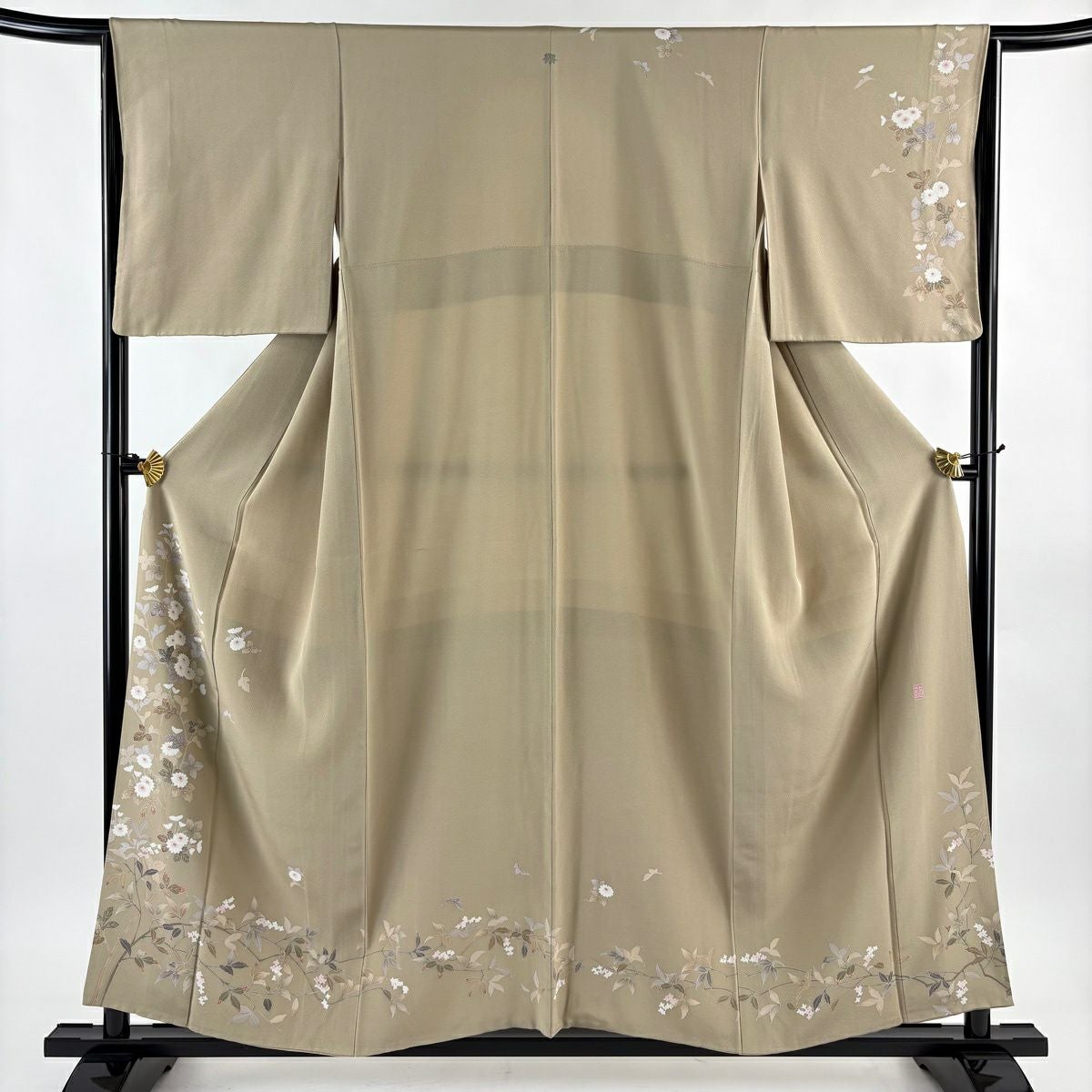 【美品】 訪問着 身丈157cm 裄丈64.5cm M 袷 落款あり 菊 枝花 灰茶 正絹 秀品 一つ紋