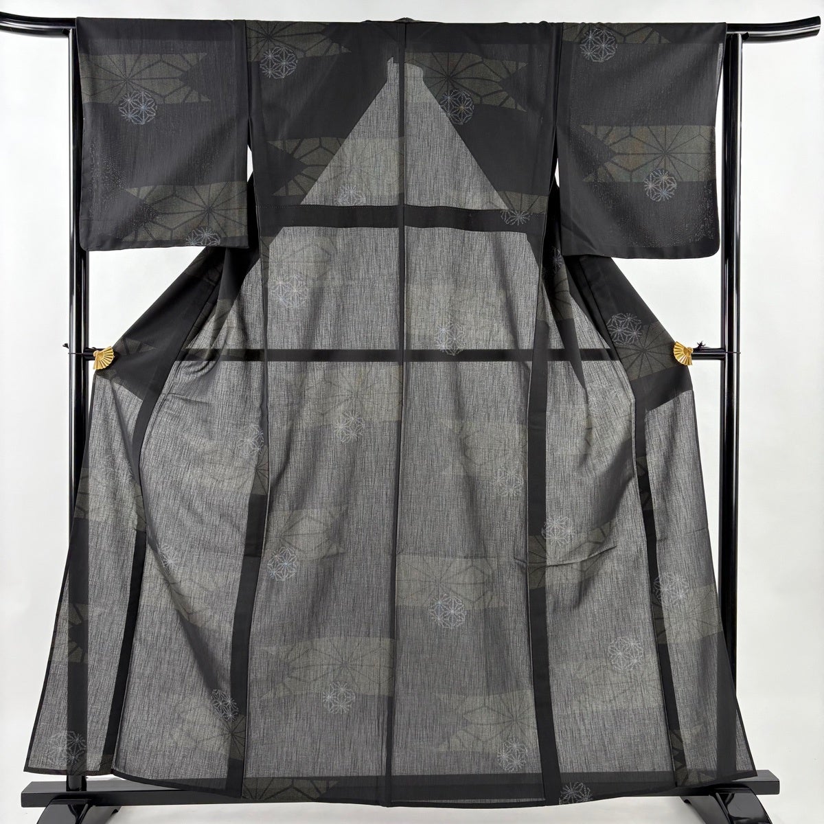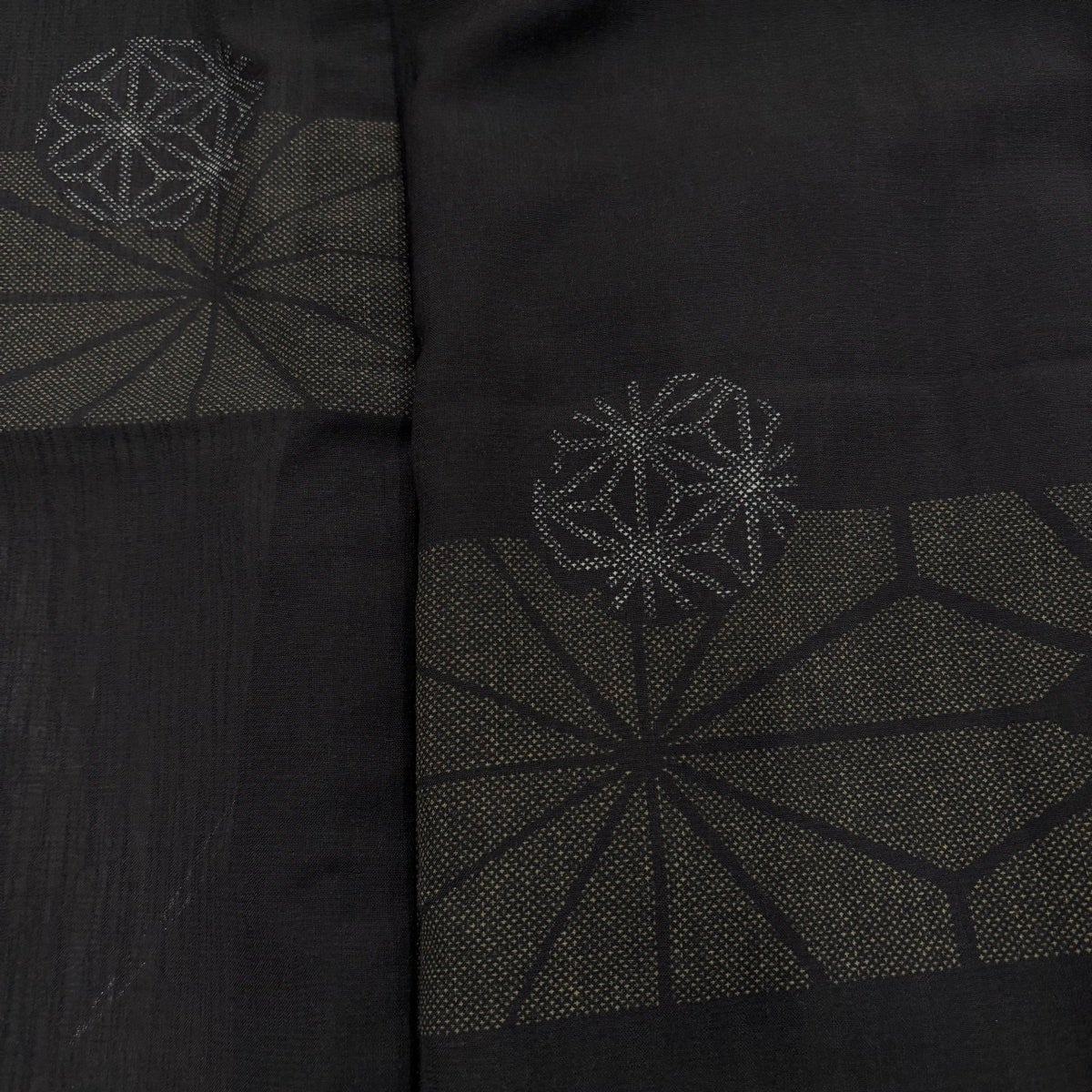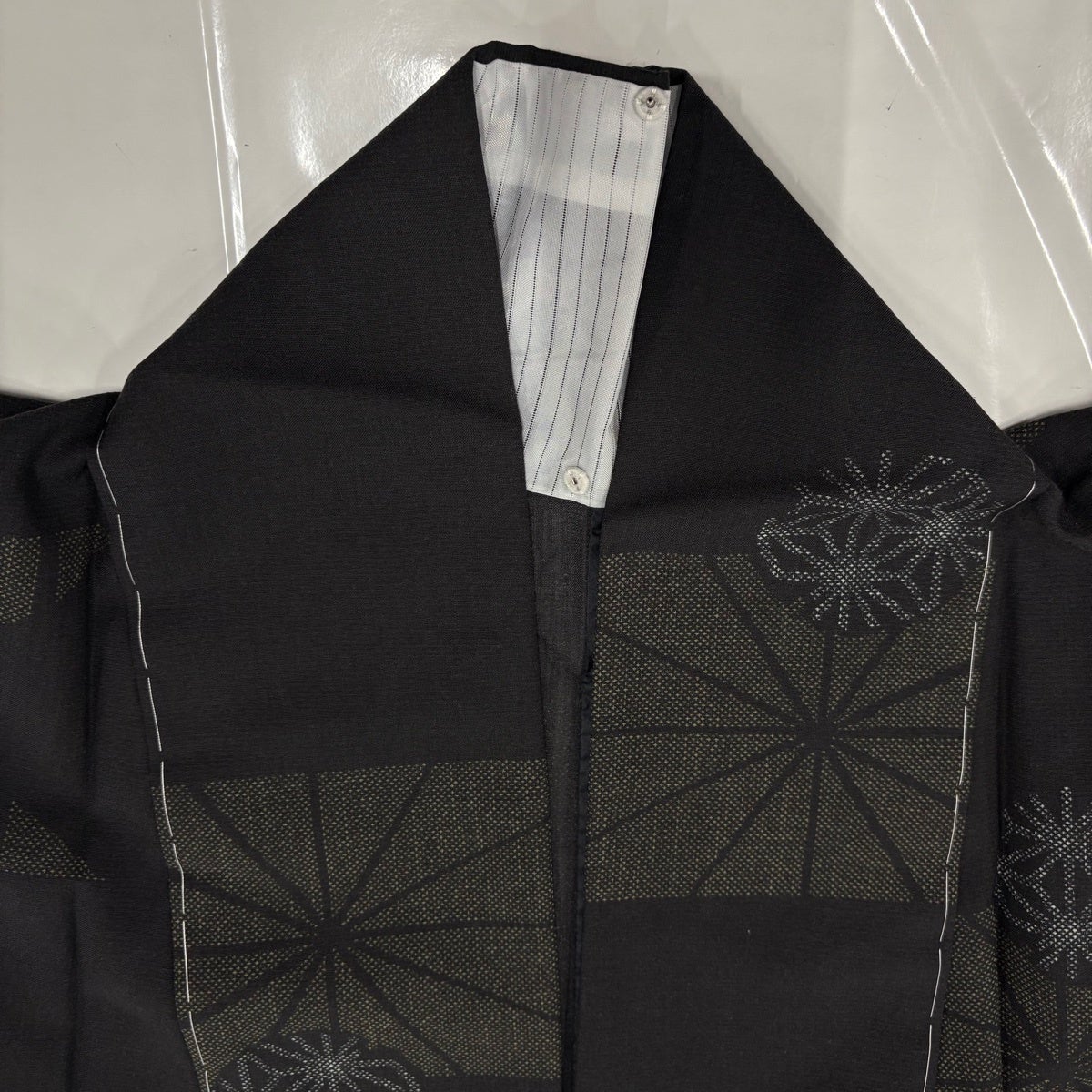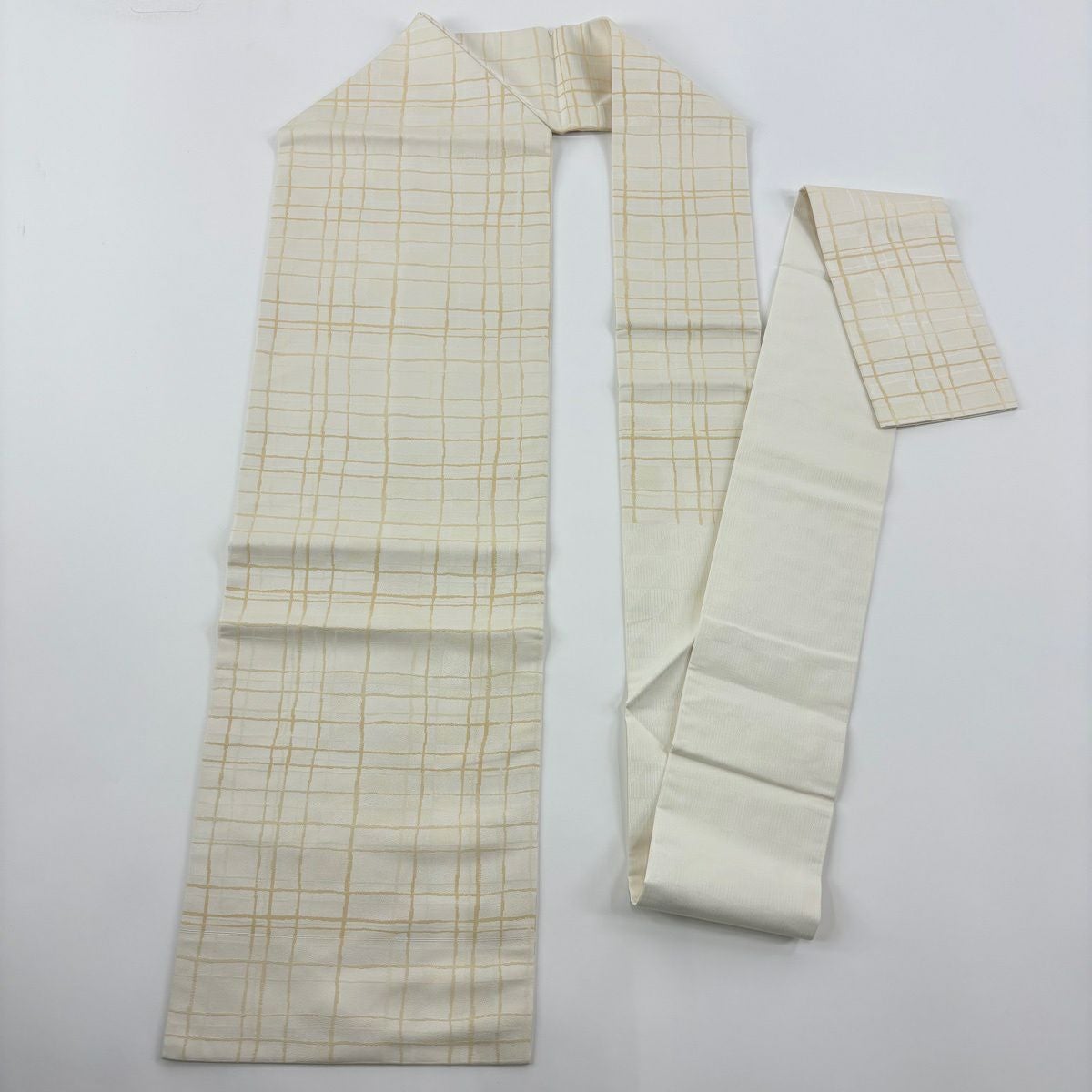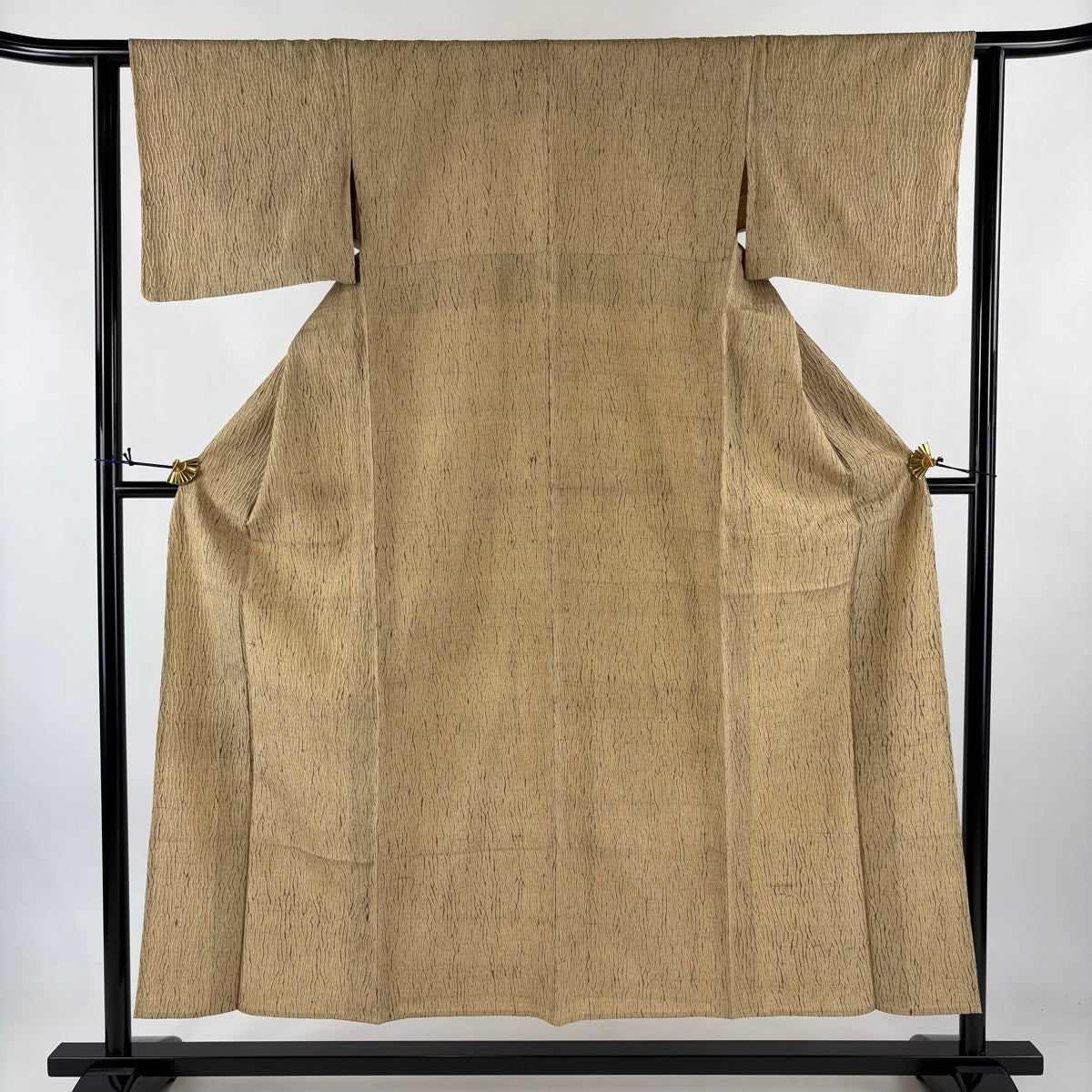 小紋 身丈167cm 裄丈66cm M 袷 名古屋帯セット 紬地 幾何学模様 縞 絞り 灰茶 正絹 秀品
