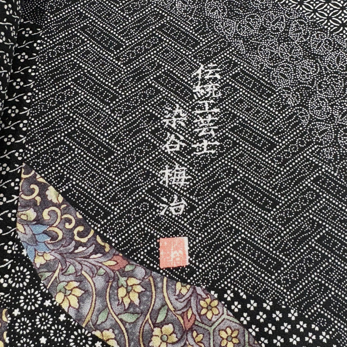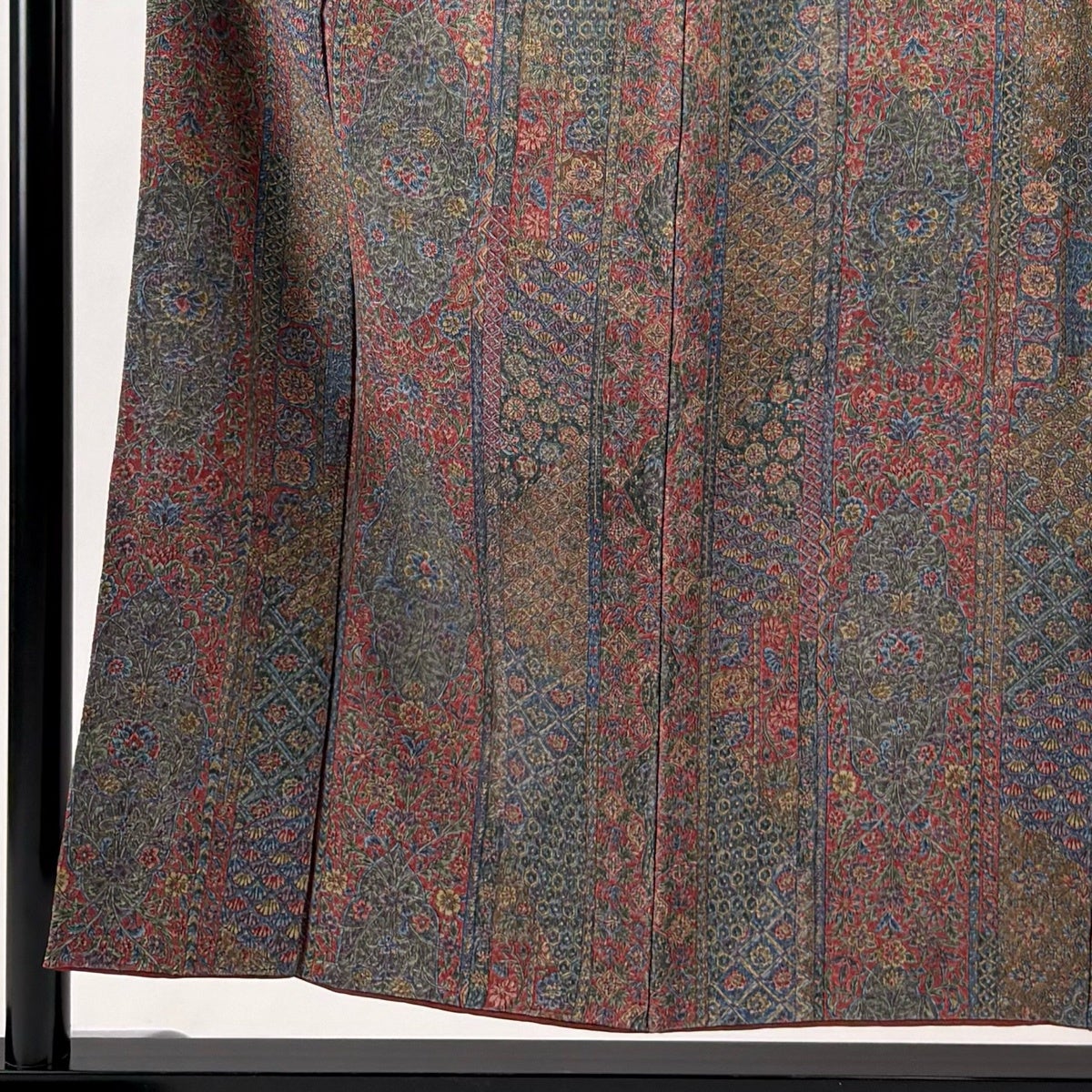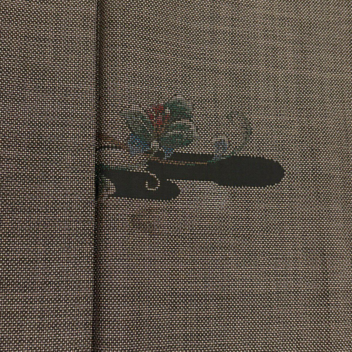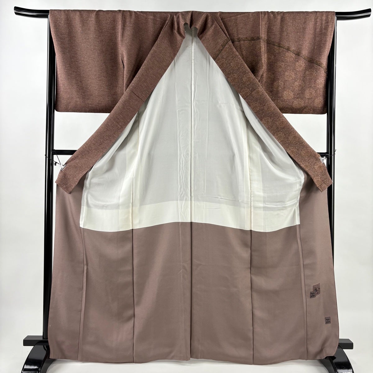 【美品】 小紋 身丈158cm 裄丈63cm S 袷 二代目 更甚 落款あり 更紗 草花 茶色 正絹 秀品