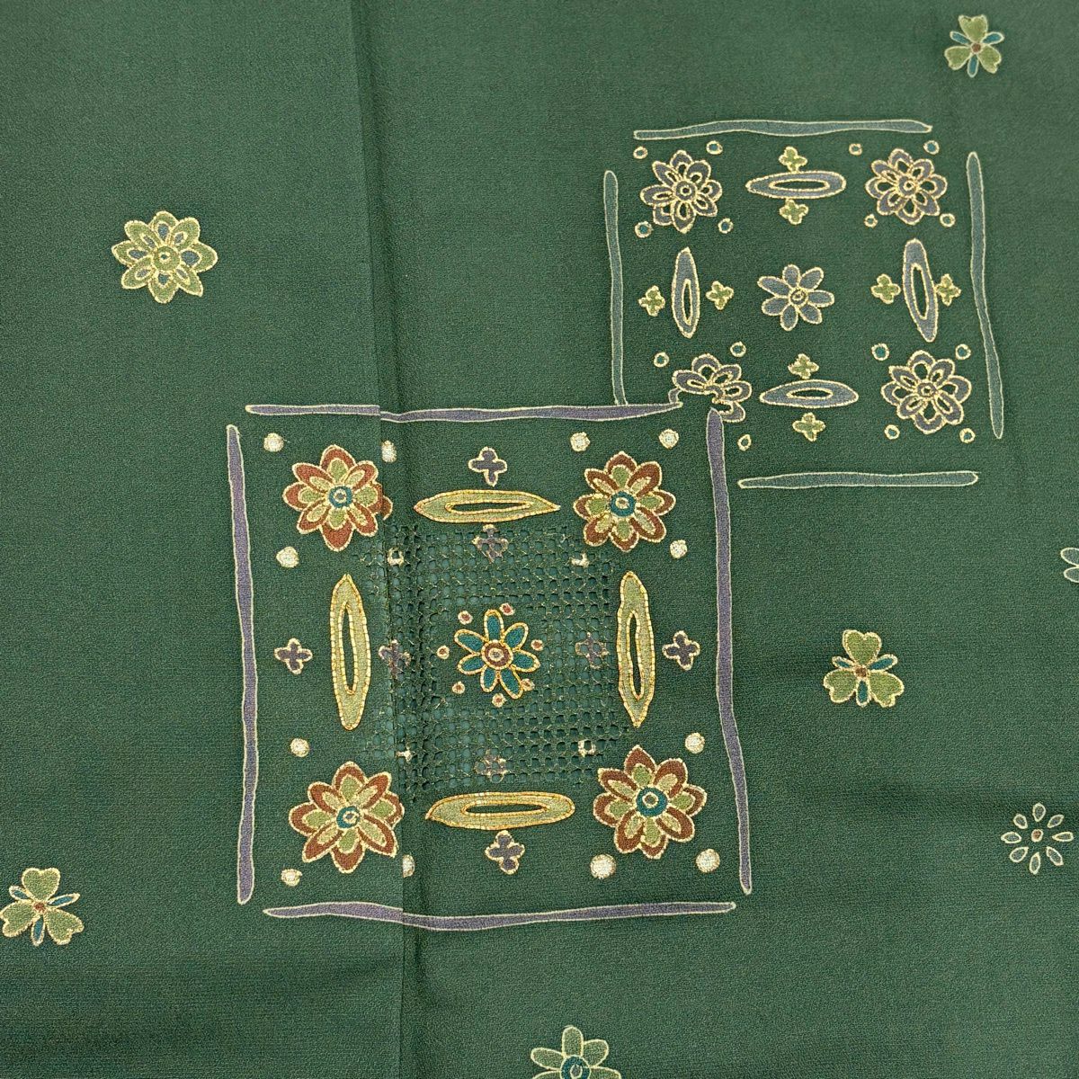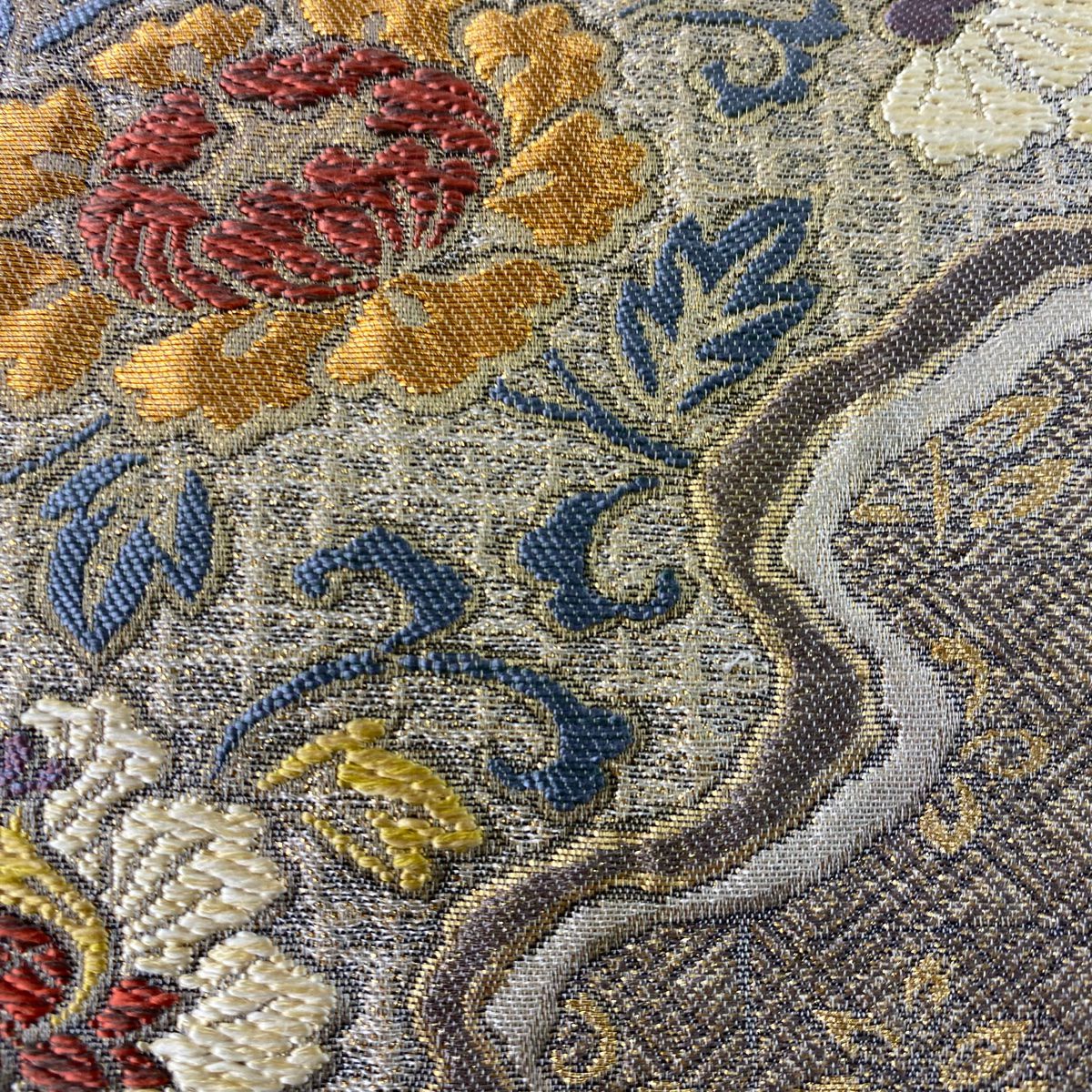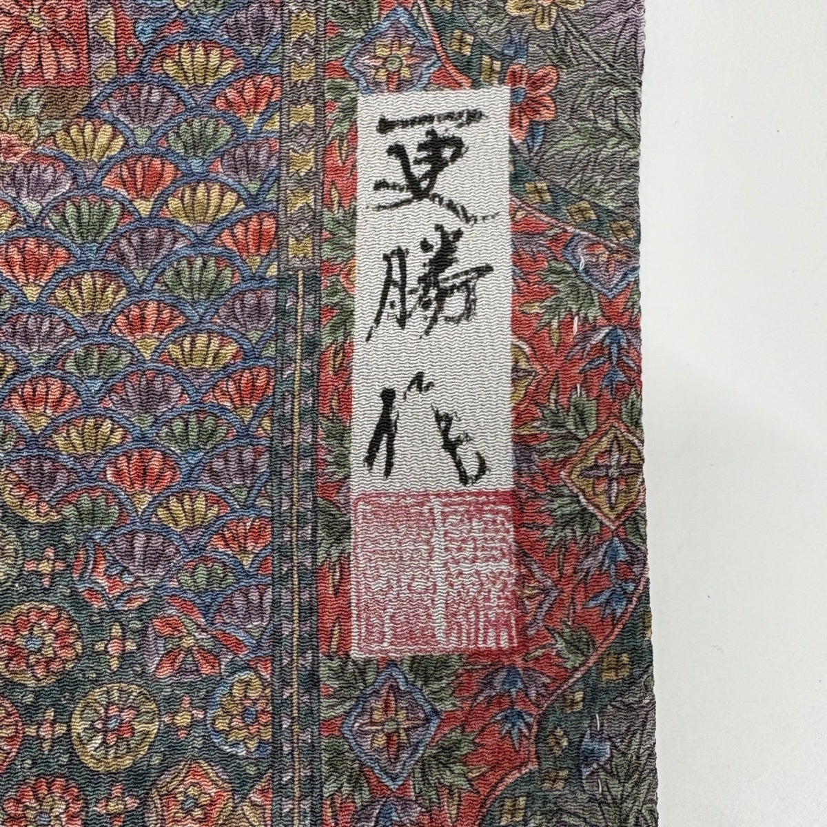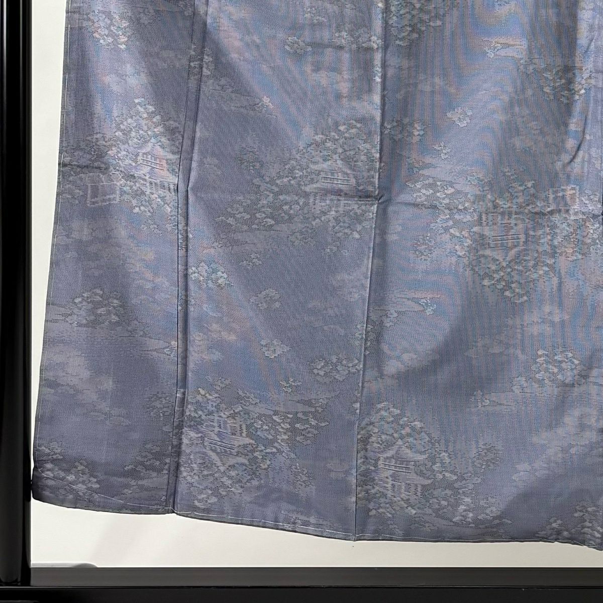 付下げ 身丈158cm 裄丈64.5cm M 袷 鈴乃屋 花 色紙 刺繍 金糸 灰緑 正絹 秀品 一つ紋