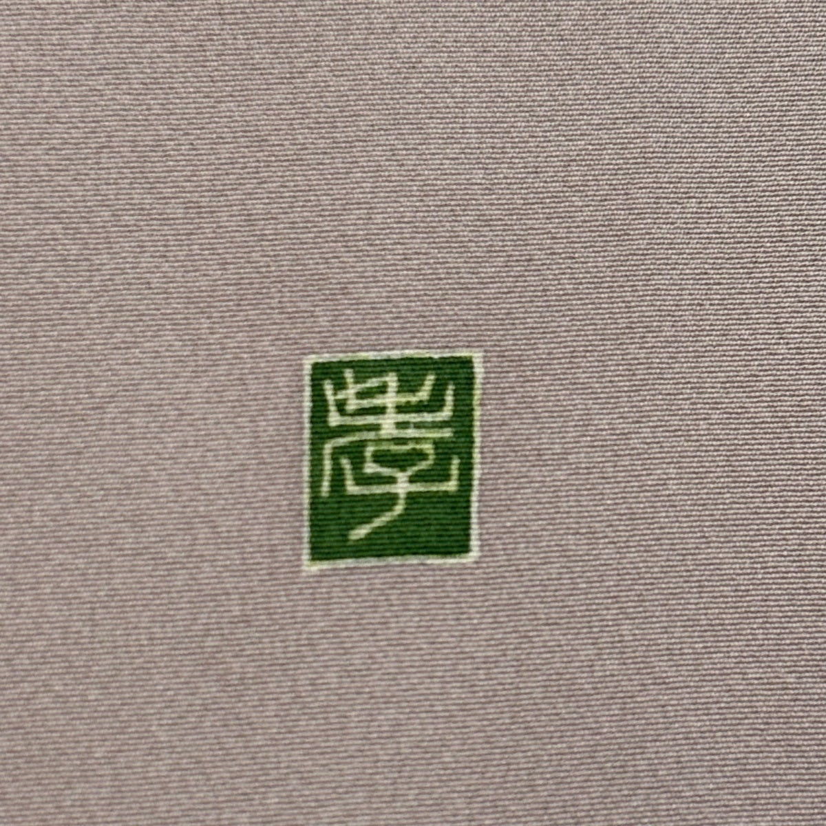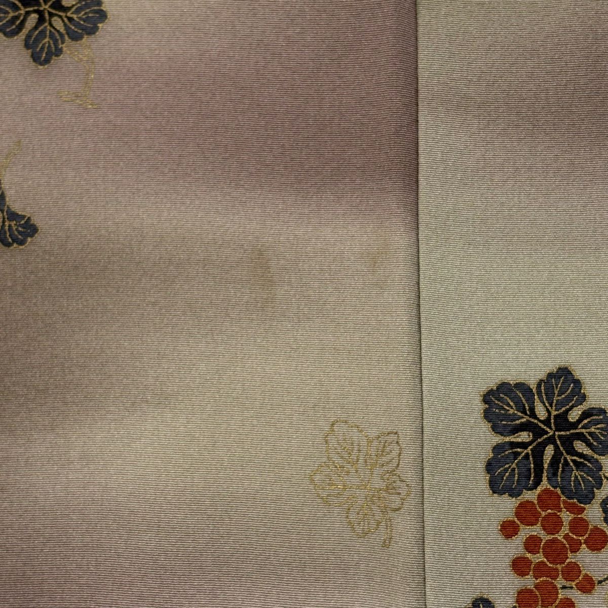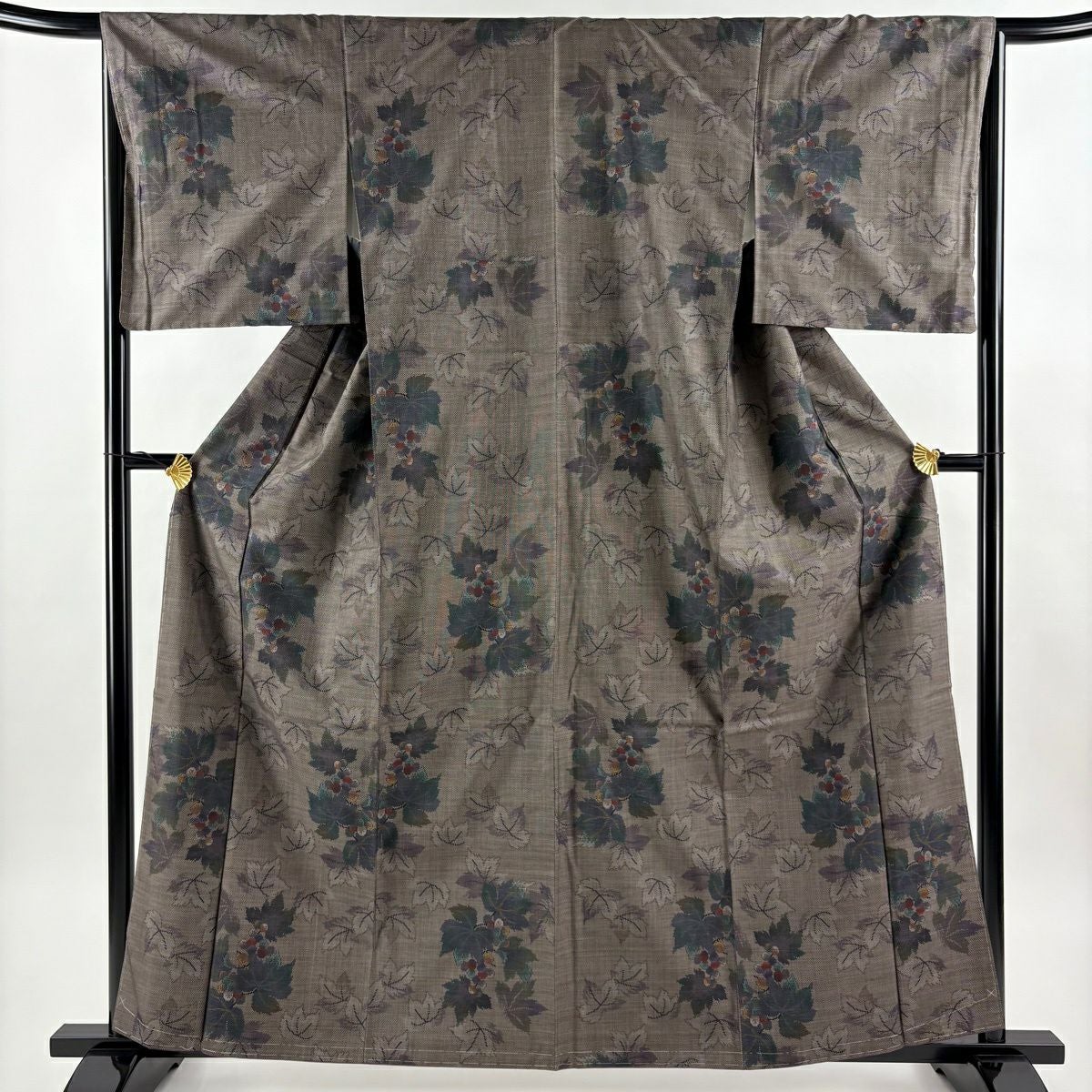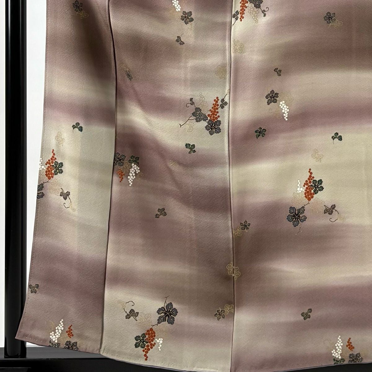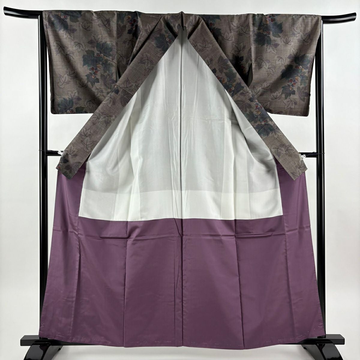 小紋 身丈159cm 裄丈63cm S 袷 千地泰弘 落款あり 葡萄 霞 金彩 ぼかし 灰紫 正絹 秀品