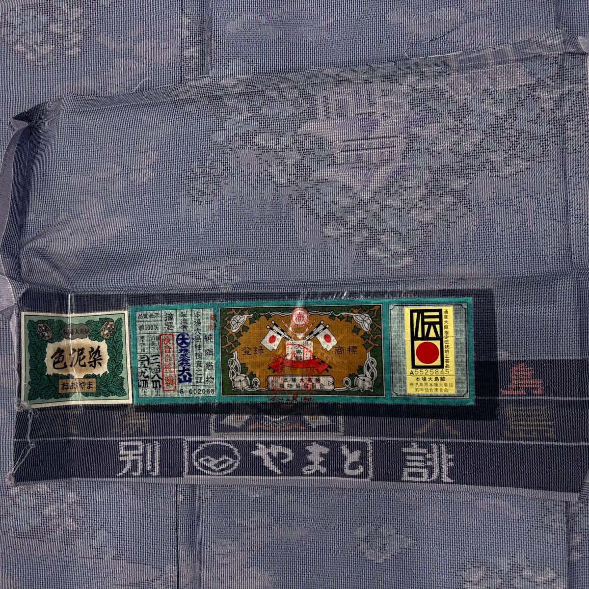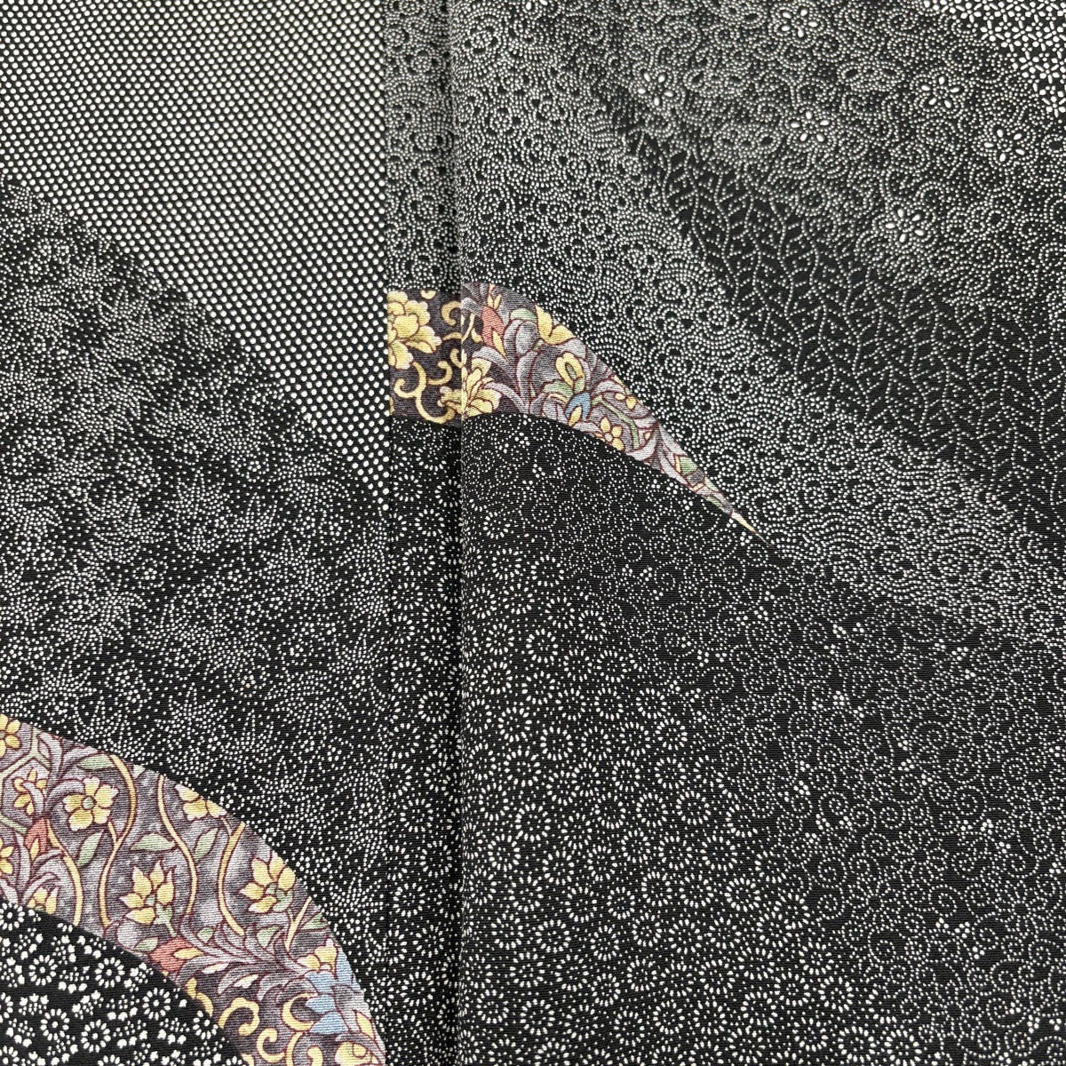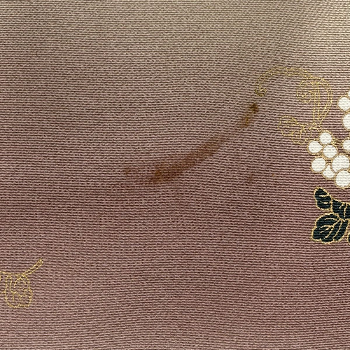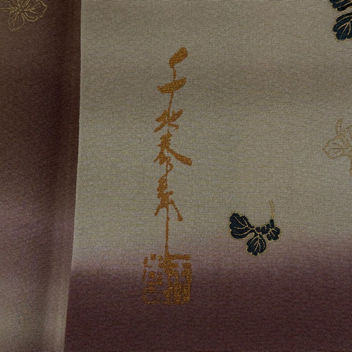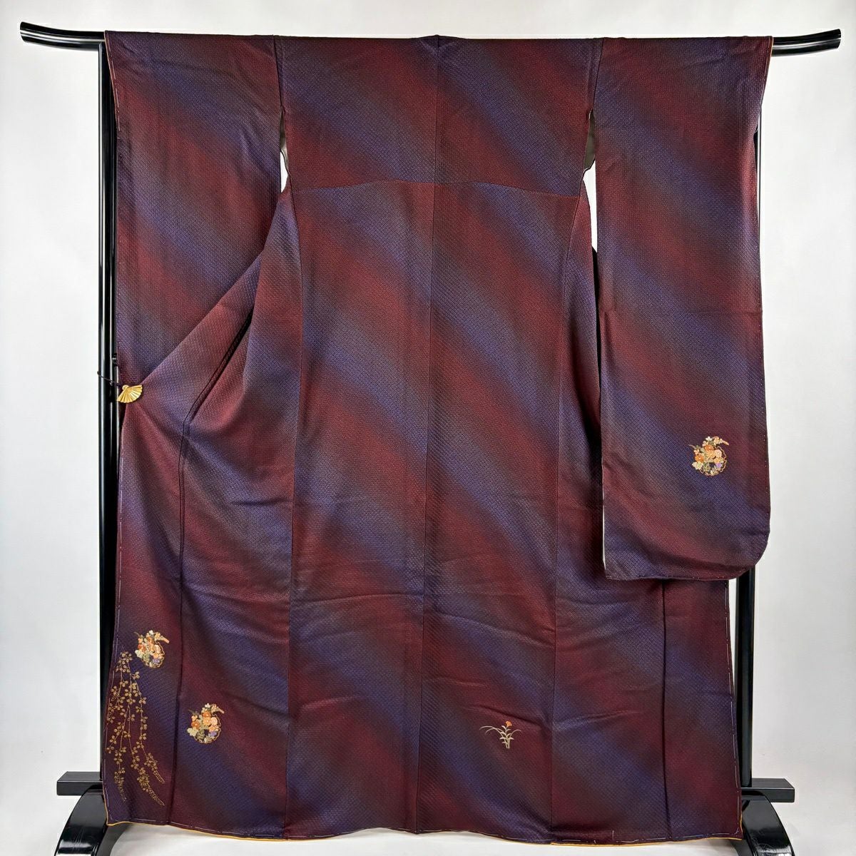 小紋 身丈159cm 裄丈63cm S 袷 千地泰弘 落款あり 葡萄 霞 金彩 ぼかし 灰紫 正絹 秀品