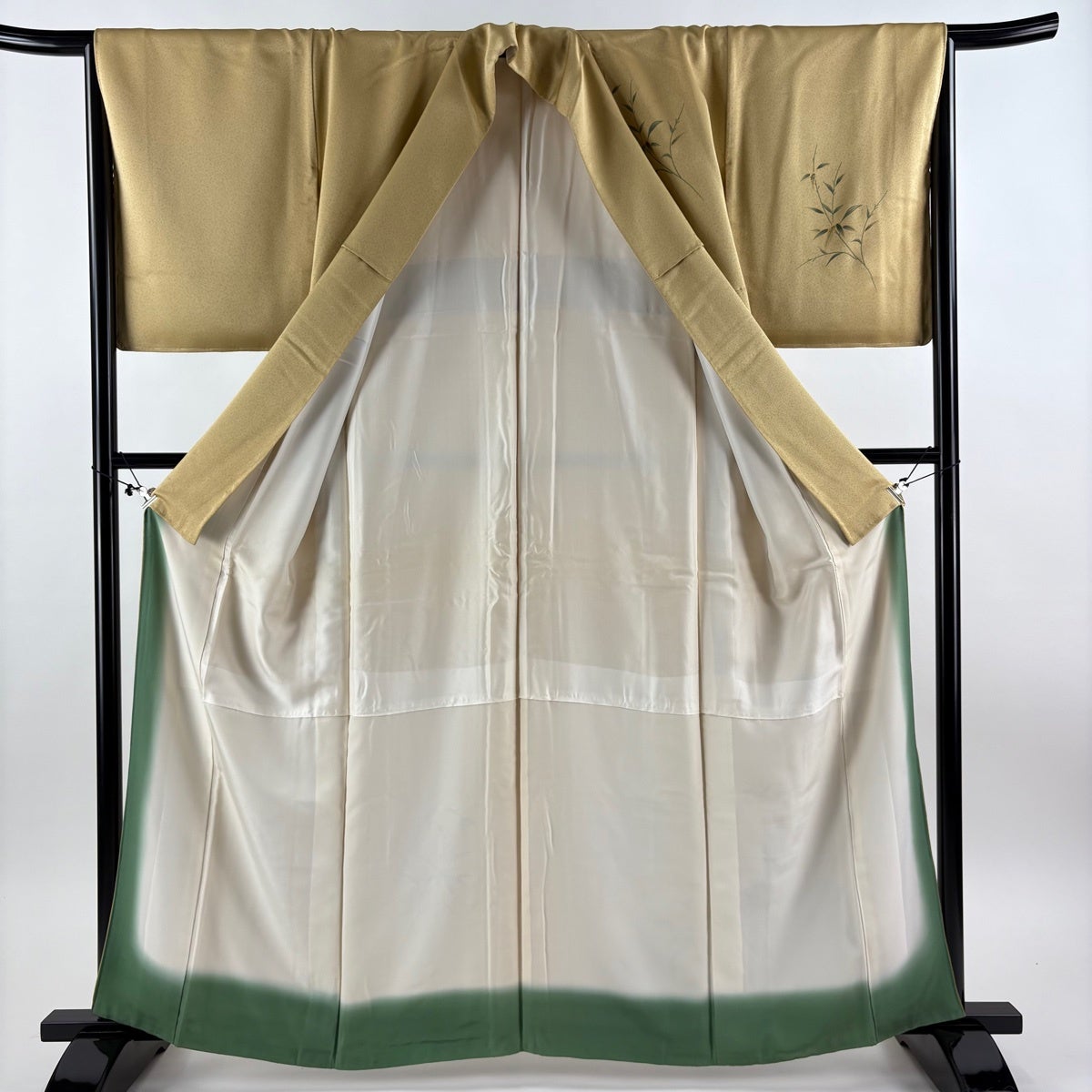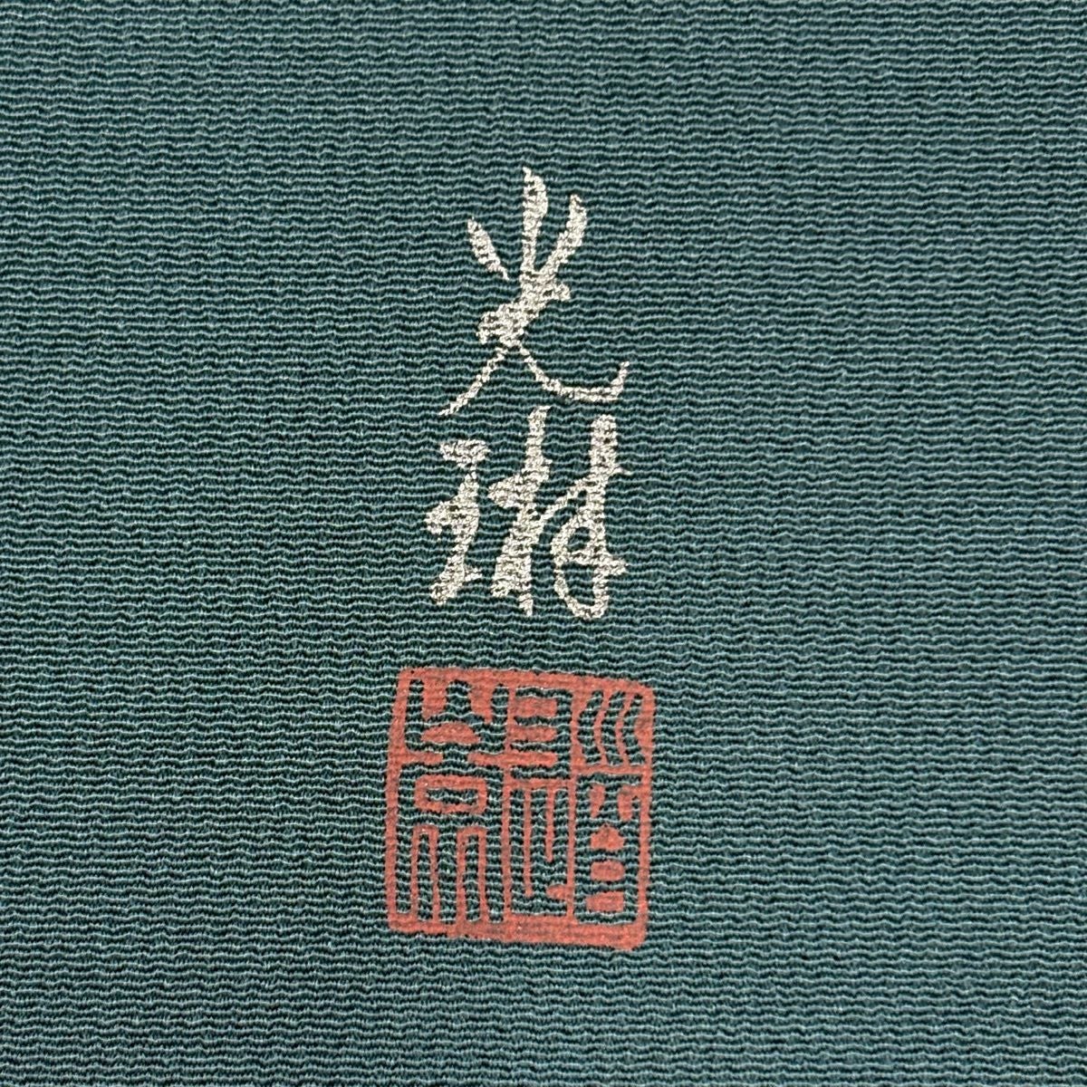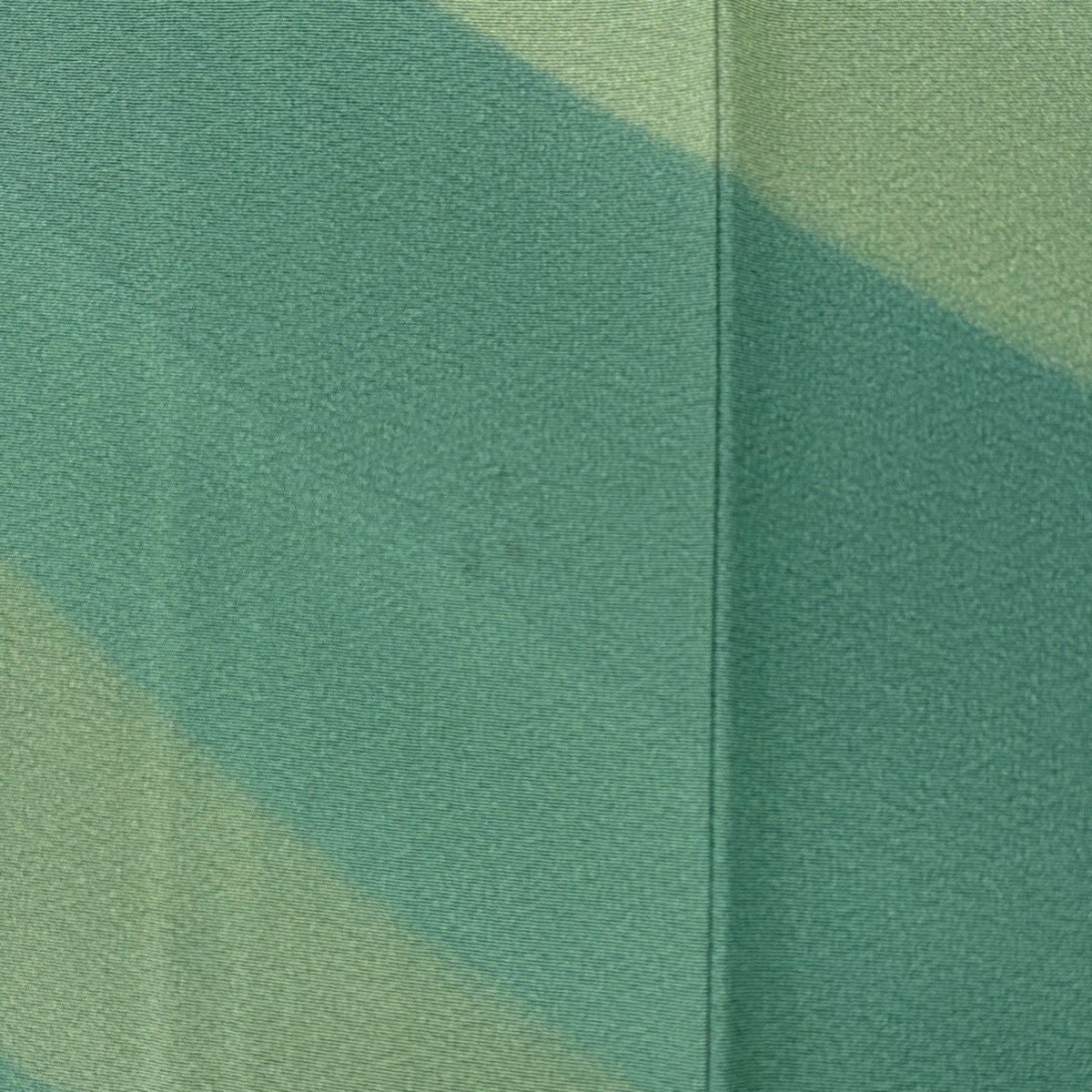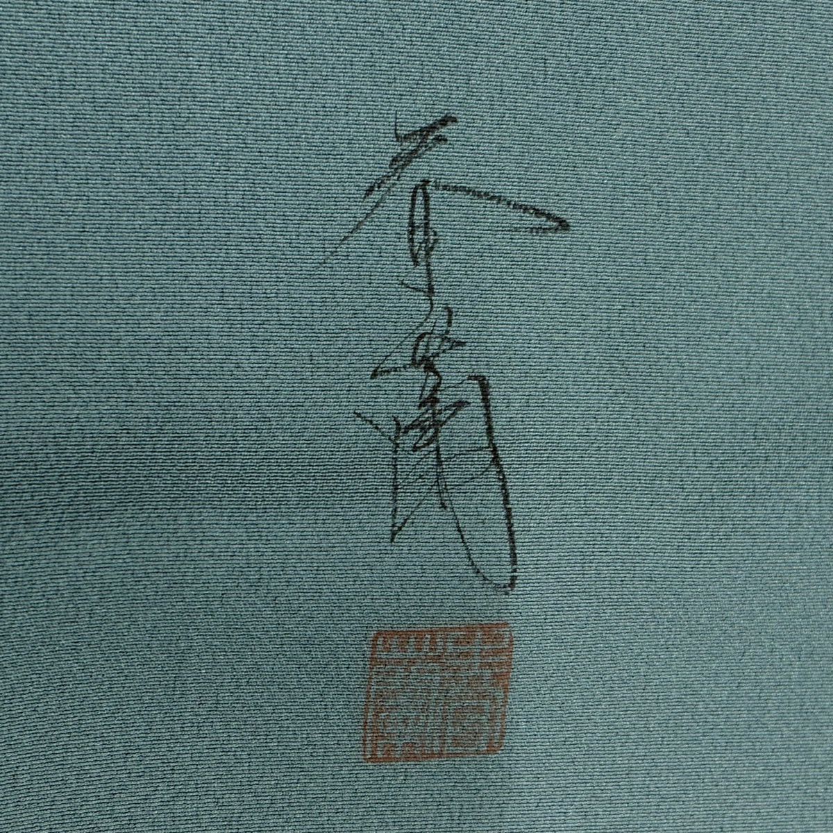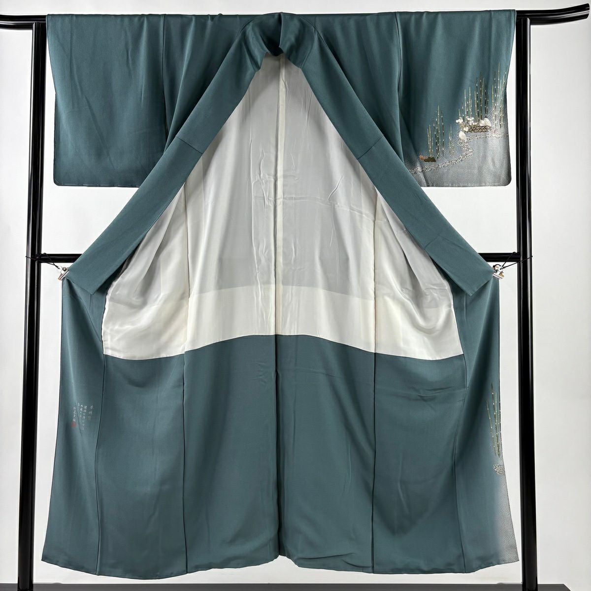 付下げ 身丈152cm 裄丈63cm S 袷 松尾光琳 落款あり 鳥 木賊 銀彩 ぼかし 緑 正絹 秀品