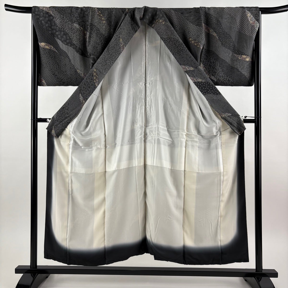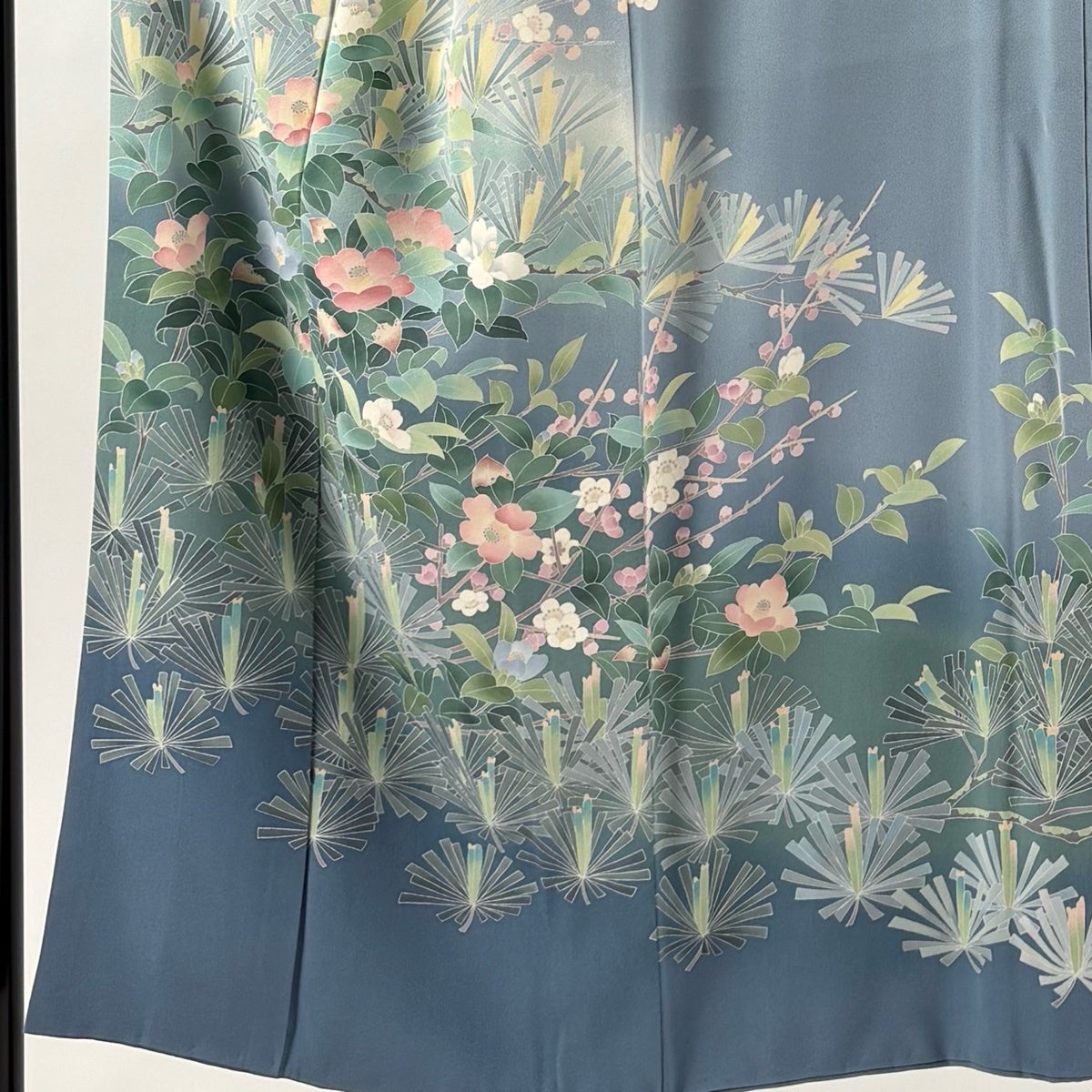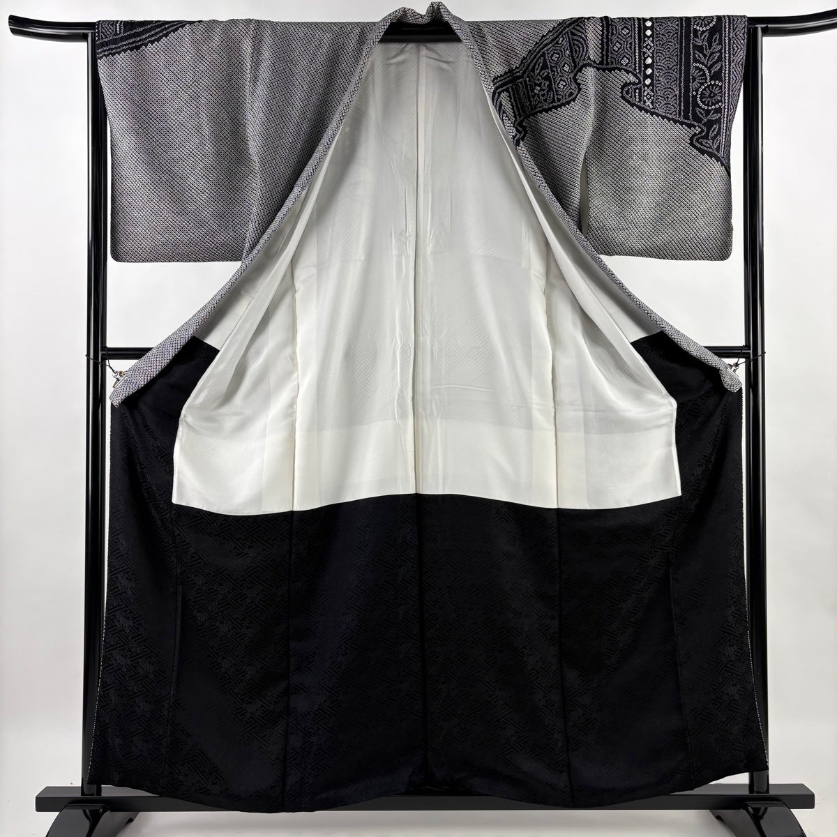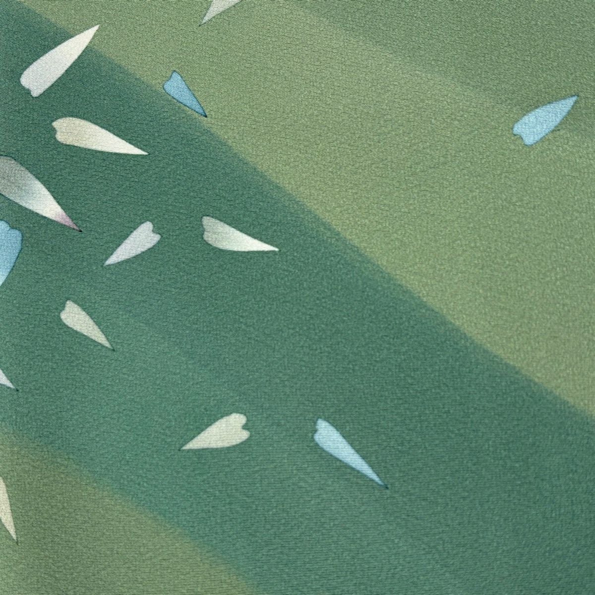 訪問着 身丈155.5cm 裄丈63.5cm S 袷 落款あり 花びら シルエット ぼかし 灰緑 正絹 秀品