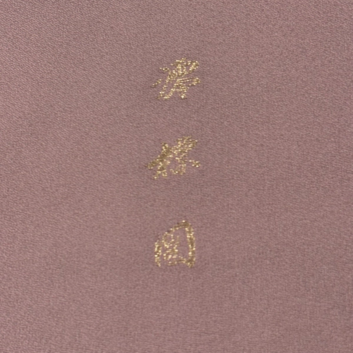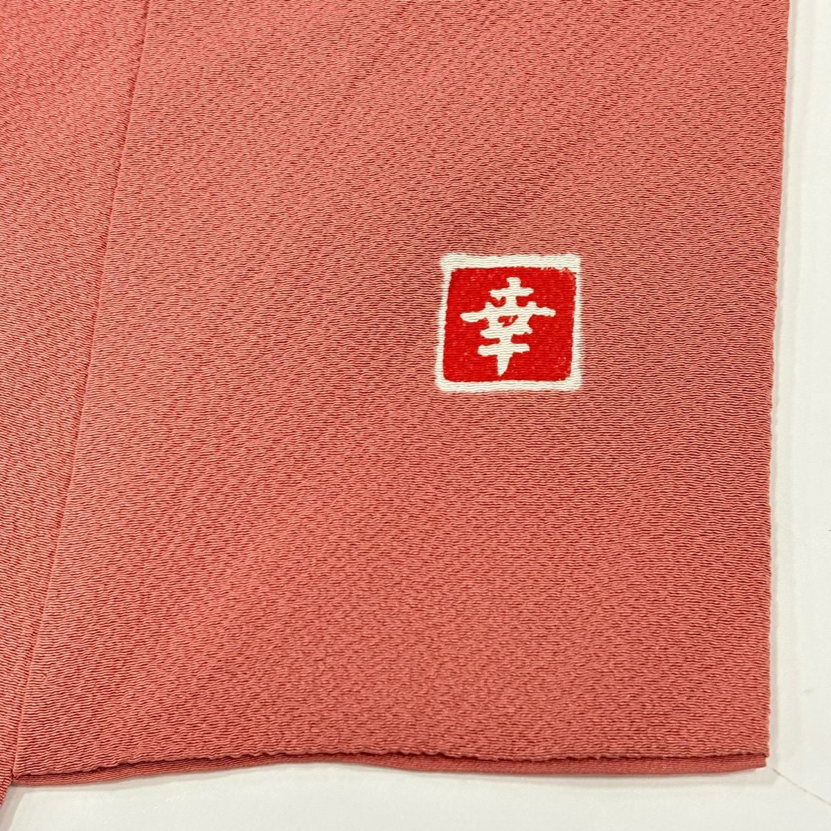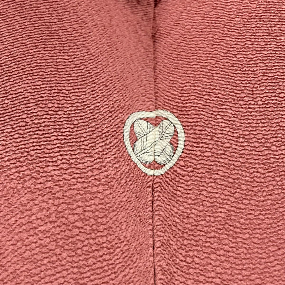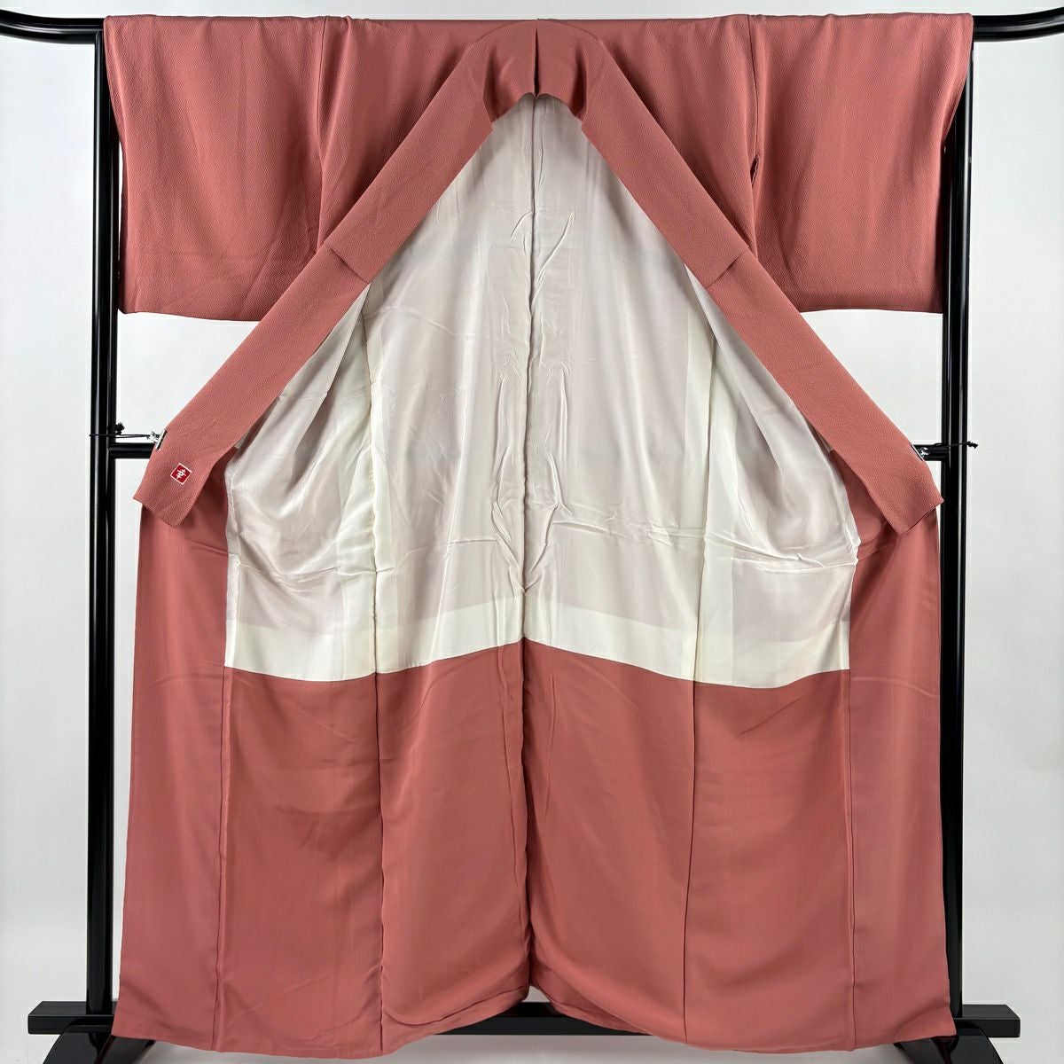 色無地 身丈159.5cm 裄丈67cm M 袷 花井幸子 落款あり 縮緬 ピンク 正絹 秀品 一つ紋