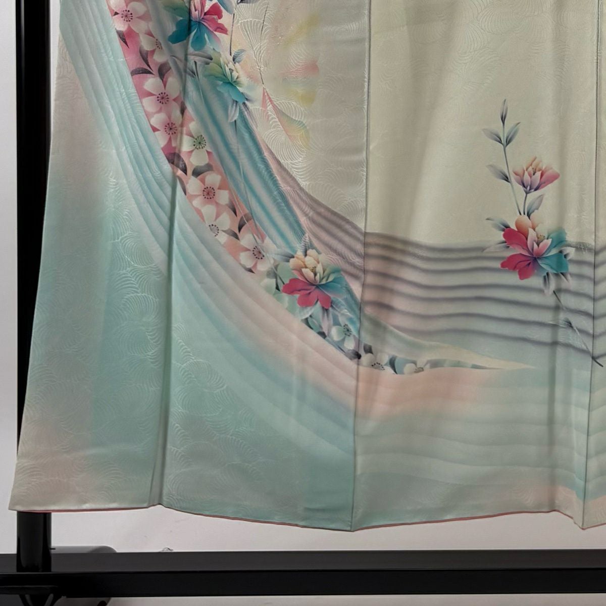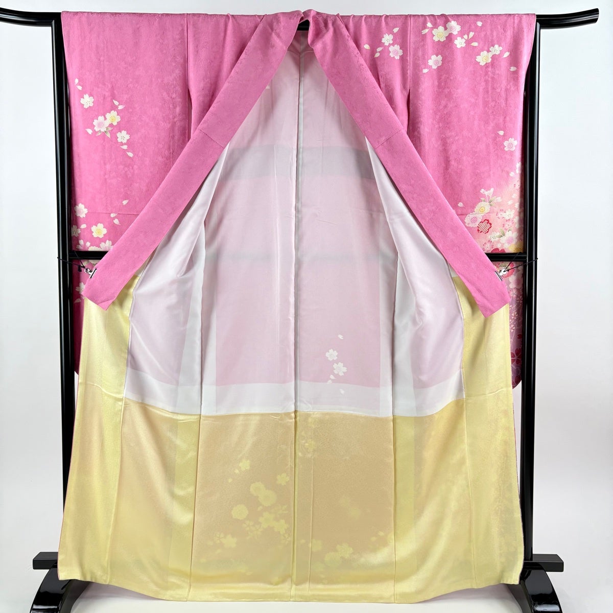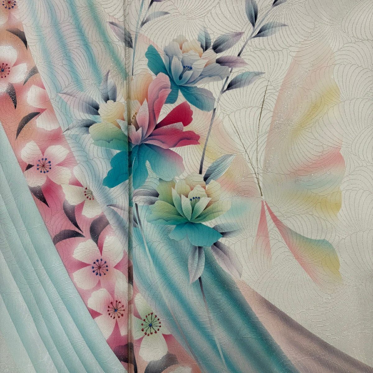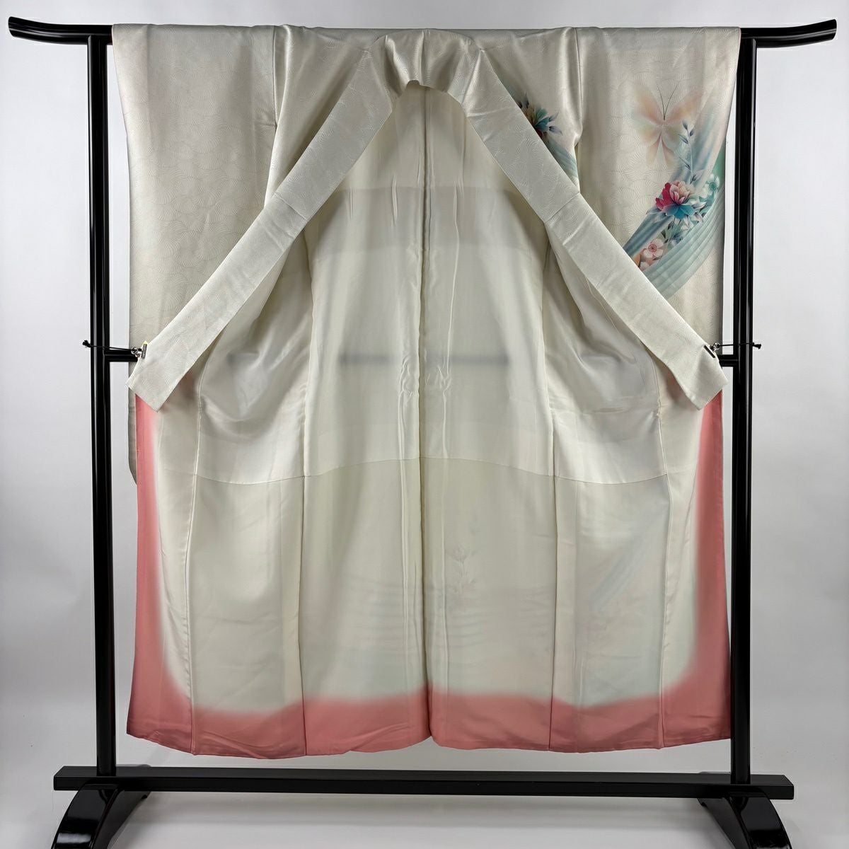 振袖 身丈153cm 裄丈62.5cm S 袷 やまと 草花 蝶 銀通し 染め分け クリーム 正絹 秀品