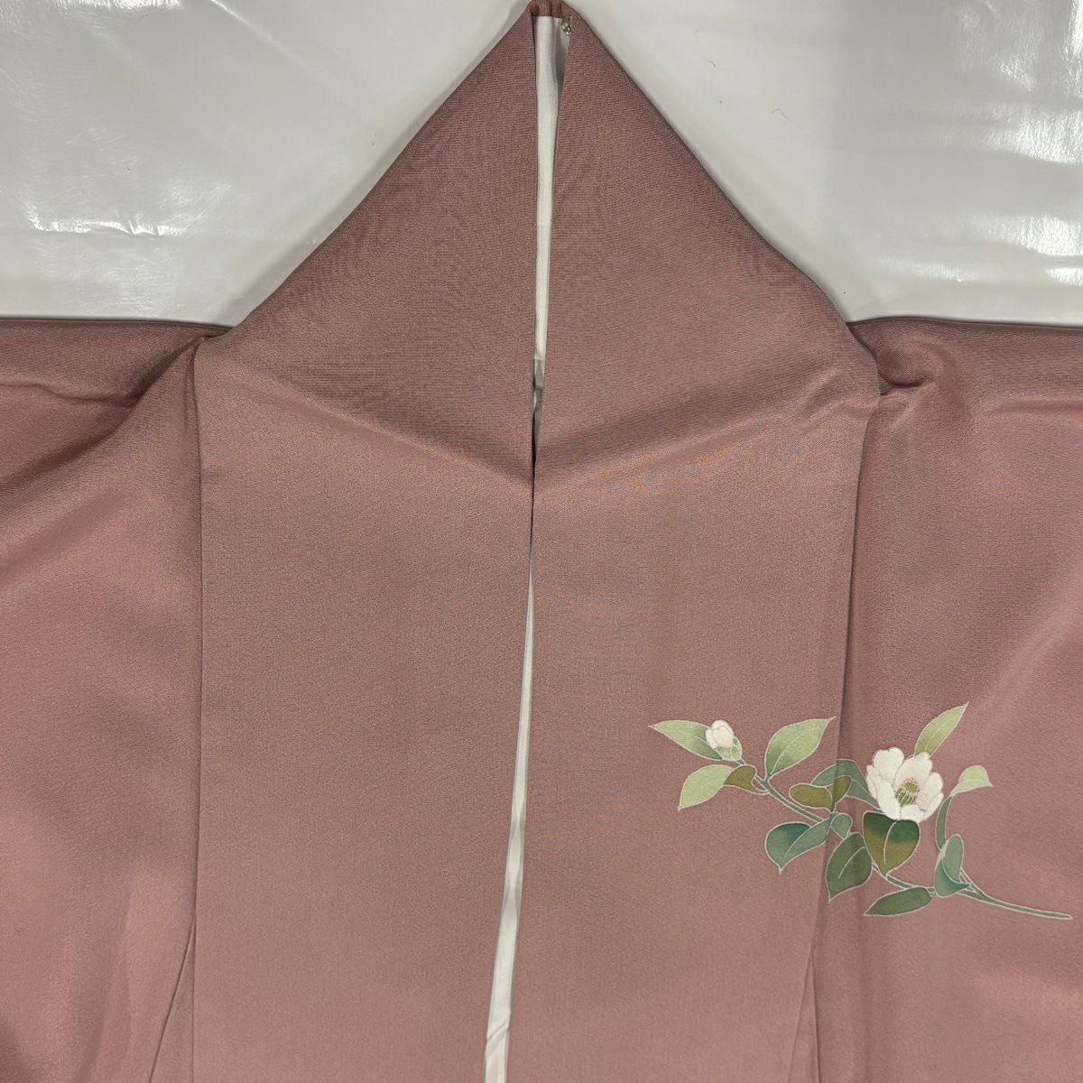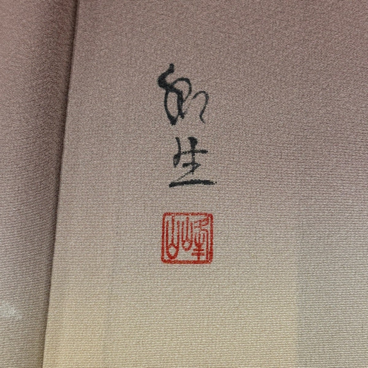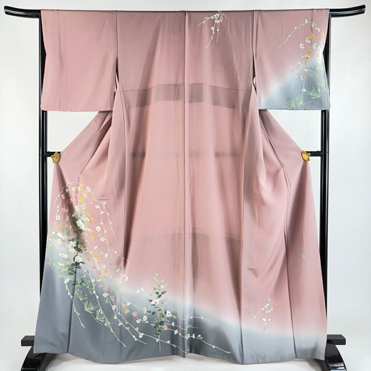 訪問着 身丈165cm 裄丈66cm M 袷 落款あり 椿 若松 染め分け ぼかし ピンク 正絹 秀品