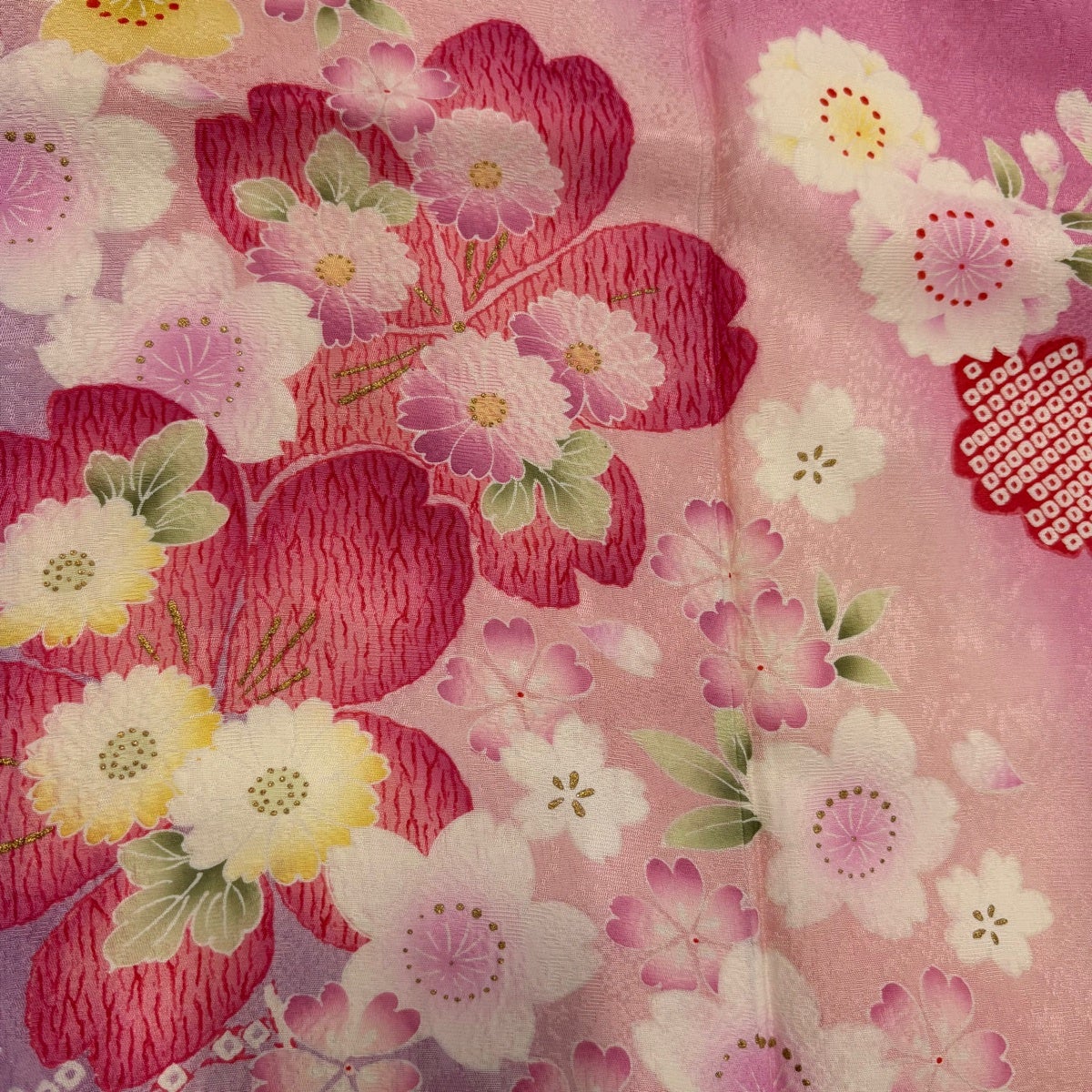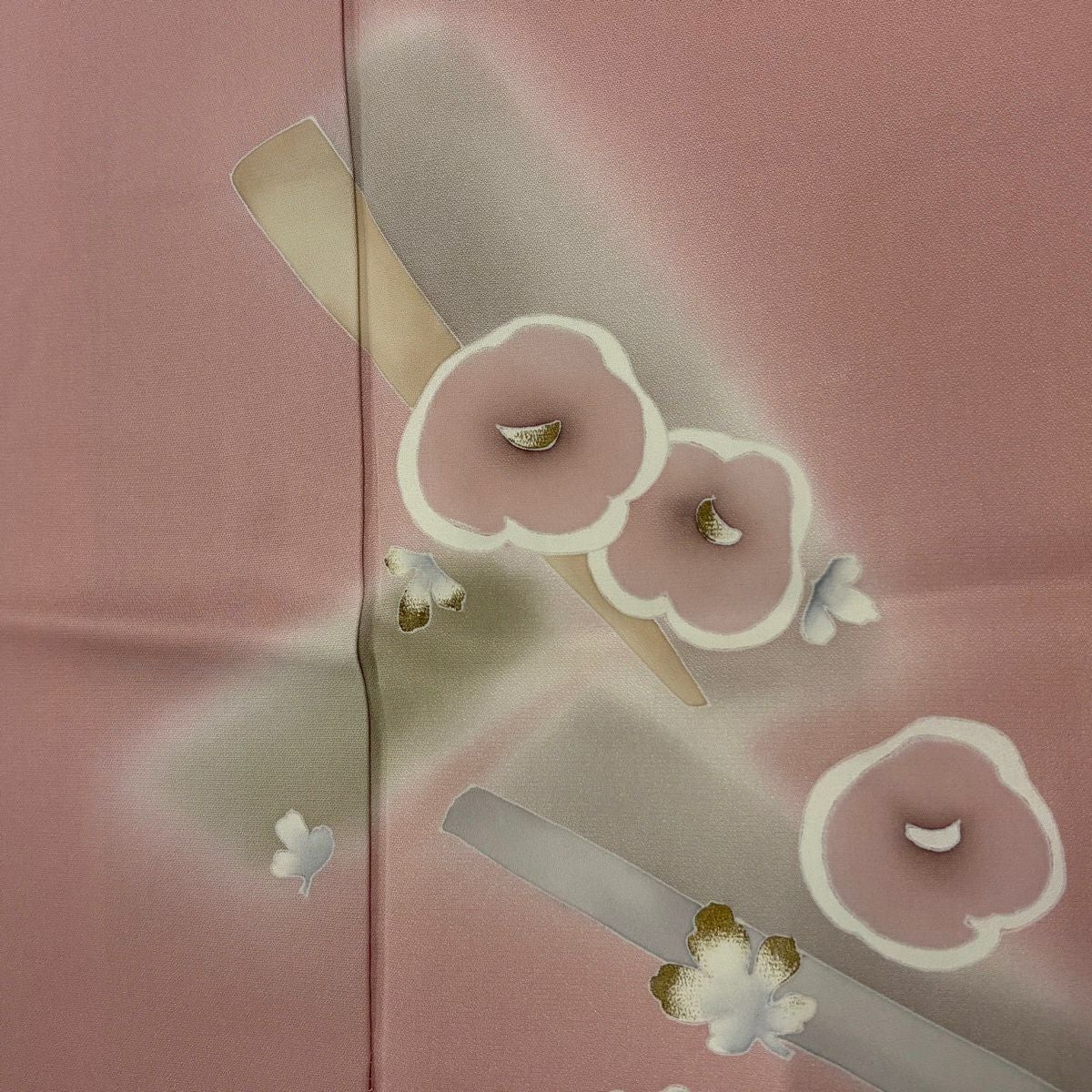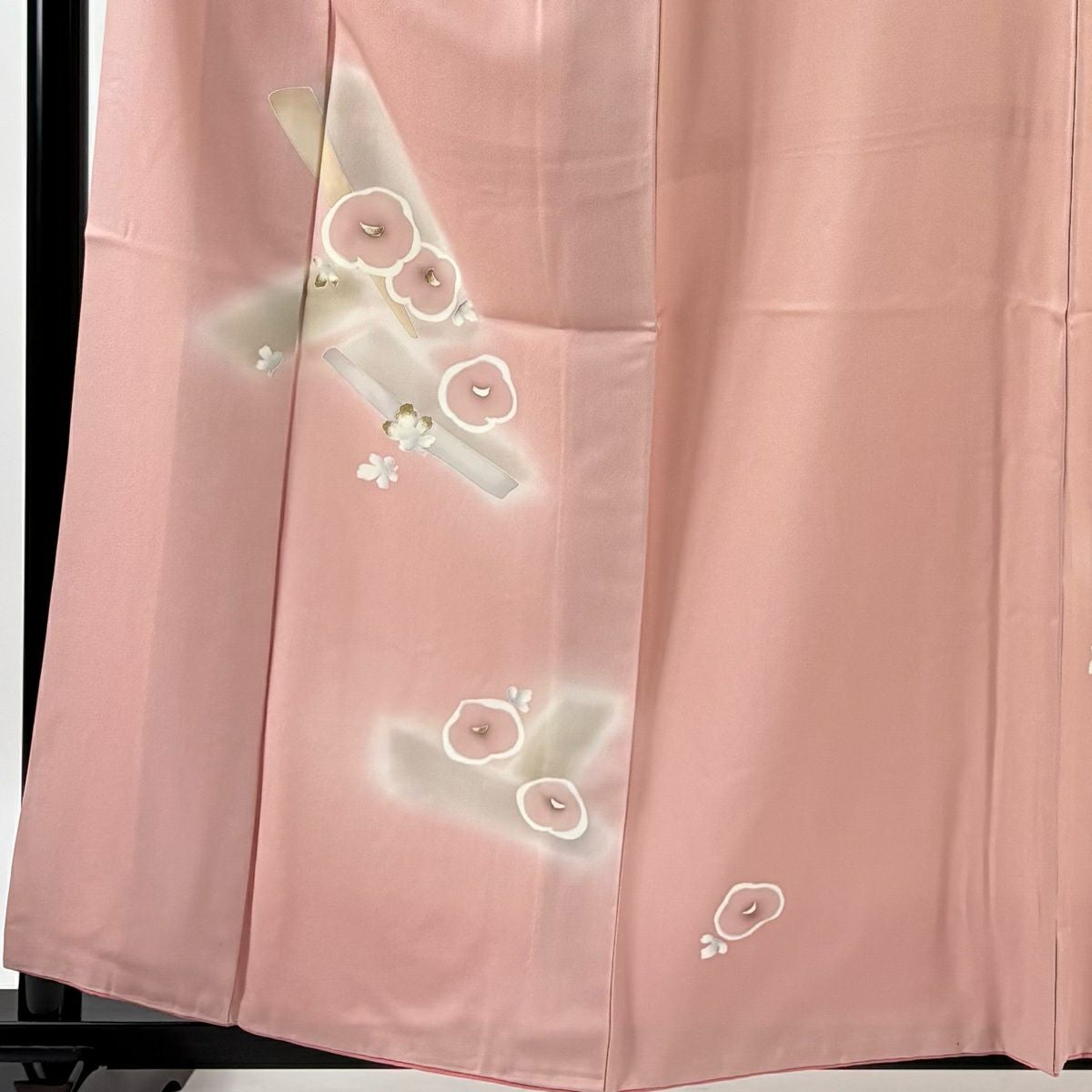 訪問着 身丈165cm 裄丈66cm M 袷 落款あり 椿 若松 染め分け ぼかし ピンク 正絹 秀品